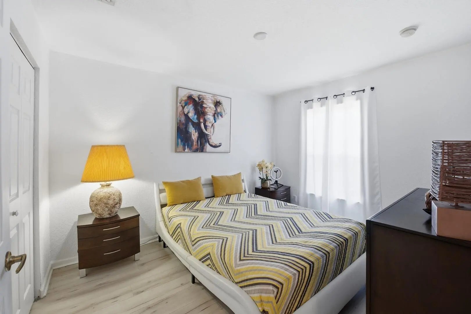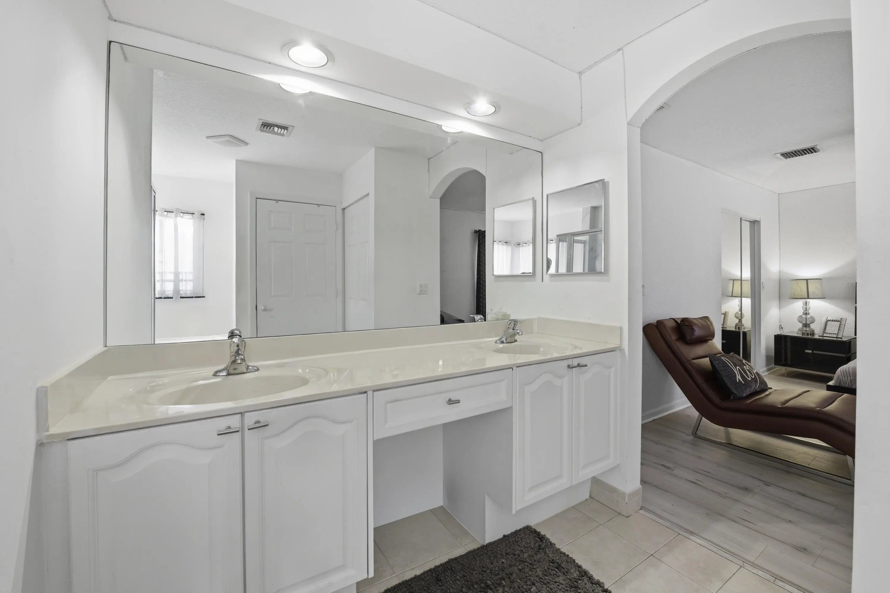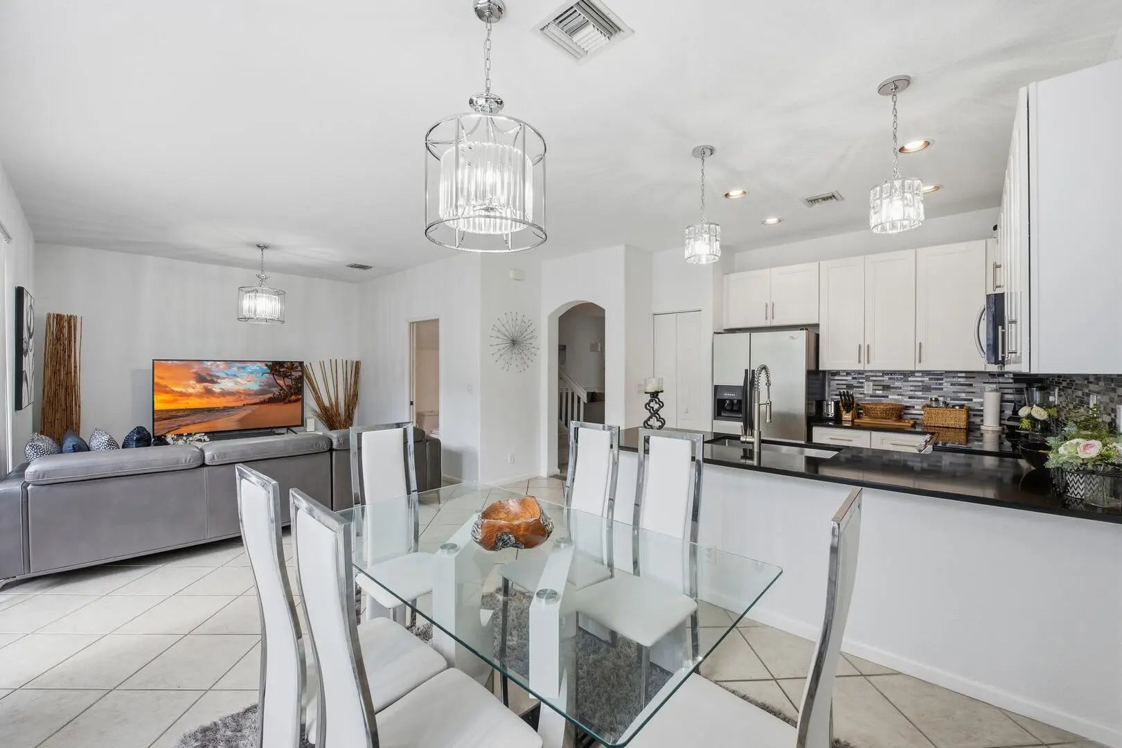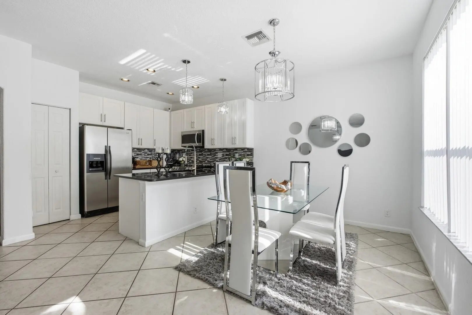 Welcome to this inviting 3-bedroom, 2.5-bath home in the desirable Lakes of Laguna community. A formal living room with a dramatic two-story ceiling creates a grand first impression, while abundant natural light highlights the neutral flooring throughout. The updated kitchen features classic white soft-close cabinetry, quartz countertops, tiled backsplash, stainless steel appliances, and a snack bar, opening to a dining area and family room with sliders to the private fenced yard. The primary suite offers a walk-in closet, dual sinks, soaking tub, and walk-in shower. Enjoy outdoor living in the fenced yard with a mature mango tree--perfect for relaxing or entertaining.