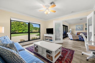 Spacious 3-bedroom, 2-bath condo featuring wood-look tile flooring throughout. Sliders open to a private balcony with beautiful golf course views. French doors lead to a den or third bedroom, offering flexible living space. Open kitchen with white cabinetry and beige granite countertops. Impact glass windows and updated bathrooms enhance comfort and peace of mind. Located in a desirable country club setting.Revel in access to world-class amenities, including two challenging golf courses, a racquet sports center, fitness center & spa, and a clubhouse offering fine dining and beyond. Quail Ridge is a mandatory membership club.
