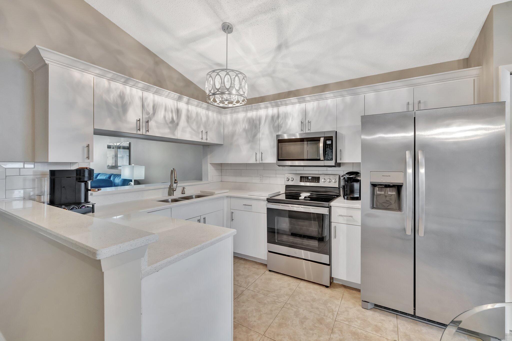 Stunning one of a kind unit in Kings Isles, you won't be disappointed when you see this baby. Beautiful renovated villa. You will enjoy a brand new kitchen, new appliances, custom closets, entire unit has fresh paint so nothing for you to do! Both bathrooms were updated with new vanities, new toilets and all new hardware. Baseboards replaced with custom 5'' moldings. Homeowner even replaced the electrical panel, and installed a whole house surge protector. Roof was replaced in 2022. AC and water heater 2021. Live the Florida dream In Kings Isle. Don't miss this opportunity to own the perfect unit.... and it's sold furnished. It wont last long~~