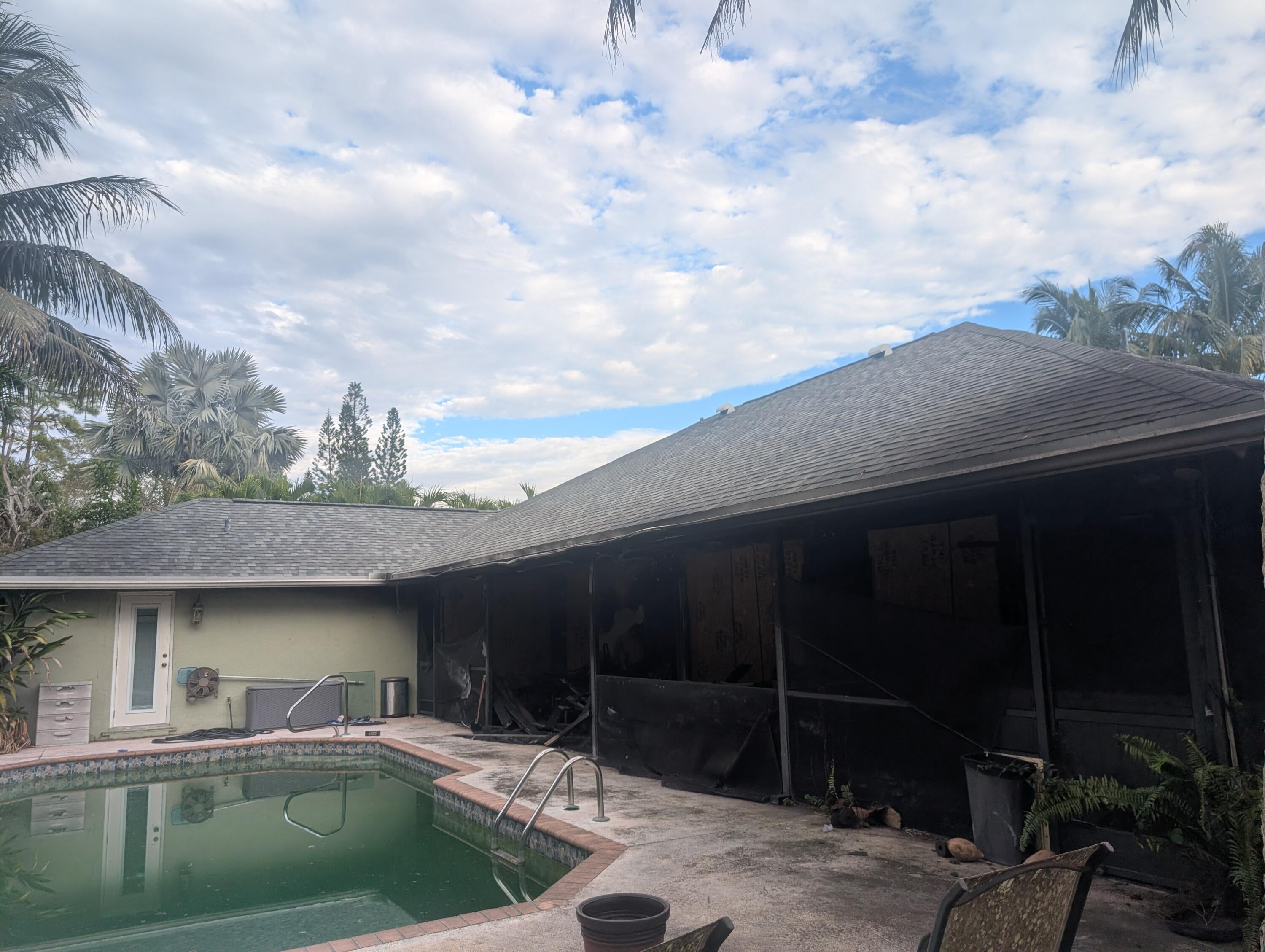 Attention Investors!! House has fire damage. The structural engineer inspection revealed there was NO substantial structural damage. There was a new roof installed 6 mths before the fire.Cannot enter dwelling at this time and there is significant fire damage to the inside (see photos on listing) but welcome to do a drive by. The kitchen living room and patio are toast but the good news is the trusses are in tact and bedrooms have minimal damage just smoke. This is the largest lot in the subdivision on 1.2 acres with a canal on the left and another at the back of the property which makes this a prime piece of property- Also has a inground pool installed. The property, including pool and CBS house structure make this a great opportunity for your Wellington dream home! See survey attach