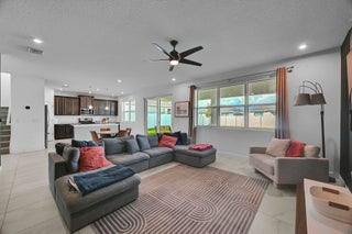 This beautiful two story home offers 4 bedrooms, 2.5 baths, a dedicated home office, and a spacious loft upstairs. The open concept kitchen flows into the great room and dining area perfect for entertaining. A first-floor powder bath adds convenience, while the extended covered lanai invites outdoor relaxation. Upstairs, three bedrooms share a full bath with double sinks. The private primary suite features a walk-in closet and en-suite bath. Enjoy modern living in one of Tradition's most sought-after neighborhoods, with parks, trails, shops, and more just moments away