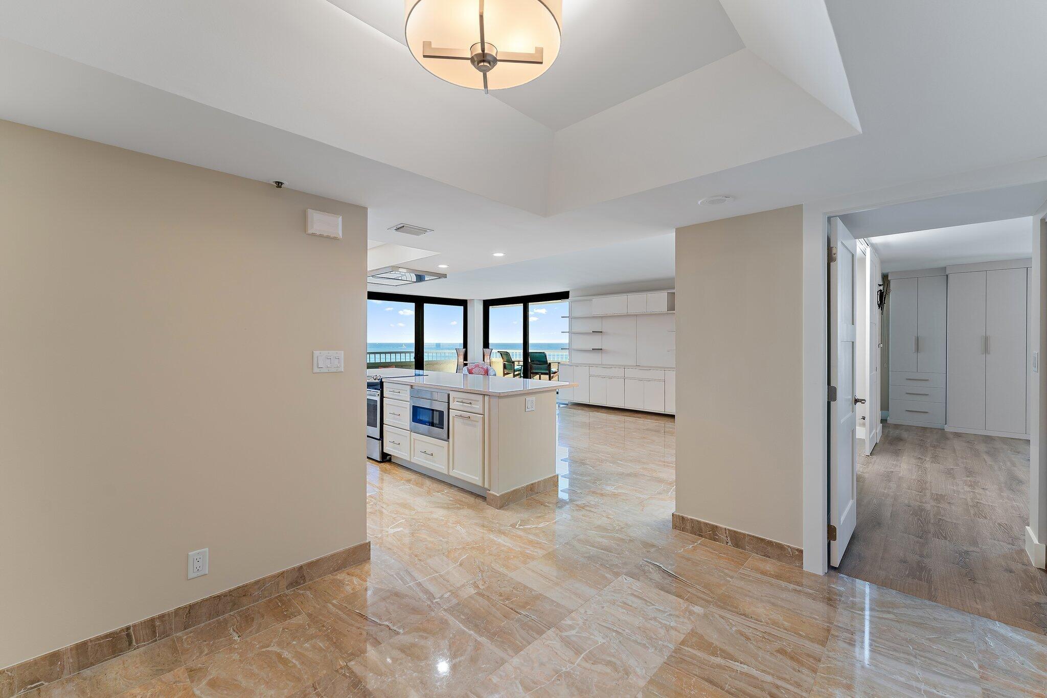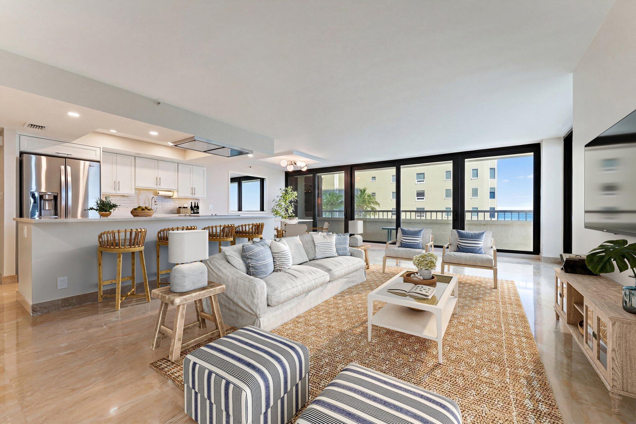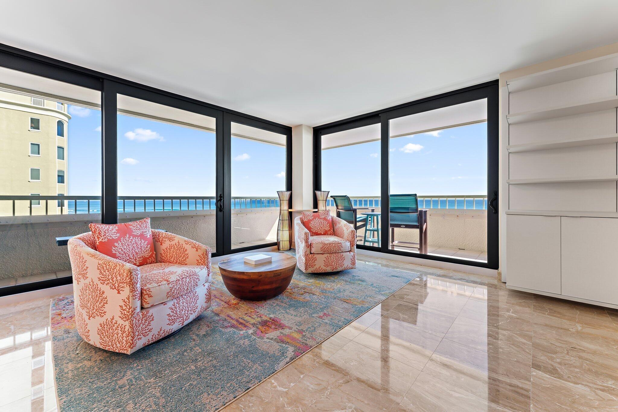 This renovated 2-bedroom, 2-bath ocean-facing corner residence offers unobstructed ocean views and a spacious wraparound balcony, ideal for enjoying sunrise views and ocean breezes. Ocean-facing units in this building are rarely available. The Reaches has been fully renovated inside and out and is fully funded with no active or pending assessments, offering true peace of mind. Amenities include a resort-style oceanfront pool, hot tub, direct beach access, brand-new oceanfront fitness center with panoramic ocean views, renovated social room, and tennis and pickleball courts. The unit includes a private storage unit and a designated garage parking space located literally steps from the entrance. This is a rare chance to secure a move-in-ready oceanfront corner residence in one of SingerIsland's most sought-after buildings. Schedule your private showing today - opportunities like this do not come along often.