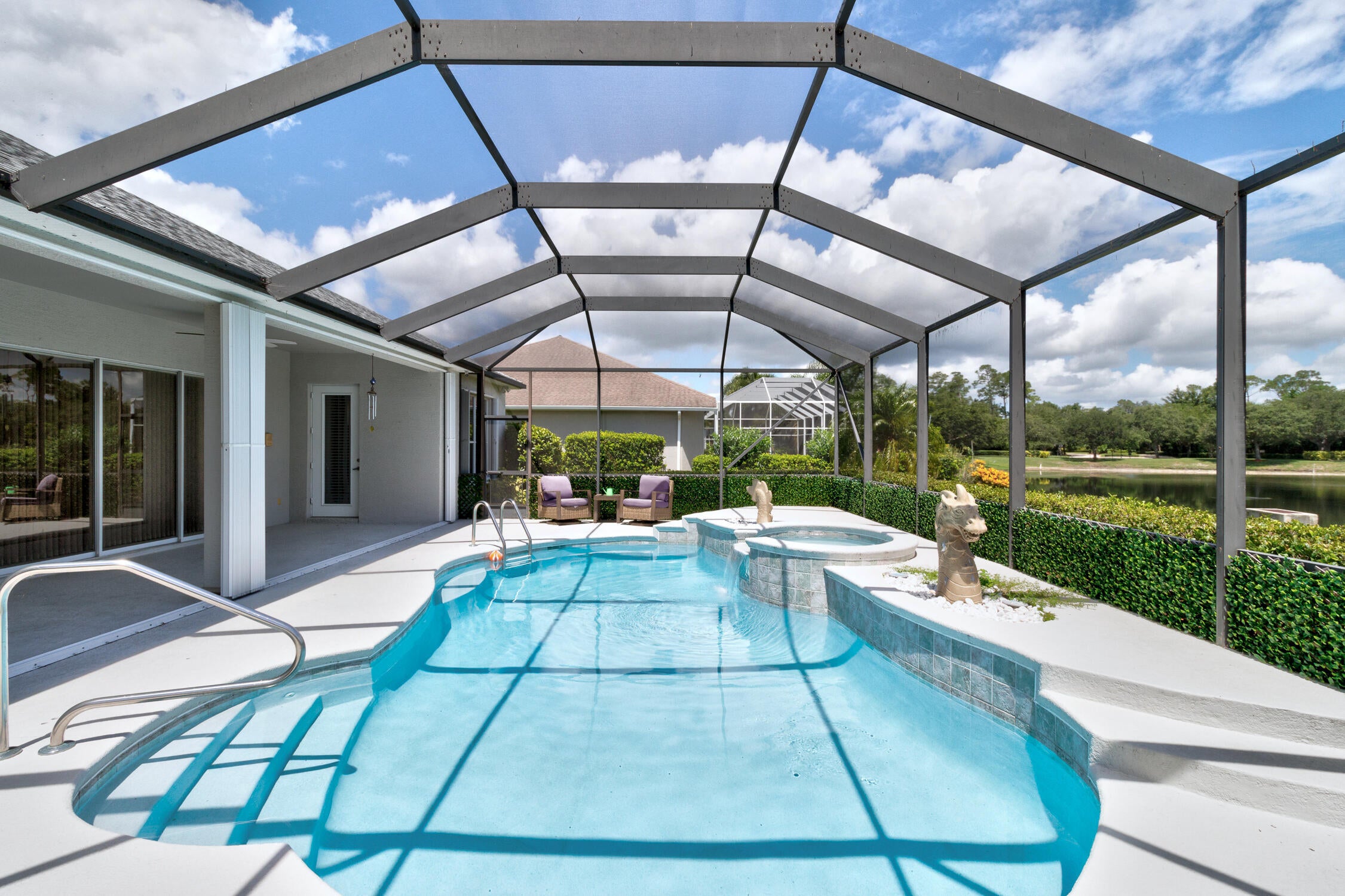 Step into refined Florida living in beautiful Vero Beach. Located in the gated Vineyard community, this exceptional home offers a peaceful retreat where comfort and elegance come together. Start your mornings with breathtaking sunrises, overlooking a tranquil lake and your private swimming pool, all visible from the primary suite. Thoughtfully updated with a new roof, accordion shutters, and a newly resurfaced pool with updated equipment and heater, this home is move-in ready. Schedule your private showing and experience the lifestyle for yourself. Home is for rent as well
