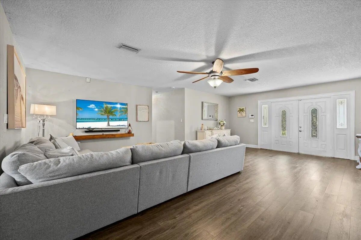 Discover comfort, efficiency, and flexibility in this beautifully updated home that features a split-bedroom floorplan with 4 bedrooms, 3 full baths, and a den. The layout offers privacy and versatility for today's lifestyle. A modern kitchen opens seamlessly to inviting living spaces and outdoor enjoyment where you'll appreciate the artificial turf yard, travertine tile pool deck & saltwater pool. It's ideal for entertaining. Major upgrades include a new 2025 roof and paid-off solar panels for long-term savings. Additional highlights include a huge storage room, detached shed, and an over-sized driveway large enough for a boat. Even better, this home qualifies for a $15,000 lender credit--ask how. This is Florida living at its best with no HOA!!!