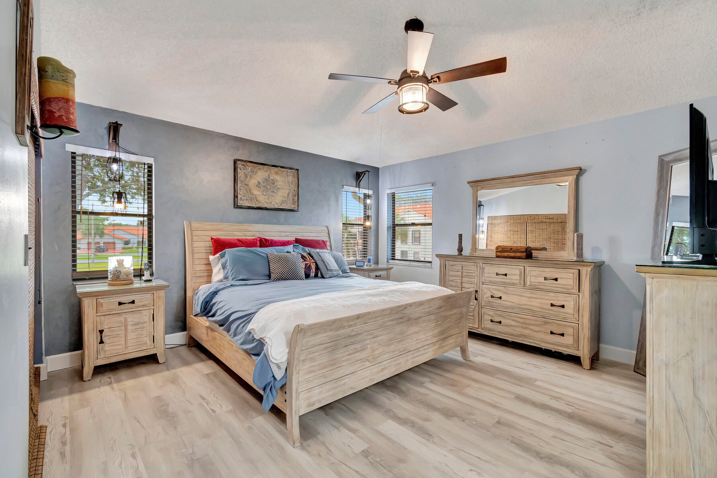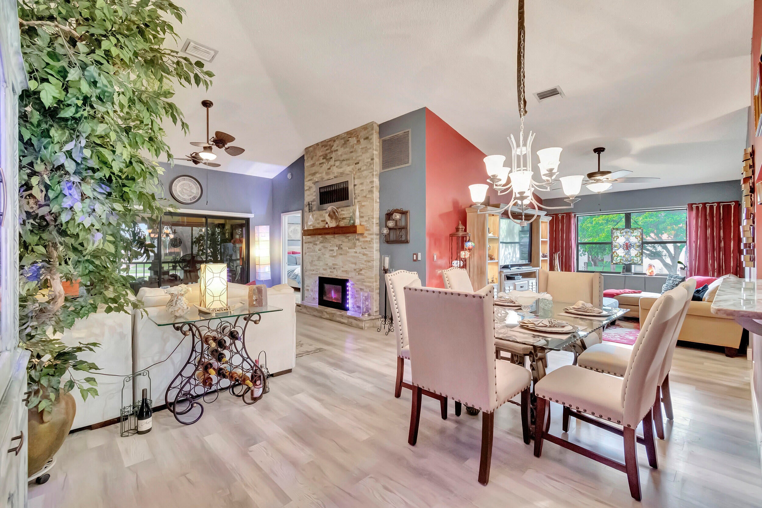 Sun Valley East, 55+ condo community, this 2-bedroom 2-bath, upper-level corner unit was. This unit is one of a kind. Walk into this home, and you will see why. The kitchen has been updated with newer appliances & granite chiseled countertops, all new wood floors throughout only completed not even a year ago, and includes high-end washer/dryer both with steam options.The living room has a 15-foot stone fireplace with a mantle and is wired for TV. AC has been redone with blue light. The house features a stair chair lift. The HOA covers all maintenance, pool, clubhouse, roadways, and buildings, also includes cable and water, but internet is not included. Hurry, kind unit won't last! FANNIE MAE APPROVED buy it w 5% down