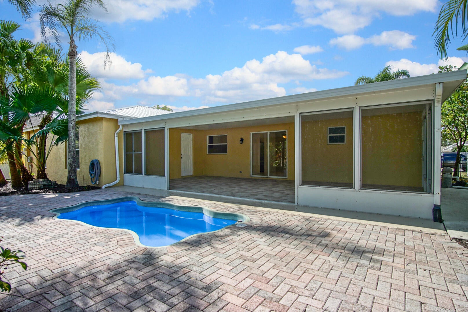 GORGEOUS 3/2/2 CBS HOME ON OVERSIZED, FULLY FENCED LOT FEATURING MATURE LANDSCAPE. LANDSCAPING PROFFESSIONALLY FINSIEHD IN JANUARY 2026. COMPLETELY TILED THRU OUT WITH A SPLIT FLOOR PLAN, CATHEDRAL CEILINGS, AND SO MUCH MORE. INTERIOR PROFFESIONALLY CLEANED AND PAINTED. PRIMARY BEDROOM FEATURES LARGE WALK IN CLOSET AND SPACIOUS BATHROOM. WALK OUT BACK TO THE POOL SURROUNDED BY NEWER COVERED PATIO AND PAVER DECK. SHED IN THE BACK YARD FOR EXTRA STORGAE. METAL ROOF 2020. AC 2020. THIS HOME IS A MUST SEE. MOVE IN READY!