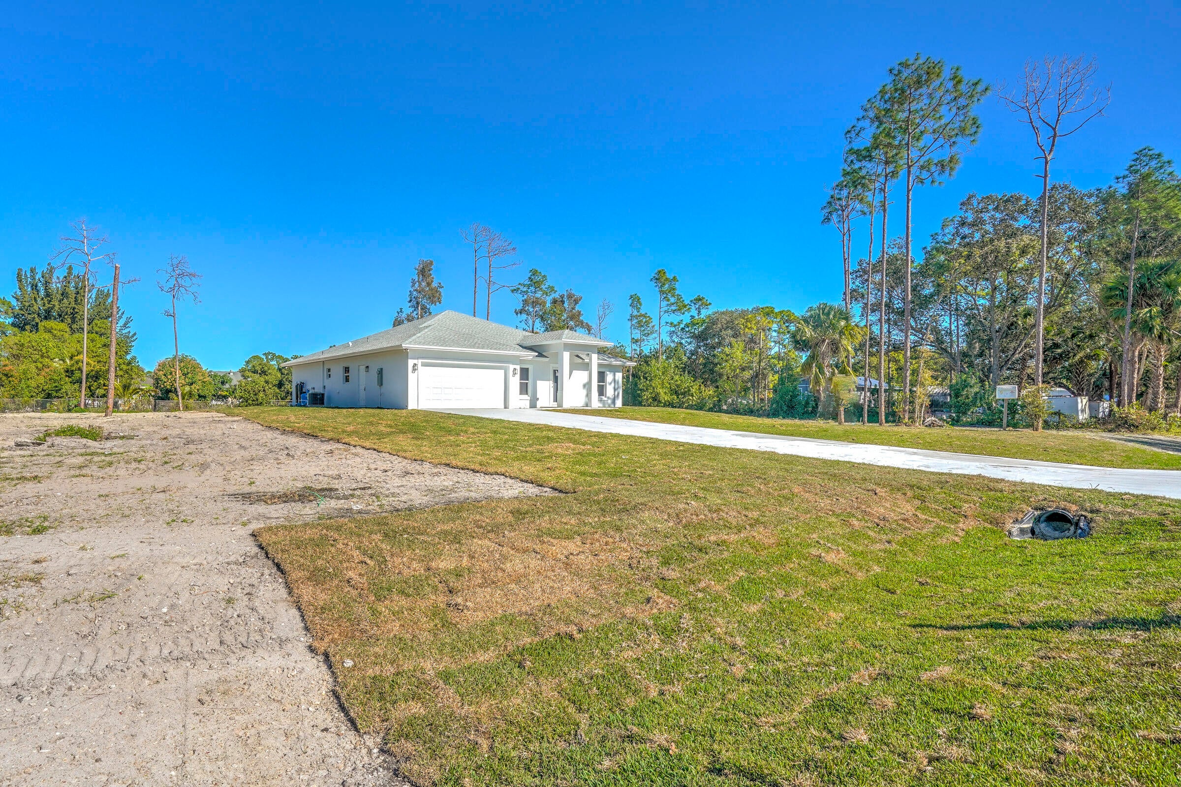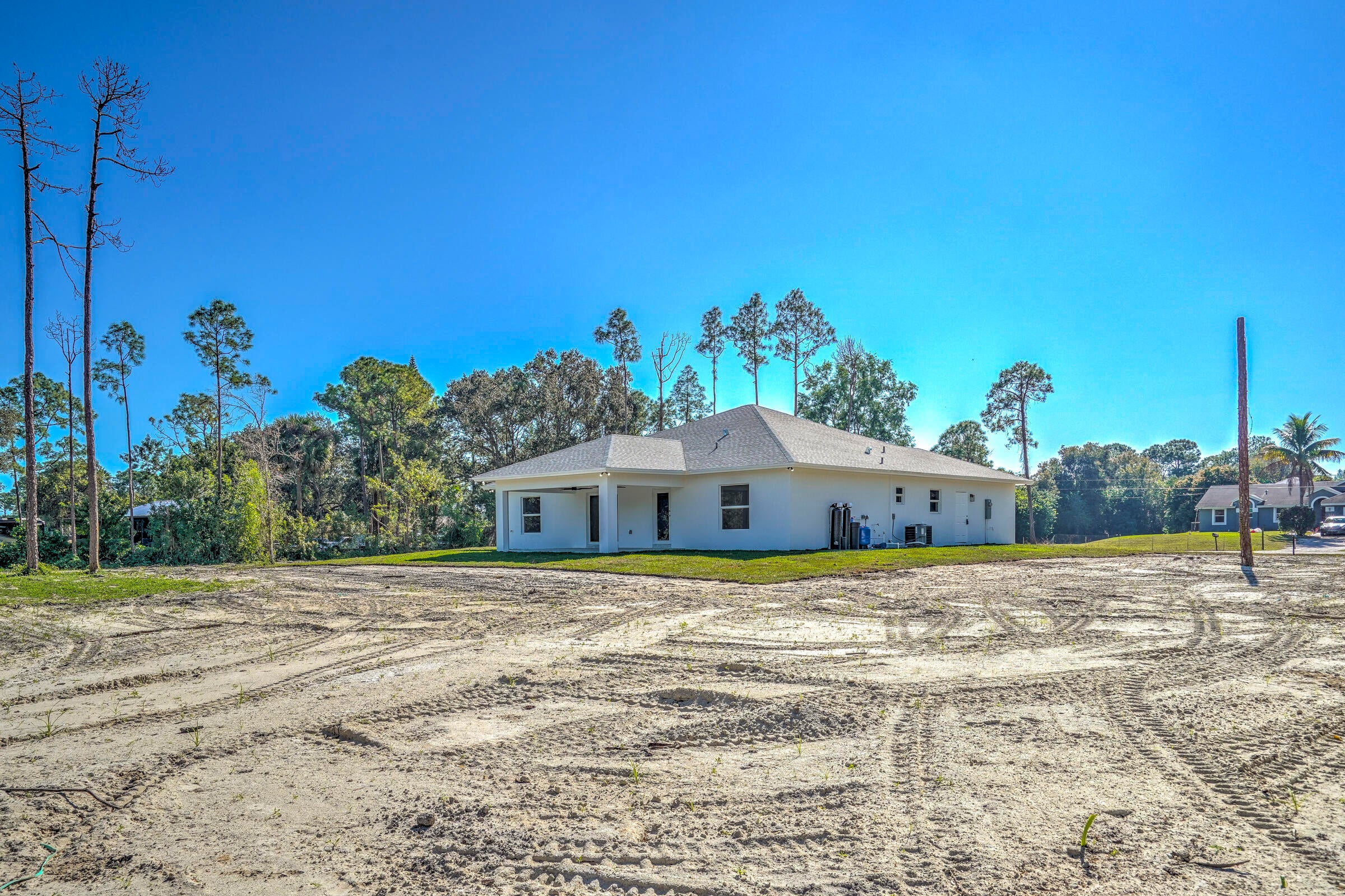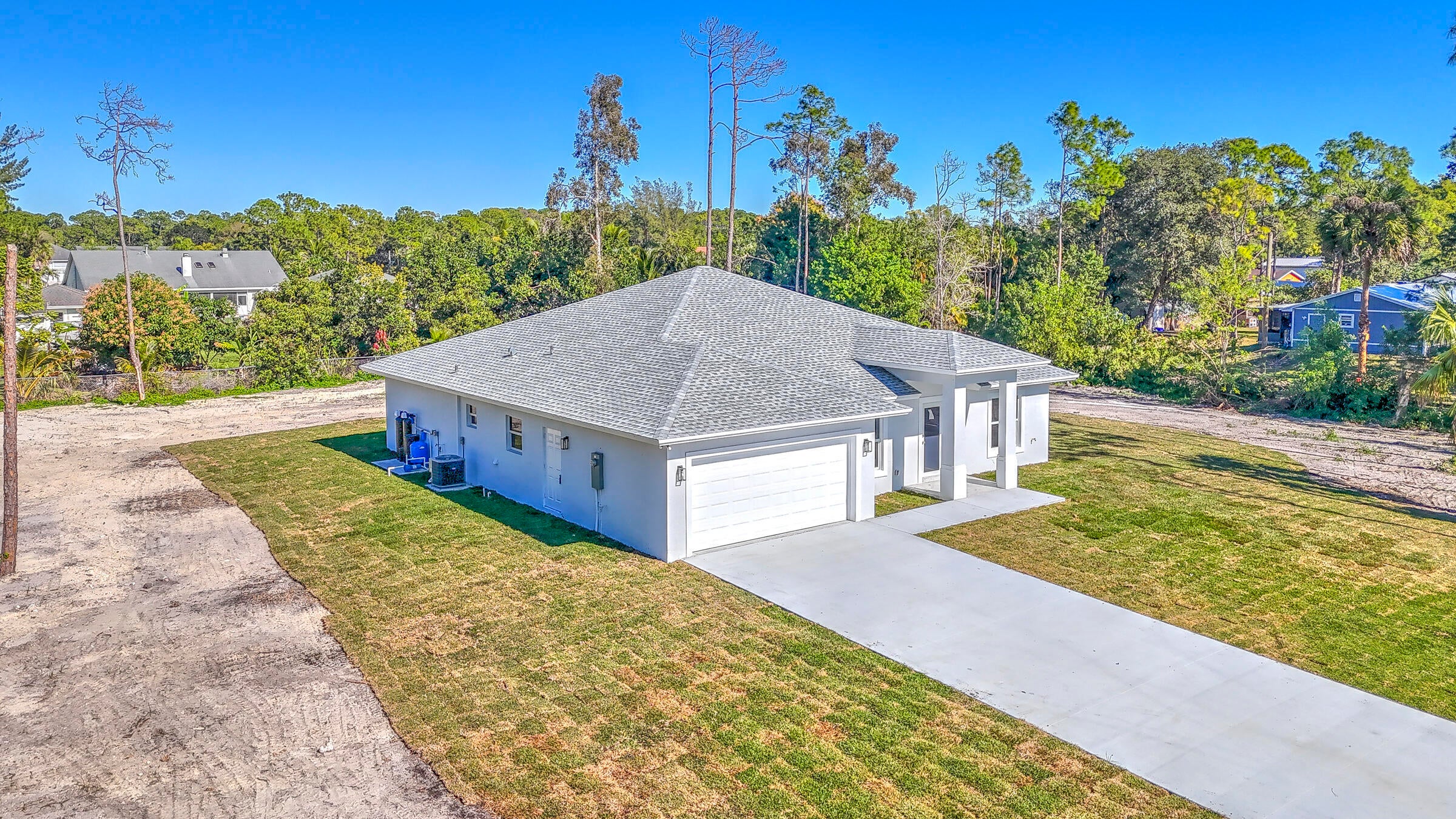Stunning new construction in Loxahatchee offering 3,136 total square feet with 4 spacious bedrooms, 3 full bathrooms, and a two-car garage. Built with durable CBS concrete block construction, this modern home provides peace of mind with impact windows and doors throughout. A complete water filtration system is already installed for added convenience. Situated on a paved road, the property also features a paved driveway and a covered patio, perfect for outdoor relaxation and entertaining. Enjoy ample green space while being surrounded by the natural beauty and charm of Loxahatchee.