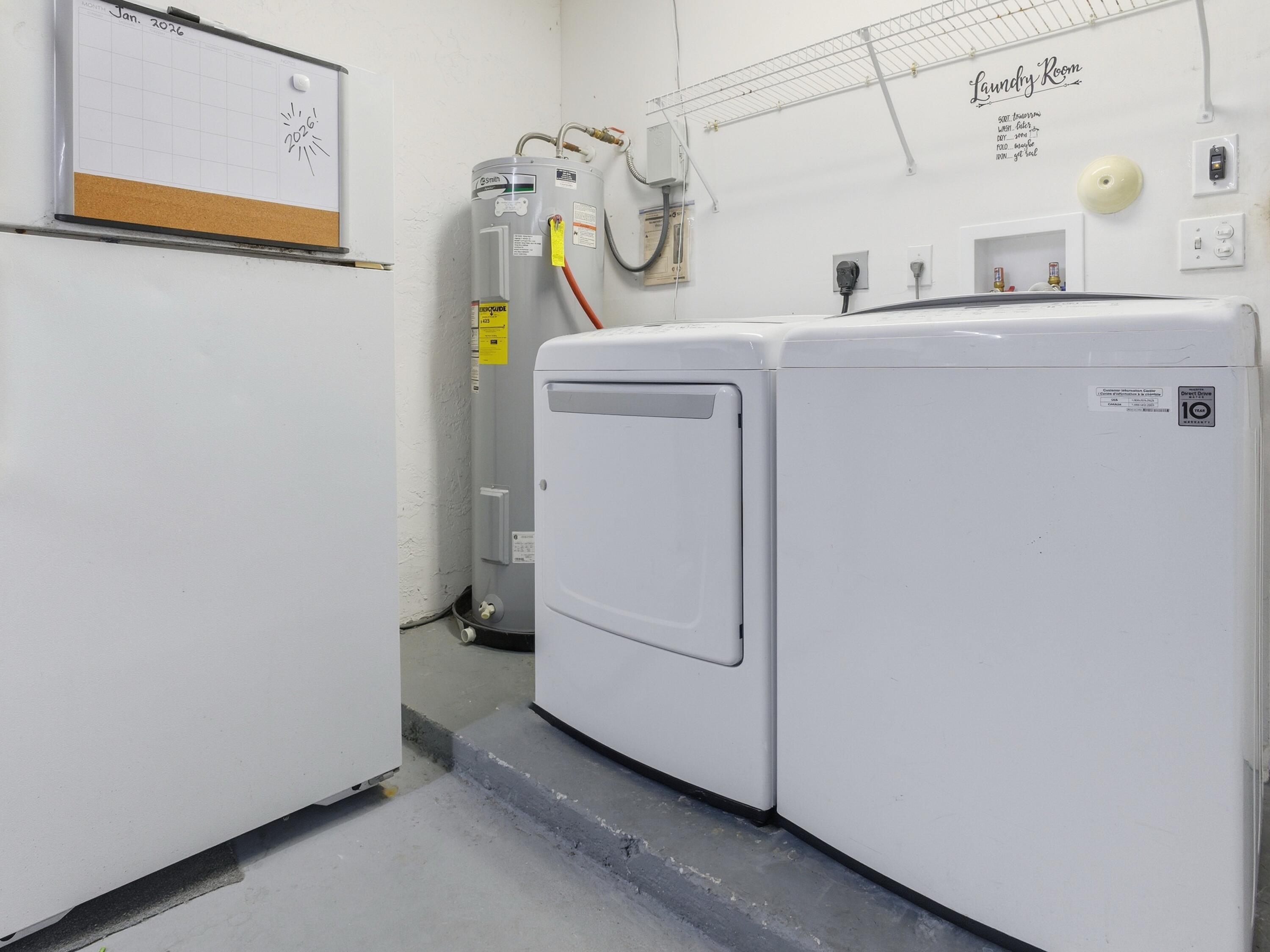 Dishwasher, Disposal, Dryer, Fire Alarm, Ice Maker, Microwave, Range - Electric, Refrigerator, Smoke Detector, Washer, Washer/Dryer Hookup, Water Softener-Owned