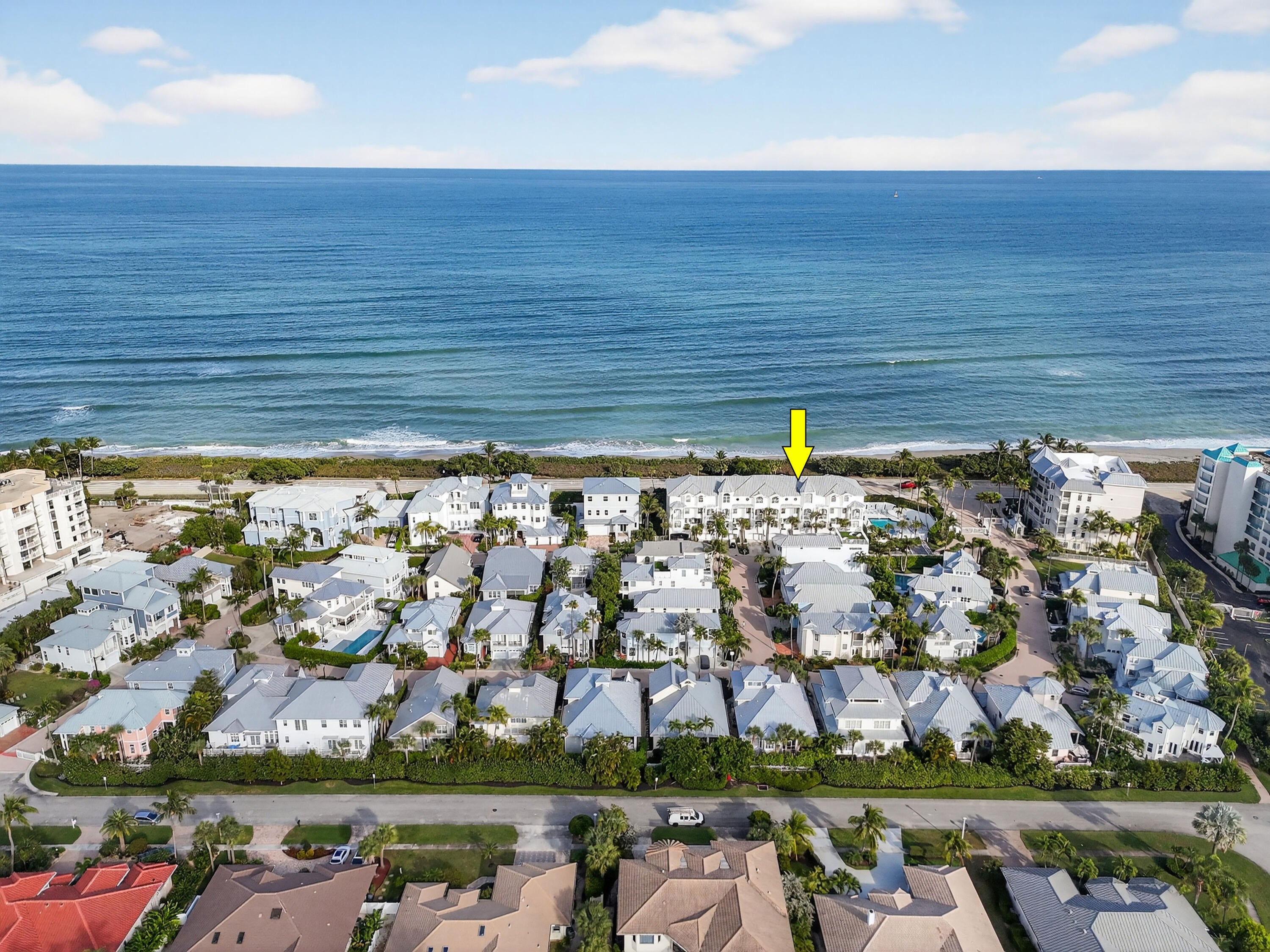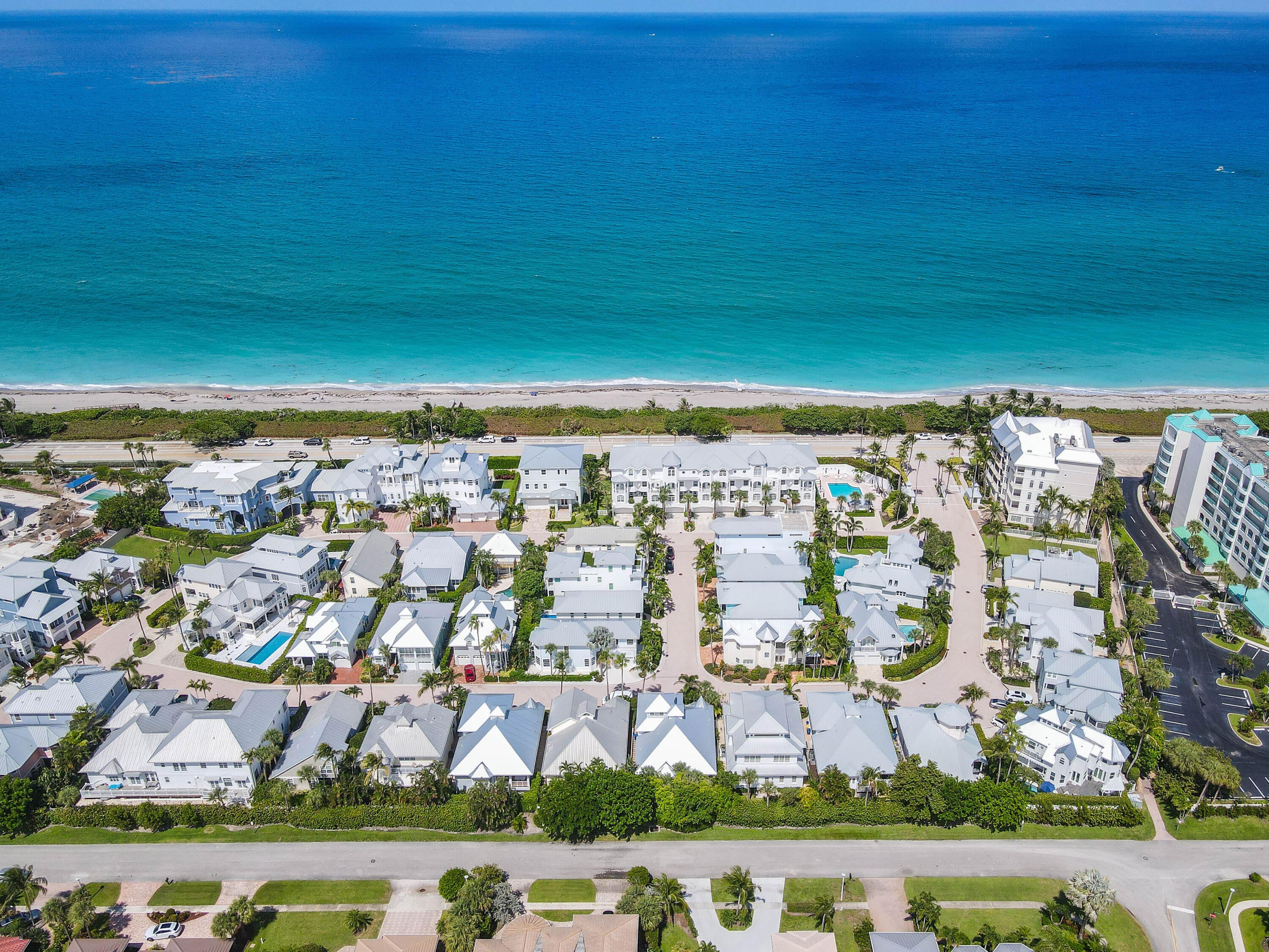 Set within the coveted, gated enclave of Jupiter Key, this rare four-story coastal townhouse offers an extraordinary opportunity to own a grand-scale residence in one of Jupiter's most desirable oceanfront settings. With ocean views from the second, third, and fourth levels, generous proportions, and timeless architecture, this home presents a refined canvas for creating a truly bespoke seaside retreat.Offering over 3,200 square feet of living space, the residence features 4 bedrooms and 4 full bathrooms, thoughtfully arranged across multiple levels to provide privacy, flexibility, and an elevated sense of arrival. The upper levels enjoy beautiful ocean views, while private balconies on the third and fourth floors create a seamless connection to the outdoors, allowing natural light and coastal breezes to flow throughout the home. The main living level showcases expansive living and dining areas with high ceilings, oversized windows, and effortless flow designed for both everyday living and entertaining. The kitchen offers substantial cabinetry, ample counter space, and an ideal layout for reimagining into a chef-caliber space, highlighting the home's strong architectural bones and scale. The primary suite is a true sanctuary, offering generous dimensions, a spa-style bath with soaking tub and separate shower, dual vanities, and ample closet spacean ideal foundation for a resort-caliber retreat. Additional bedrooms are well-proportioned and versatile, providing flexibility for guest suites, office space, or multi-generational living. Designed with durability and peace of mind, the home is constructed of CBS with full storm protection and features an attached two-car garage, a dedicated laundry room, and abundant storage throughout. All building work has been completed, and any special assessments have been paid. The residence is maintained by an association that covers exterior maintenance, roof, insurance, security, and common areas, allowing for a true lock-and-leave coastal lifestyle. A ground-level patio framed by lush landscaping provides an additional outdoor living space for entertaining or quiet relaxation. Residents enjoy a private coastal setting just steps from the beach, with convenient access to boating, dining, shopping, and all that Jupiter has to offer. A rare opportunity to personalize a substantial ocean-close residence with enduring presence, scale, and exceptional livability.