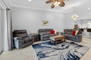 Welcome to villa living in Tuscany Bay! Only 80% of residents must be 55+, allowing buyers under 55 to move into Tuscany Bay. This residence features 2 bedrooms plus a den with vaulted ceilings, a 2023 A/C. The beautifully upgraded kitchen boasts 42'' cabinets with pull-out shelves, Corian counters, a two-tiered breakfast bar, triple-filter water system, and brand-new stainless steel appliances (2025). Enjoy custom bedroom closets, a built-in speaker system, upgraded ceiling fans, and stylish new window treatments. Additional highlights include a 2020 washer, a newer garage door, and crown molding throughout. Move-in ready