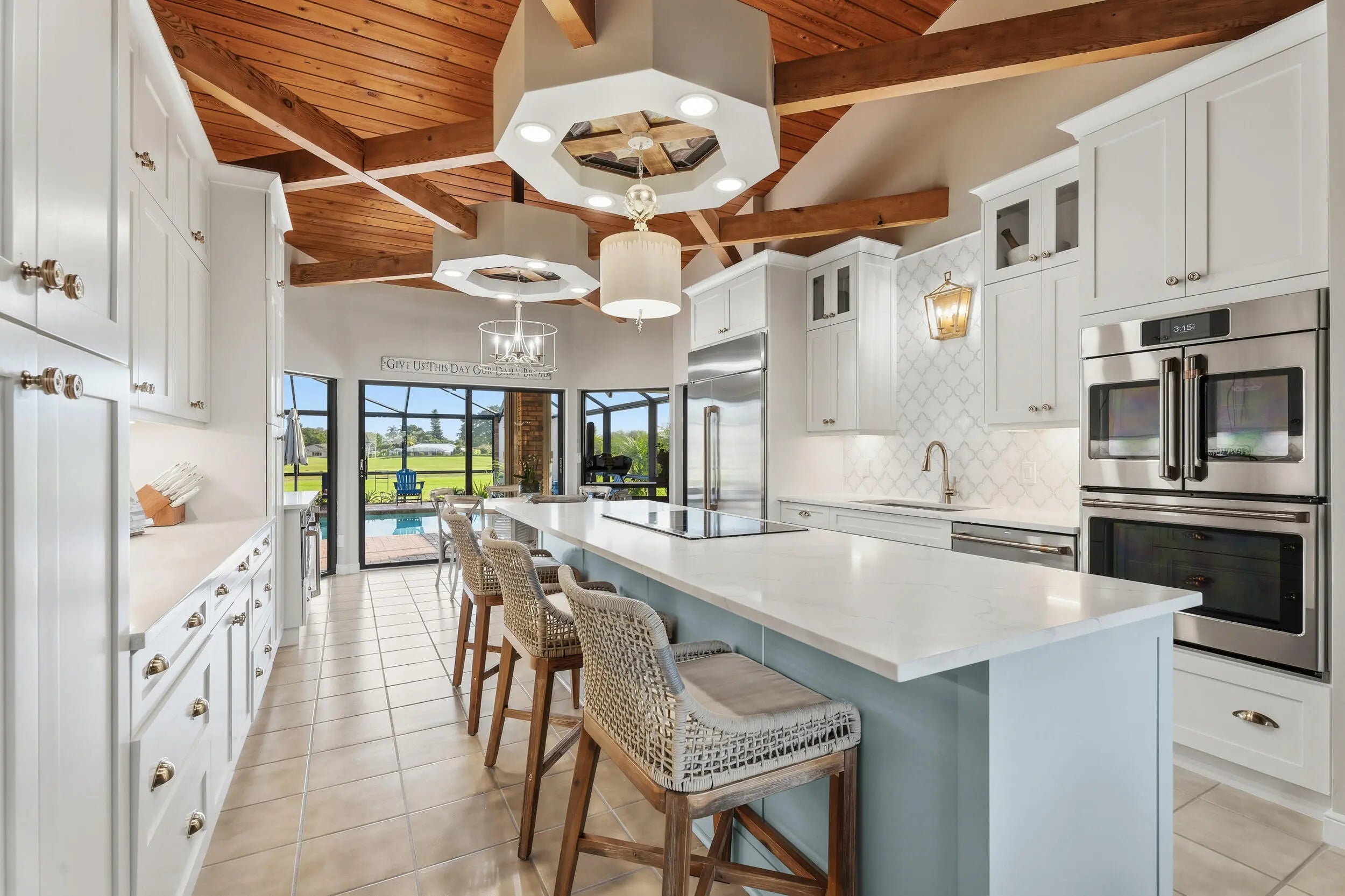 Built-in Grill, Custom Lighting, Outdoor Shower, Screen Porch, Shutters, Summer Kitchen, Zoned Sprinkler