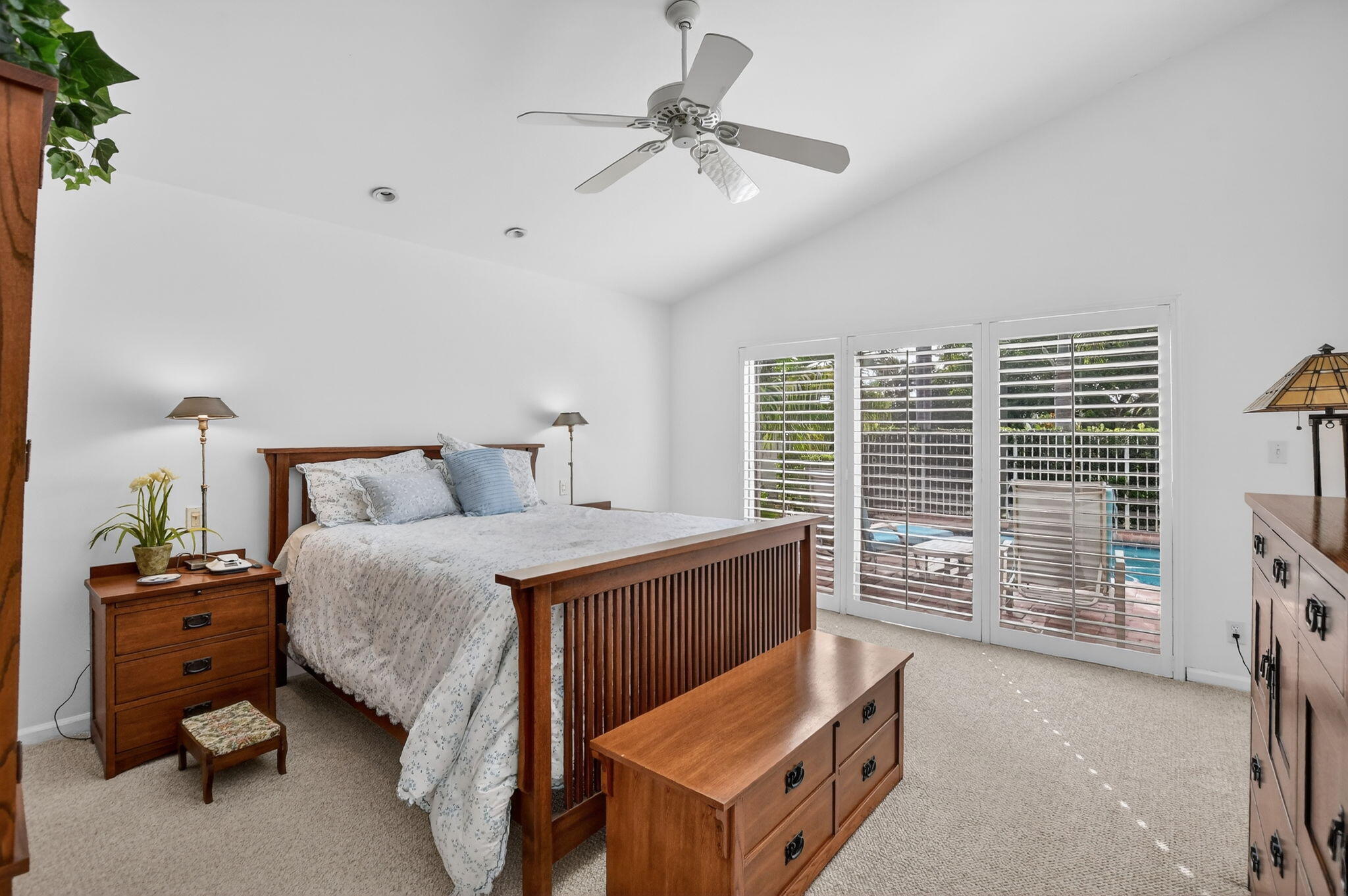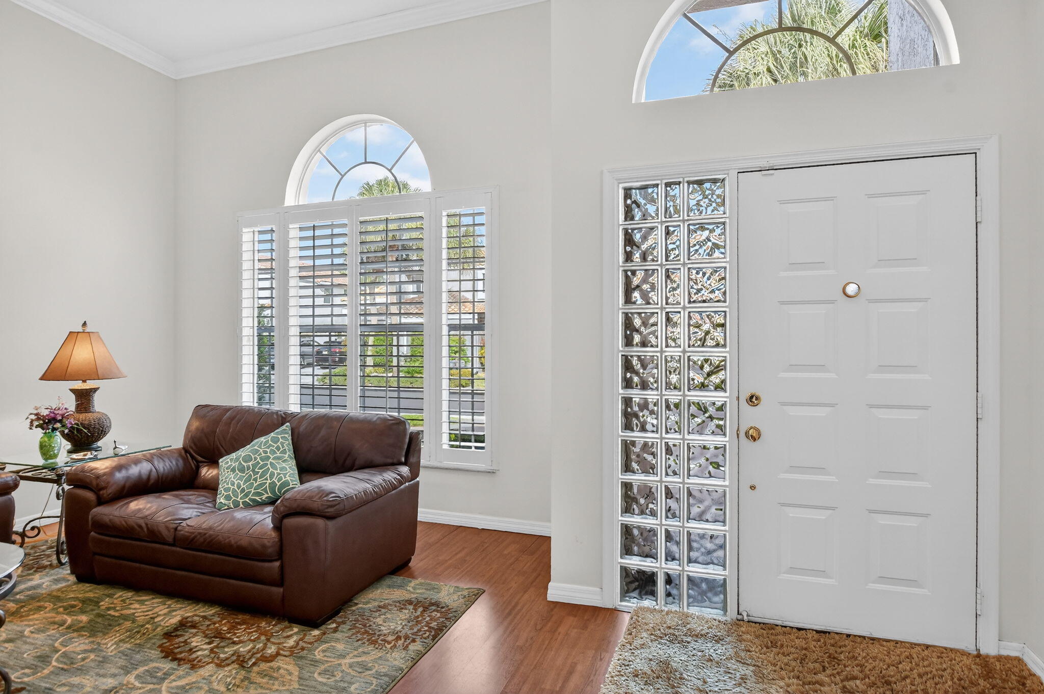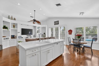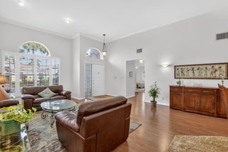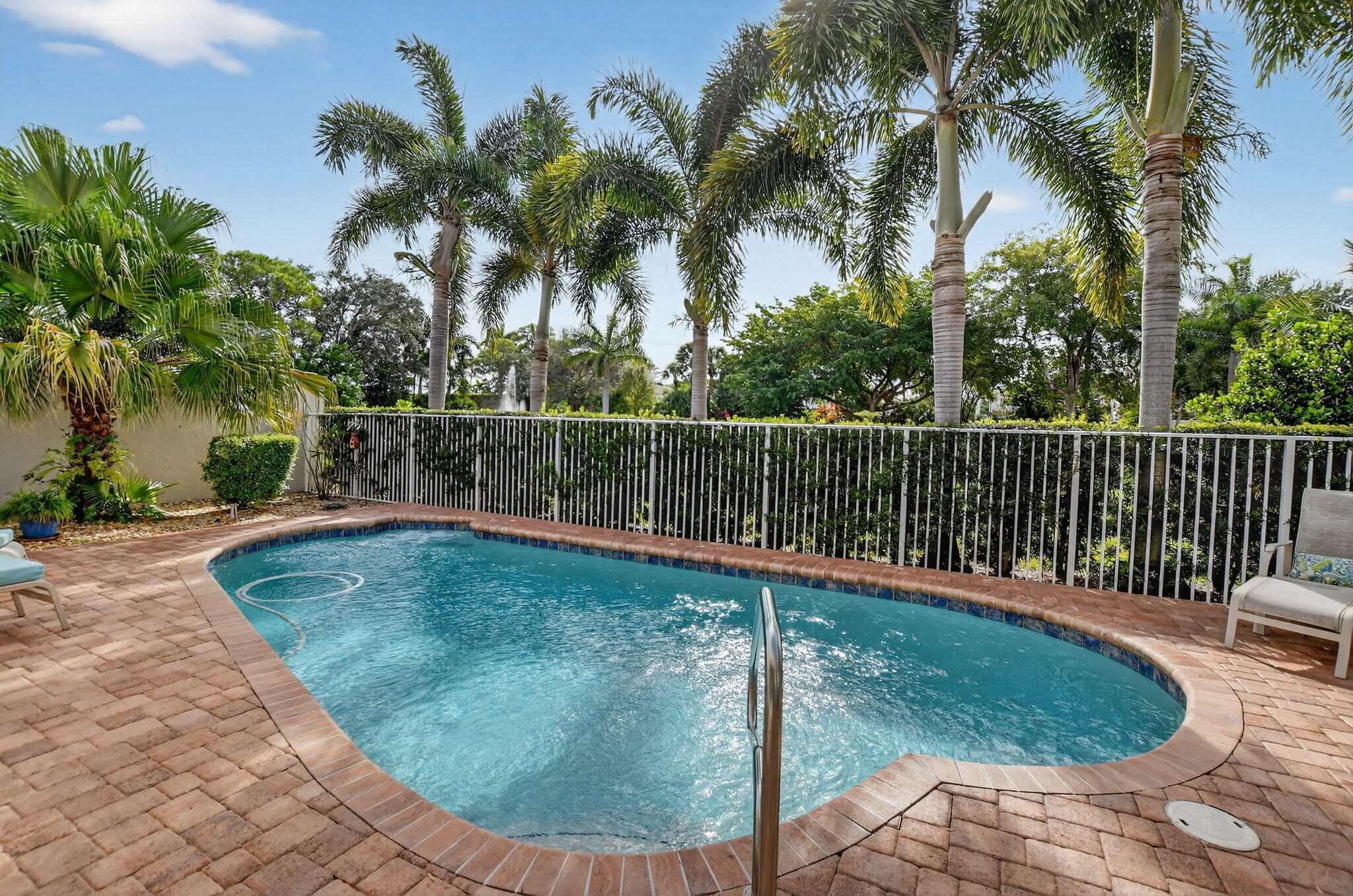 Enjoy amazing sunrise views over the lake from your own tropical oasis. The patio has two electric awnings with lights making it easy to relax outside even on those super-sunny days and at dusk. Light-filled one-story home with 3 bedrooms 2 baths and a 2-car garage. Plantation Shutters throughout. Quartz counters in kitchen. Beautiful remodeled baths. Hurricane resistant garage door and Accordion Shutters throughout. Roof 2009. Solar hot water heater and solar panels 2009. Brick paver driveway 2009. Situated in the only non-gated community in Boca Pointe, Palladium has just 35 homes. Residents enjoy a low-maintenance lifestyle. Included in the low monthly HOA is lawn care and roving security.Optional membership at the Club at Boca Pointe offers access to 18-hole championship golf course designed by Jack Nicklaus, world-class tennis facility, state-of-the-art fitness center, resort-style pool, fine dining and a calendar of social events that will keep you as busy you want. Perfectly situated in central Boca Raton just minutes from Town Center Mall, Mizner Park, downtown Boca Raton, beautiful beaches and top-rated Palm Beach County Schools. With it's fabulous location, this immaculate home is an incredible opportunity to experience luxury, comfort and convenience of Boca Raton and Boca Pointe living. Sellers preferred privacy and planted bushes, but they can be removed if you want a lake view. All measurements and information deemed accurate but not guaranteed or warranted.