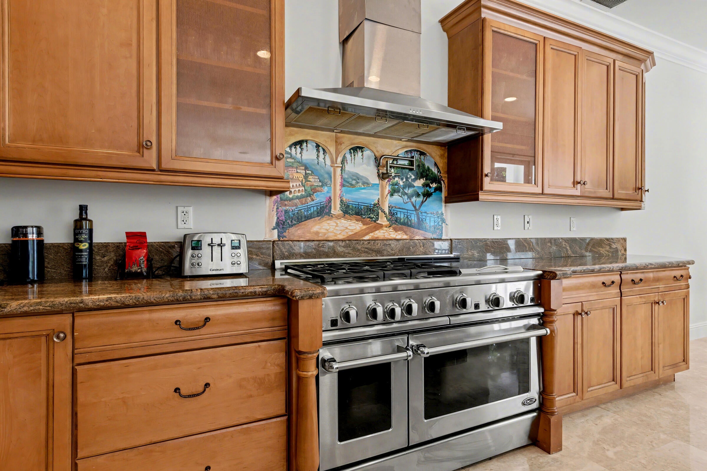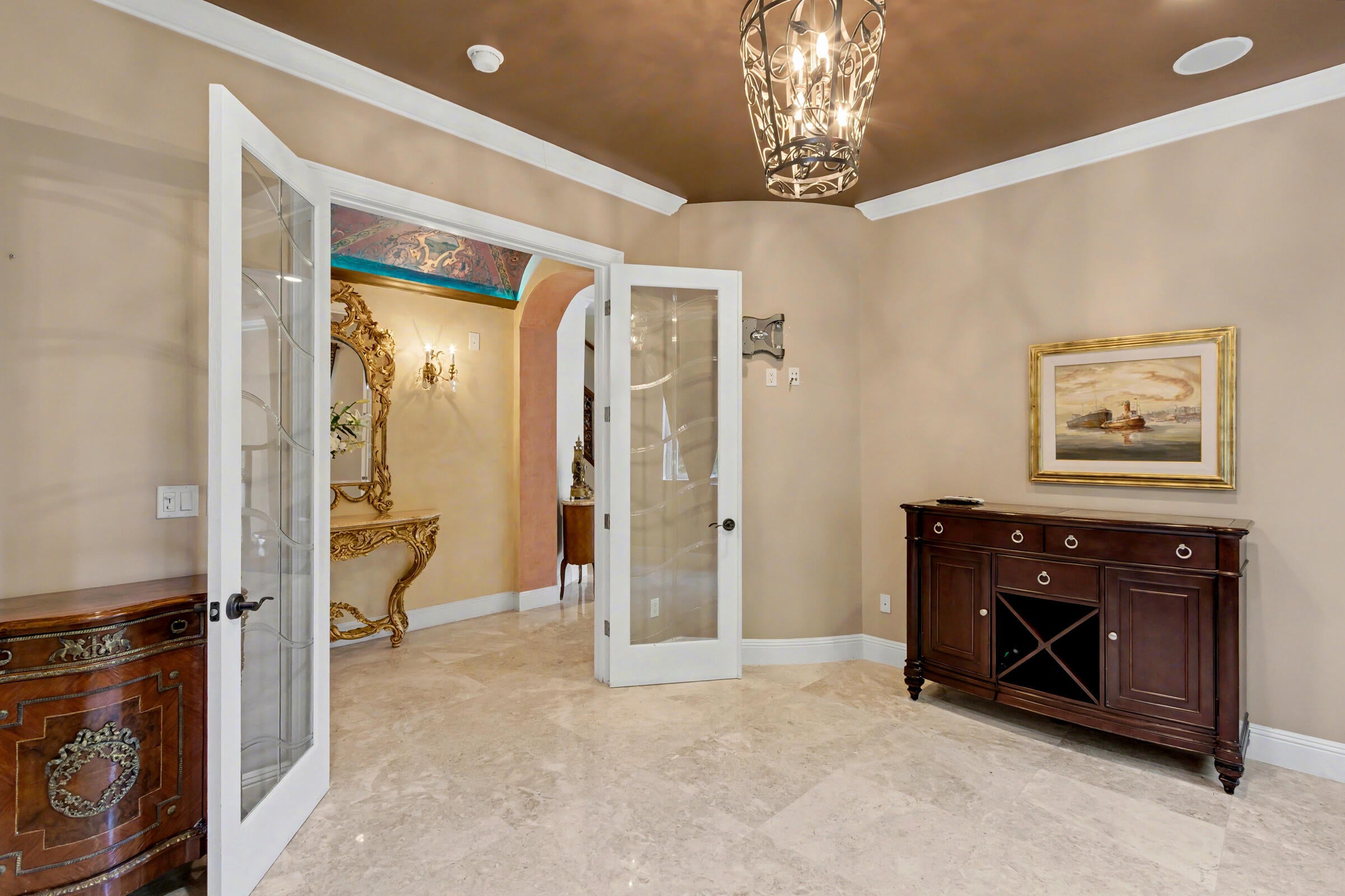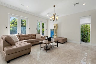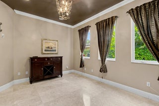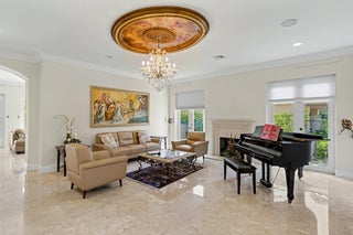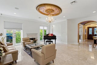 Wonderful Italian villa style home located one block from the Boca beach pavillion and intra-coastal water way. Two minutes away from 9 hole ocean view golf course. This elegant 5-bedroom plus den,6.5-bath residence offers refined luxury living with timeless architectural details and generous living spaces throughout. A grand entry foyer with sweeping staircase sets a dramatic first impression, leading into beautifully appointed formal living and dining rooms accented by marble flooring, custom chandeliers, and intricate ceiling details. The expansive gourmet kitchen features rich wood cabinetry, stone countertops, a large center island, and premium appliances, seamlessly opening to inviting family and entertaining areas.Multiple living spaces provide flexibility, including a cozy family room with custom built-ins and a dedicated media or theater room ideal for relaxing or hosting guest The spacious primary suite is a private retreat, showcasing elegant wood flooring, tray ceilings, and a lavish spa-inspired bathroom with marble finishes, soaking tub, and glass-enclosed shower. Additional bedrooms are generously sized, each with en-suite baths and refined finishes. Throughout the home, attention to detail is evident in the custom millwork, high ceilings, recessed lighting, and abundant natural light. This exceptional property blends classic sophistication with modern comfort, offering an ideal layout for both everyday living and upscale entertaining.