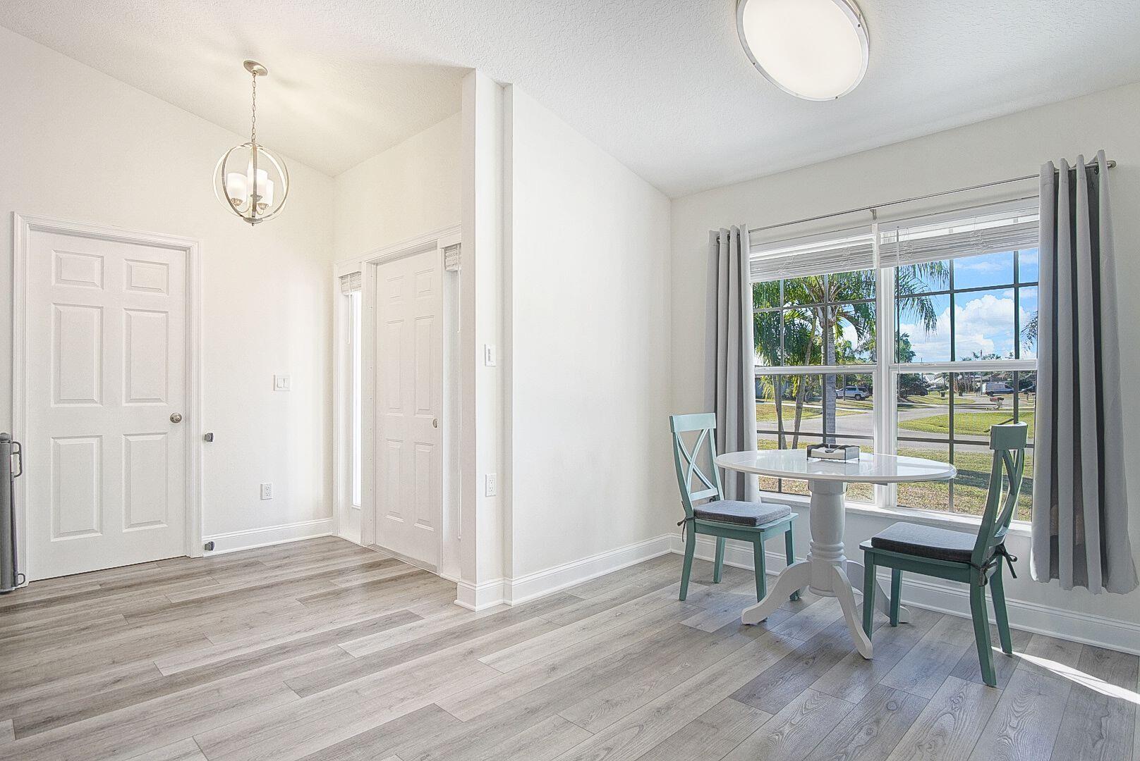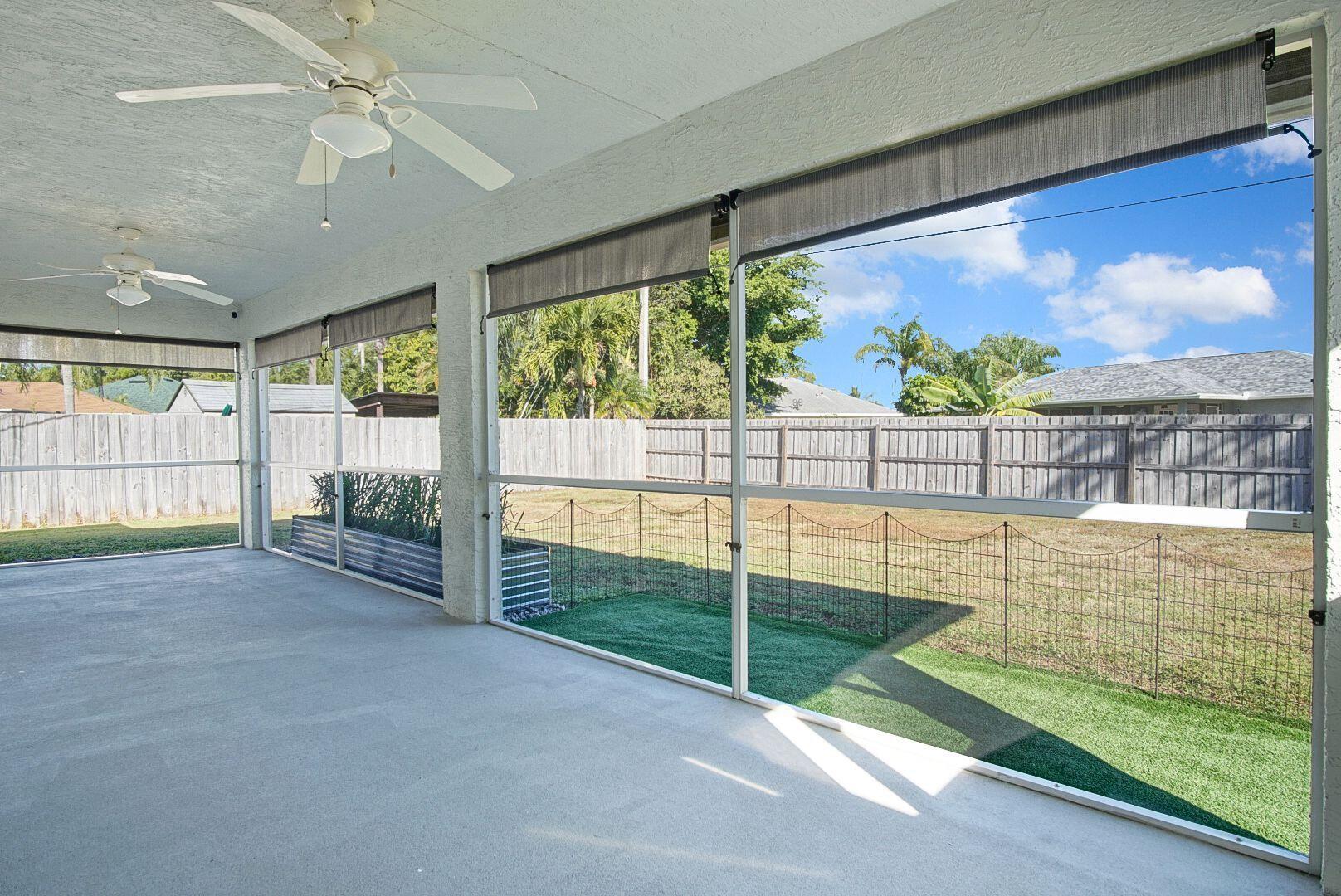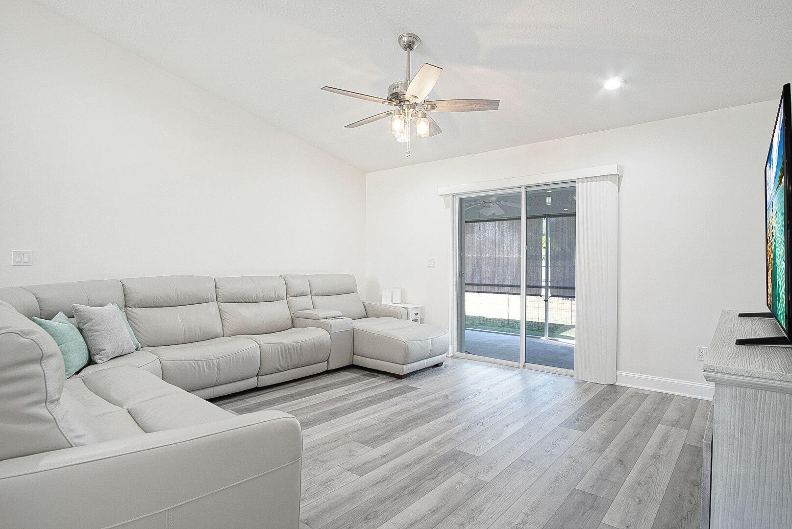 Welcome home to the desirable Southbend area. This amazing 3 bedroom 2 bathroom home has new luxury vinyl floors throughout, both bathrooms remodeled with tile floors, Roof 2021, AC 2022, Water Heater 2022. Fence 2022, and gutters 2022. This completely fenced yard has room for a pool, trailers, boats or RVs. The screened back porch runs the length of the house with adjustable shades to soften afternoon sun. Close to Jessica Clinton Park, Turnpike (2 Exits), I-95, public boat ramps for the C-24 Canal with no fixed bridges, restaurants and shopping. Furniture is negotiable. This home is move in ready.