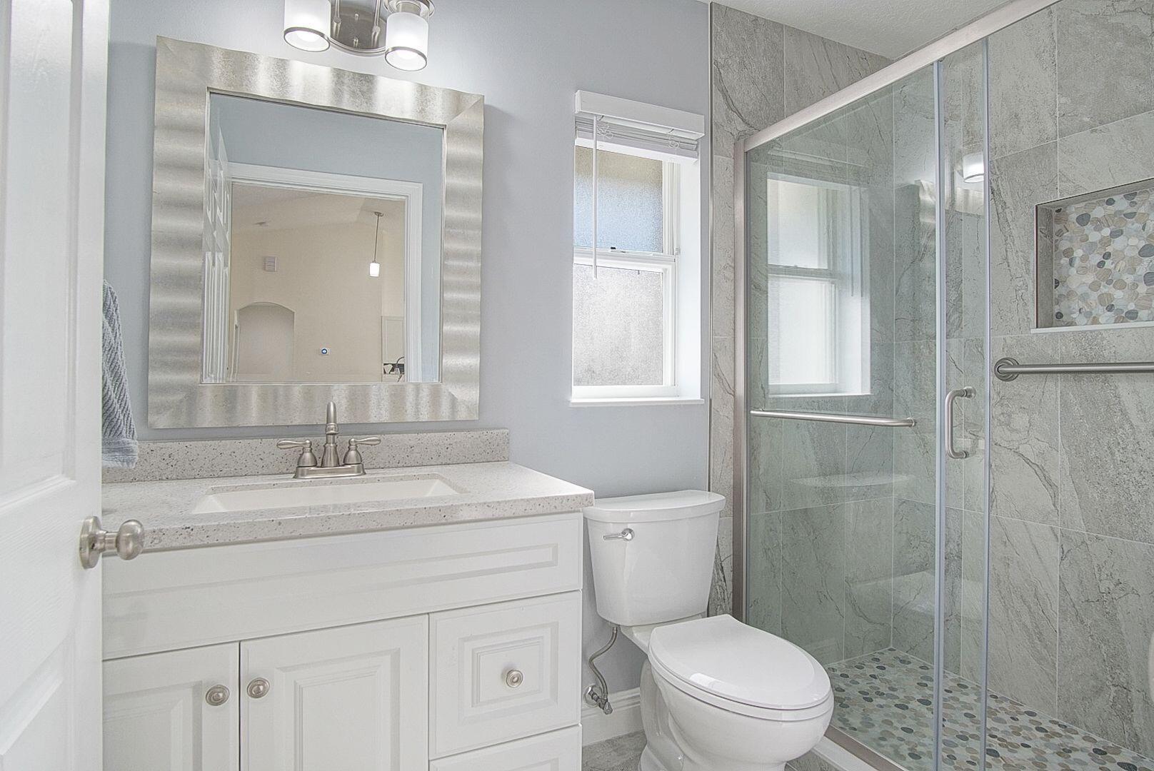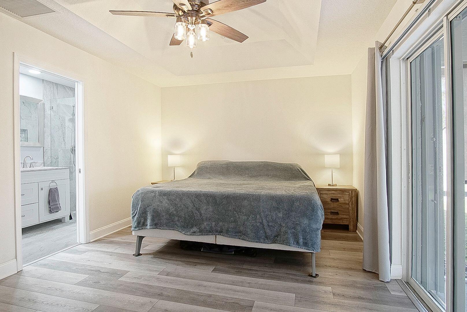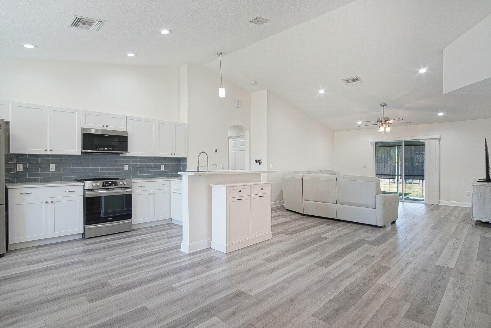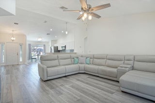 Welcome home to the desirable Southbend area. This amazing 3 bedroom 2 bathroom home has new luxury vinyl floors throughout, both bathrooms remodeled with tile floors, Roof 2021, AC 2022, Water Heater 2022. Fence 2022, and gutters 2022. This completely fenced yard has room for a pool, trailers, boats or RVs. The screened back porch runs the length of the house with adjustable shades to soften afternoon sun. Close to Jessica Clinton Park, Turnpike (2 Exits), I-95, public boat ramps for the C-24 Canal with no fixed bridges, restaurants and shopping. Furniture is negotiable. This home is move in ready.