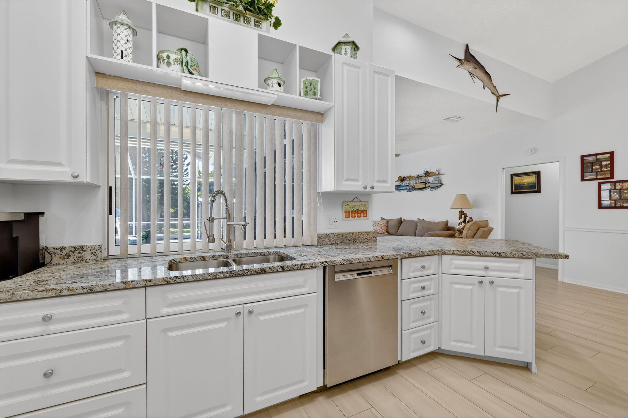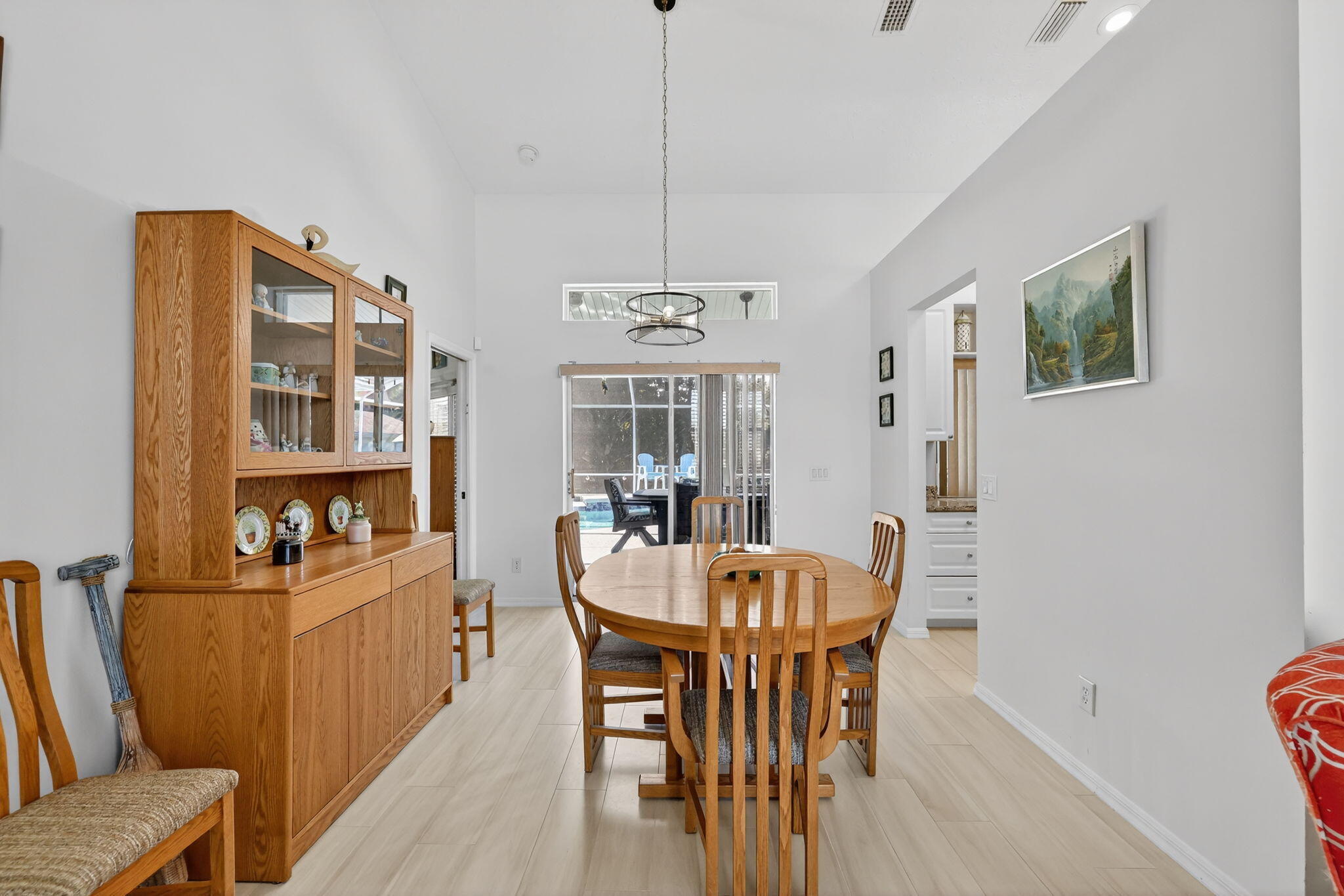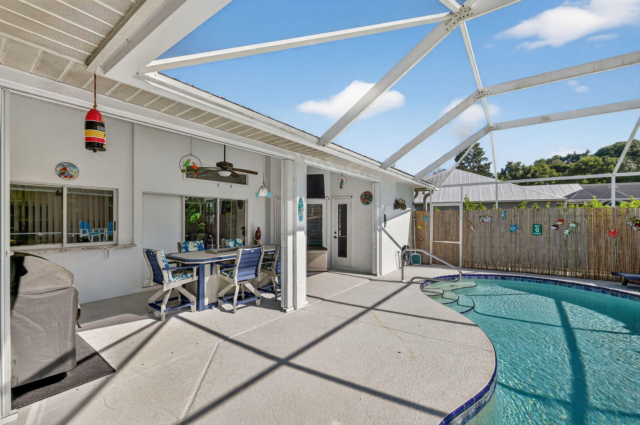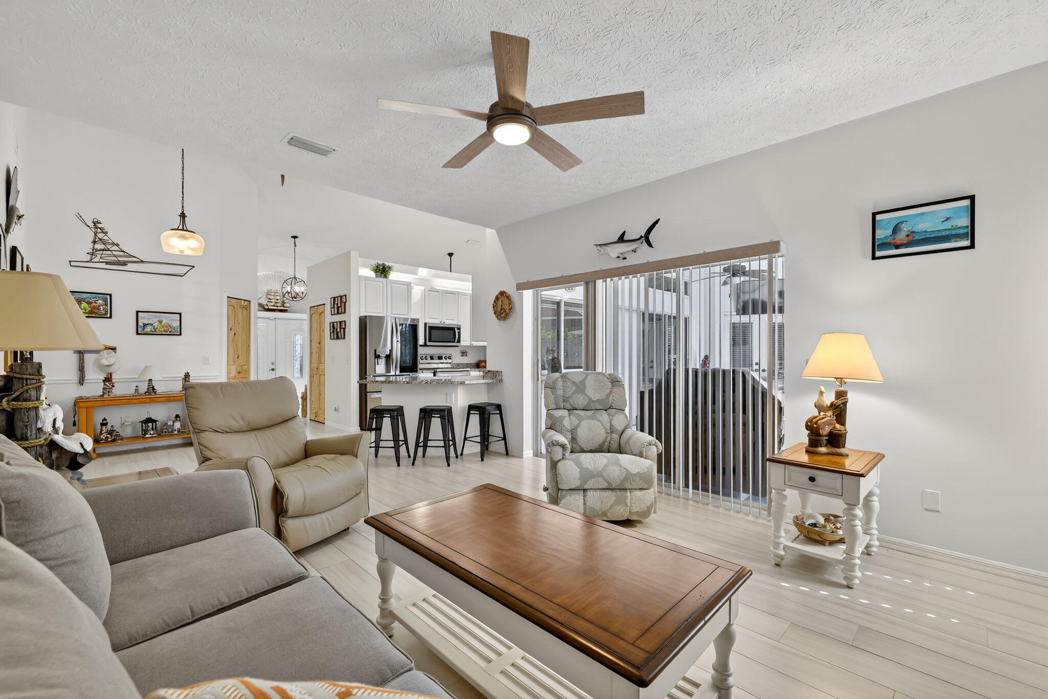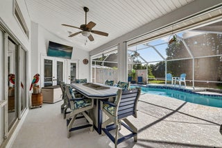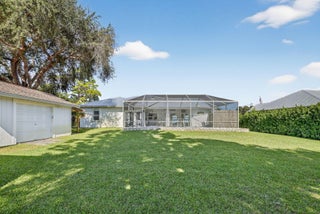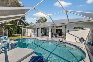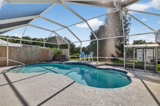 Elegant, Remodeled 3-BR, 2.5-BA home offers modern upgrades and resort-style outdoor living on .33 acre. Upgraded kitchen featuring granite counters, upgraded appliances & pass-through window to 744 sq ft back porch & pool, perfect for entertaining & indoor-outdoor living. Updated bathrooms, wood-look tile flooring throughout, custom plantation shutters. Private, fenced backyard with a recently resurfaced heated saltwater pool overlooks preserve. Add'l features: new metal roof (2023), impact windows (2023), open floor plan, accordion shutters on the lanai, 2-car garage + RV/Boat Parking, & shed. Soutbend offers public boat ramp with river & ocean access. Jessica Clinton Park has playground, soccer, baseball, basketball, tennis, picnic. Close to shopping, dining, beaches, I-95 & Turnpike.Move-in ready and truly a must-see!