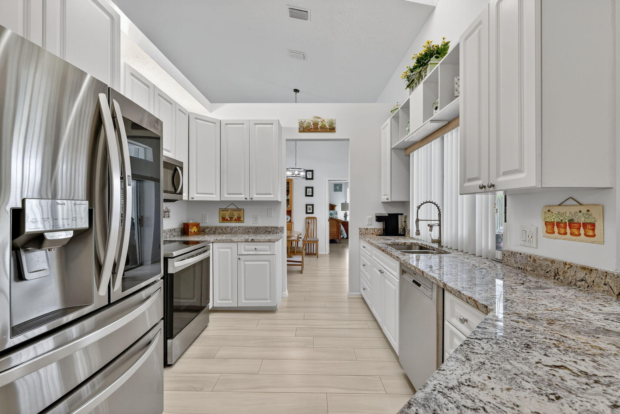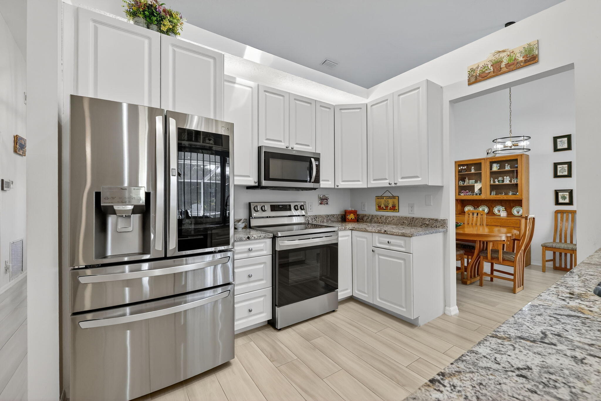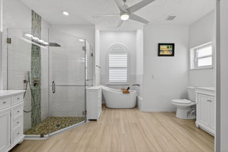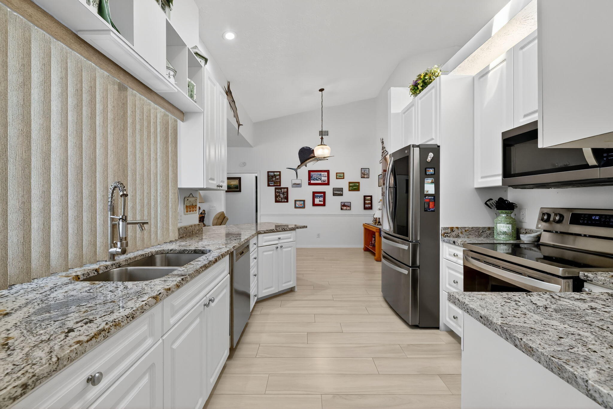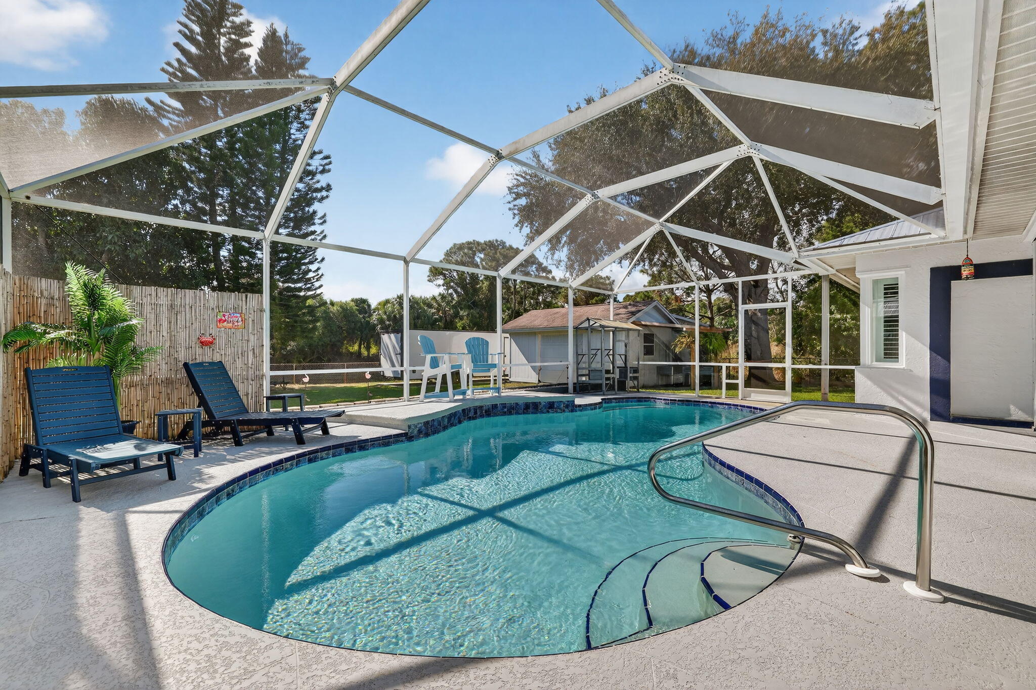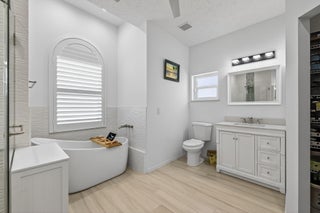 Elegant, Remodeled 3-BR, 2.5-BA home offers modern upgrades and resort-style outdoor living on .33 acre. Upgraded kitchen featuring granite counters, upgraded appliances & pass-through window to 744 sq ft back porch & pool, perfect for entertaining & indoor-outdoor living. Updated bathrooms, wood-look tile flooring throughout, custom plantation shutters. Private, fenced backyard with a recently resurfaced heated saltwater pool overlooks preserve. Add'l features: new metal roof (2023), impact windows (2023), open floor plan, accordion shutters on the lanai, 2-car garage + RV/Boat Parking, & shed. Soutbend offers public boat ramp with river & ocean access. Jessica Clinton Park has playground, soccer, baseball, basketball, tennis, picnic. Close to shopping, dining, beaches, I-95 & Turnpike.Move-in ready and truly a must-see!
