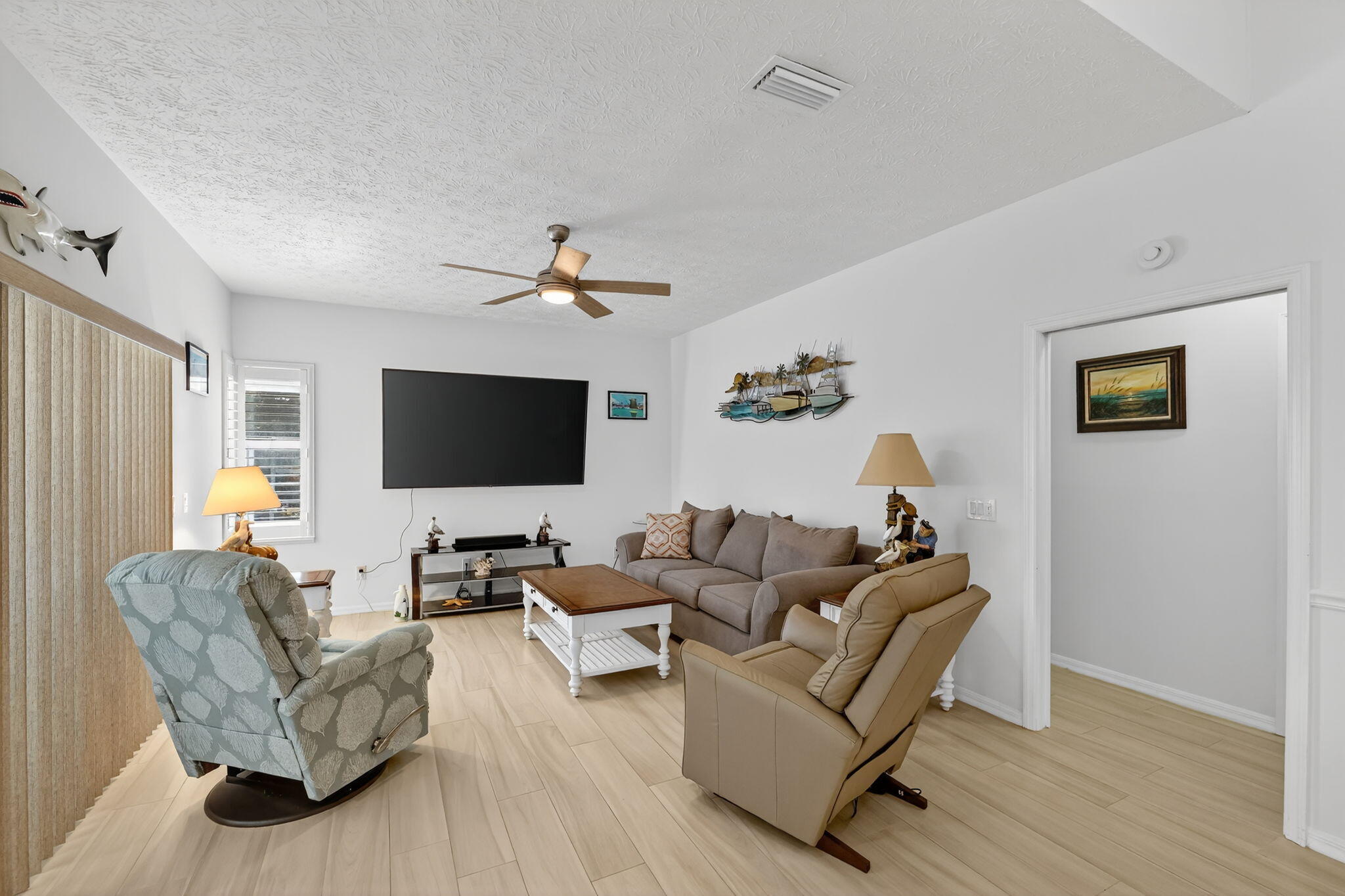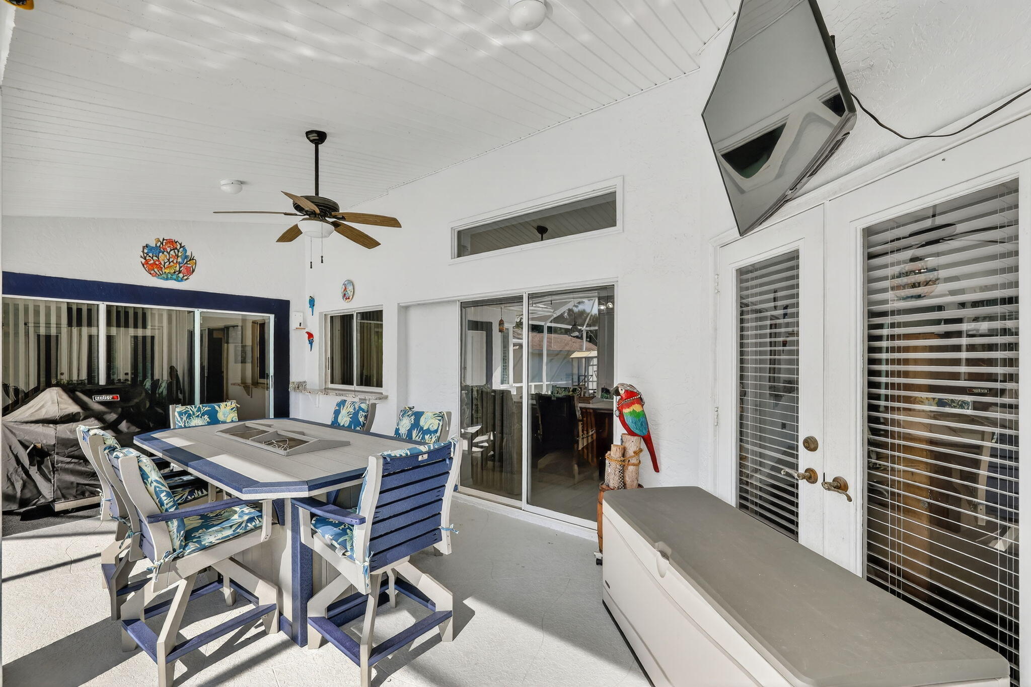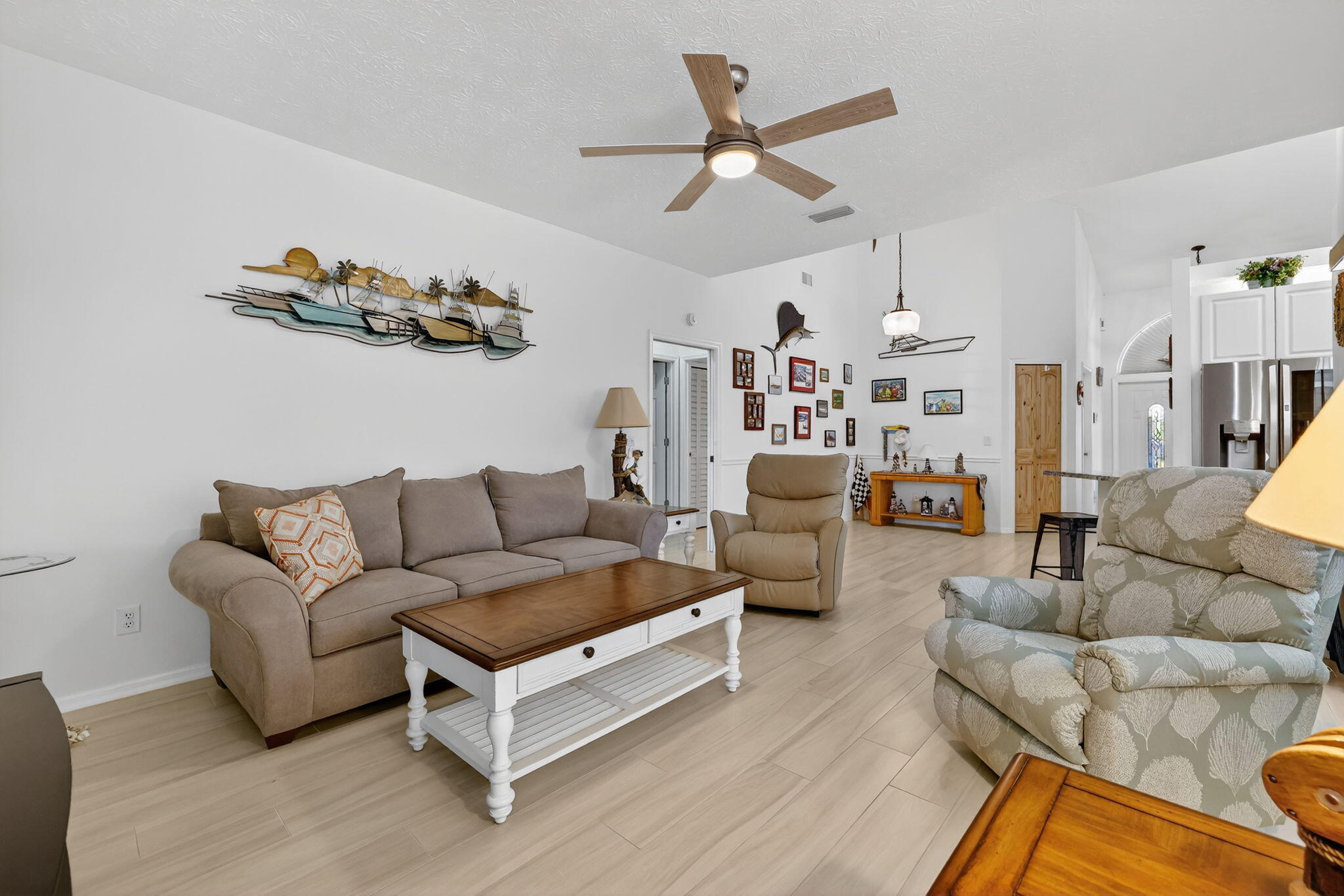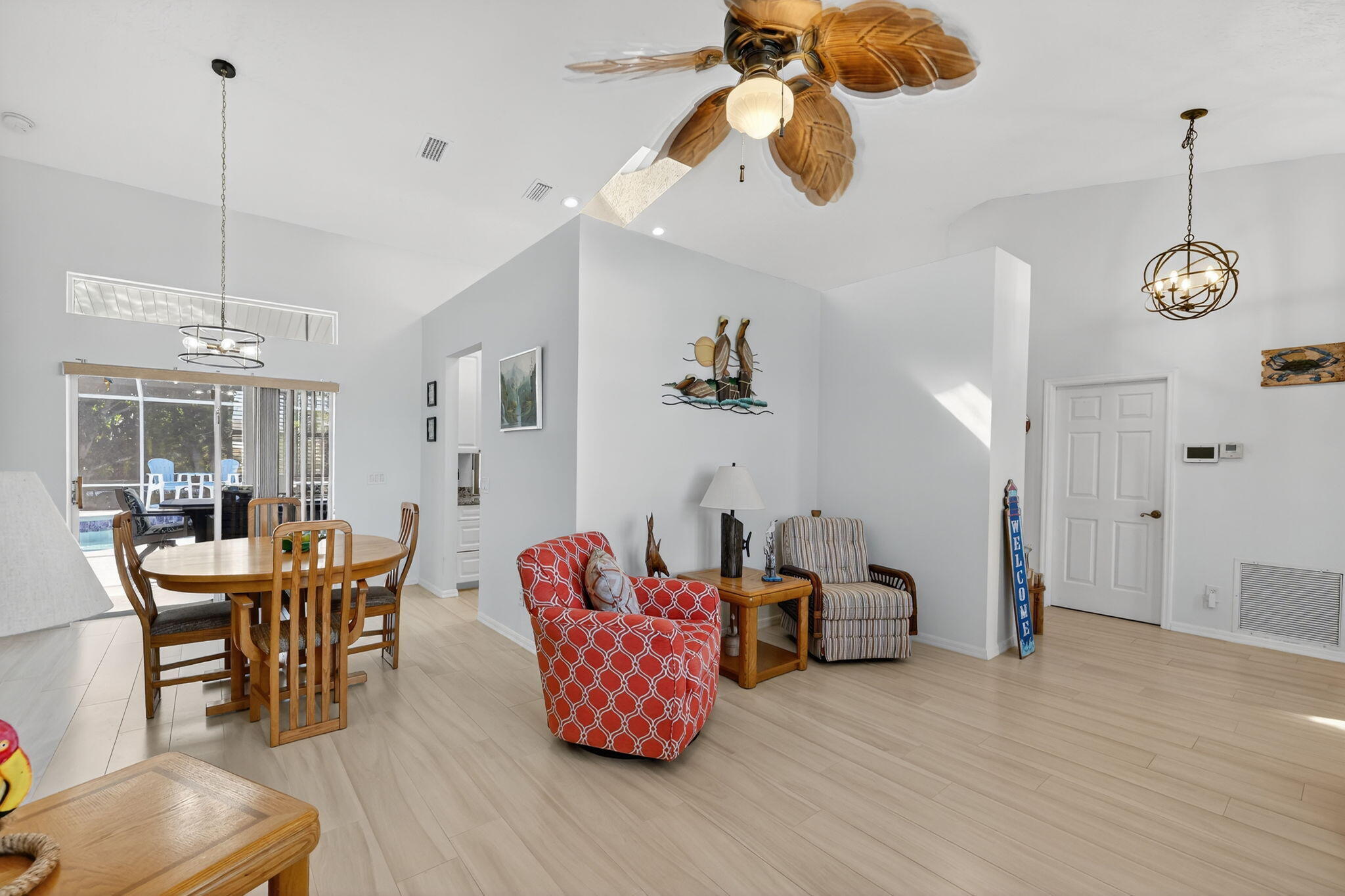 Elegant, Remodeled 3-BR, 2.5-BA home offers modern upgrades and resort-style outdoor living on .33 acre. Upgraded kitchen featuring granite counters, upgraded appliances & pass-through window to 744 sq ft back porch & pool, perfect for entertaining & indoor-outdoor living. Updated bathrooms, wood-look tile flooring throughout, custom plantation shutters. Private, fenced backyard with a recently resurfaced heated saltwater pool overlooks preserve. Add'l features: new metal roof (2023), impact windows (2023), open floor plan, accordion shutters on the lanai, 2-car garage + RV/Boat Parking, & shed. Soutbend offers public boat ramp with river & ocean access. Jessica Clinton Park has playground, soccer, baseball, basketball, tennis, picnic. Close to shopping, dining, beaches, I-95 & Turnpike.Move-in ready and truly a must-see!