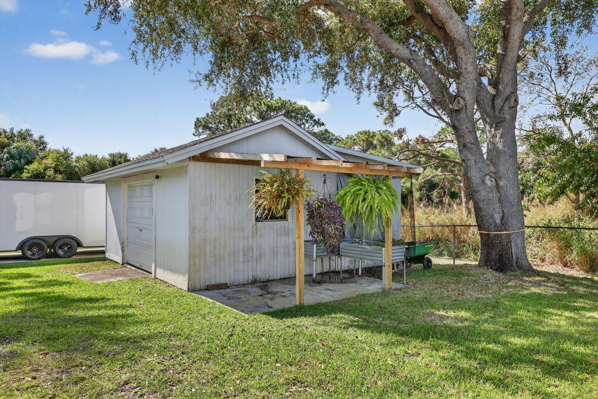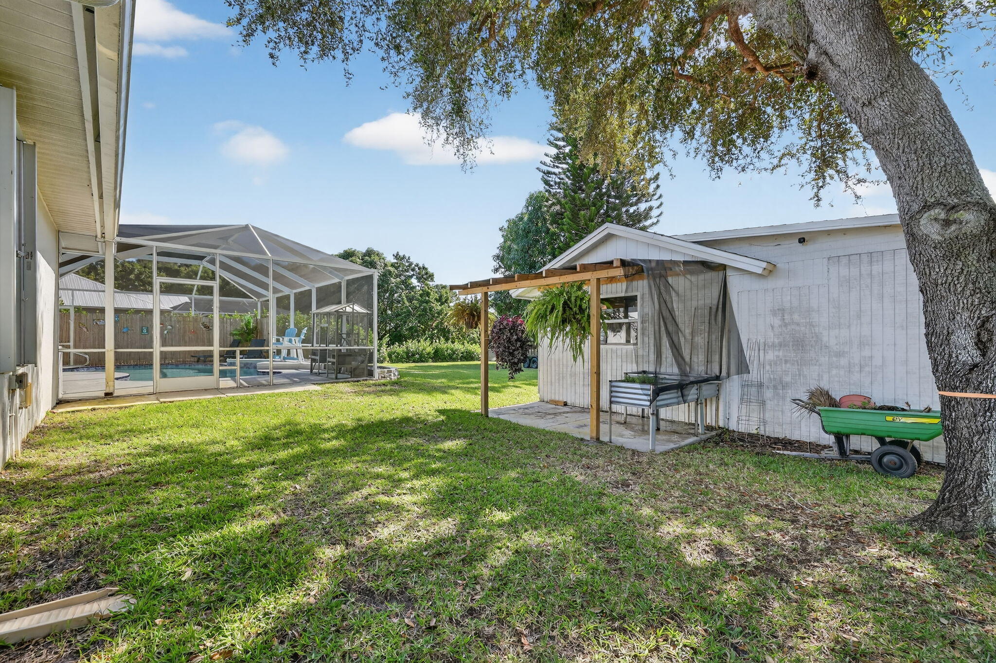 Auto Sprinkler, Screened Patio, Fence, Shed, Cabana, Utility Barn
