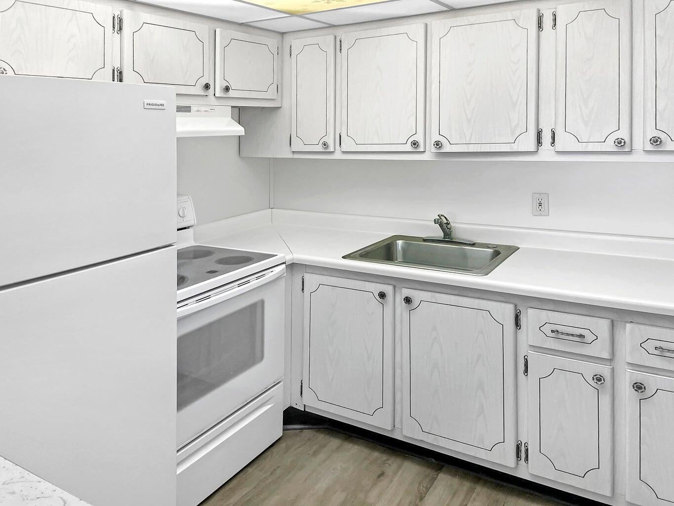Presenting a quiet, bright, modern, renovated, WATERVIEW 1 bed/1.5 Bath in the AGE-RESTRICTED/OVER 55 community of Century Village featuring brand new luxury vinyl floors and completely renovated bathrooms. This second story condo has the benefit of expansive waterviews, while having the convenience of an elevator just steps to your door. Serenity awaits as you sit on your balcony, feel the breeze & listen as the birds sing. Welcome home to your new tropical paradise, where you can experience amenities galore in this active, gated 55+ community! Take a sailboat lesson, see a new release movie or show in the 1200 seat theater, or try woodworking in the massive clubhouse. Cool off in one of 17 pools, exercise in the gym or resistance pool or take the free shuttlebus to shop!