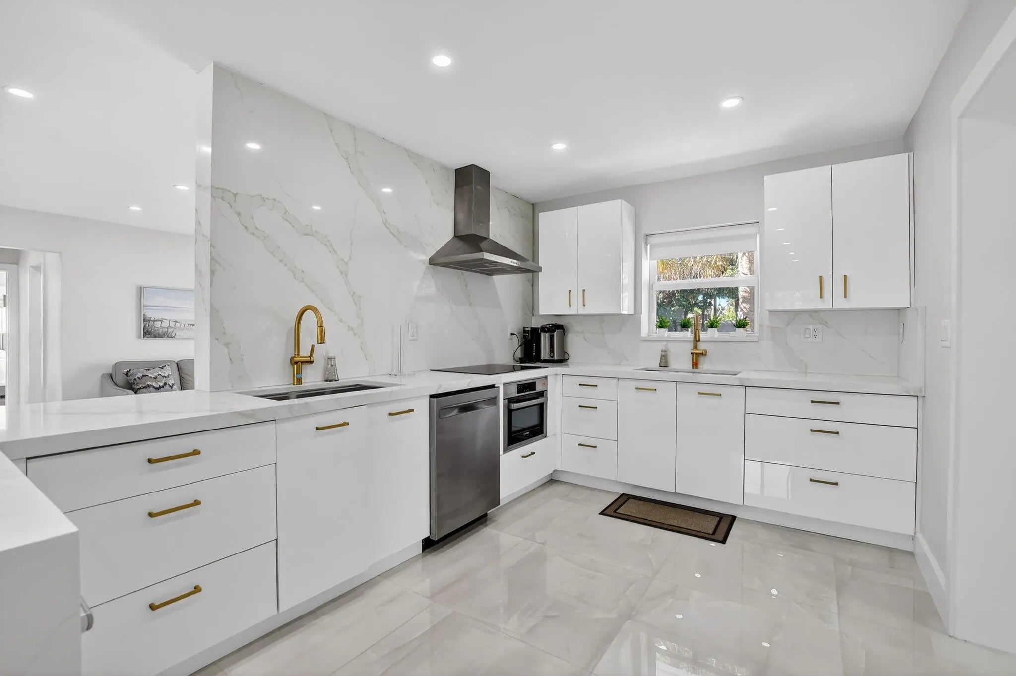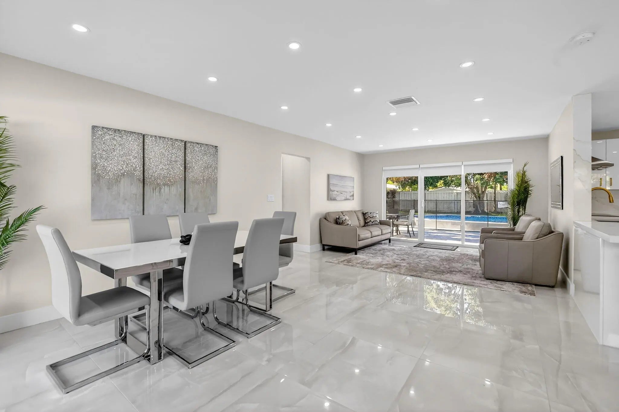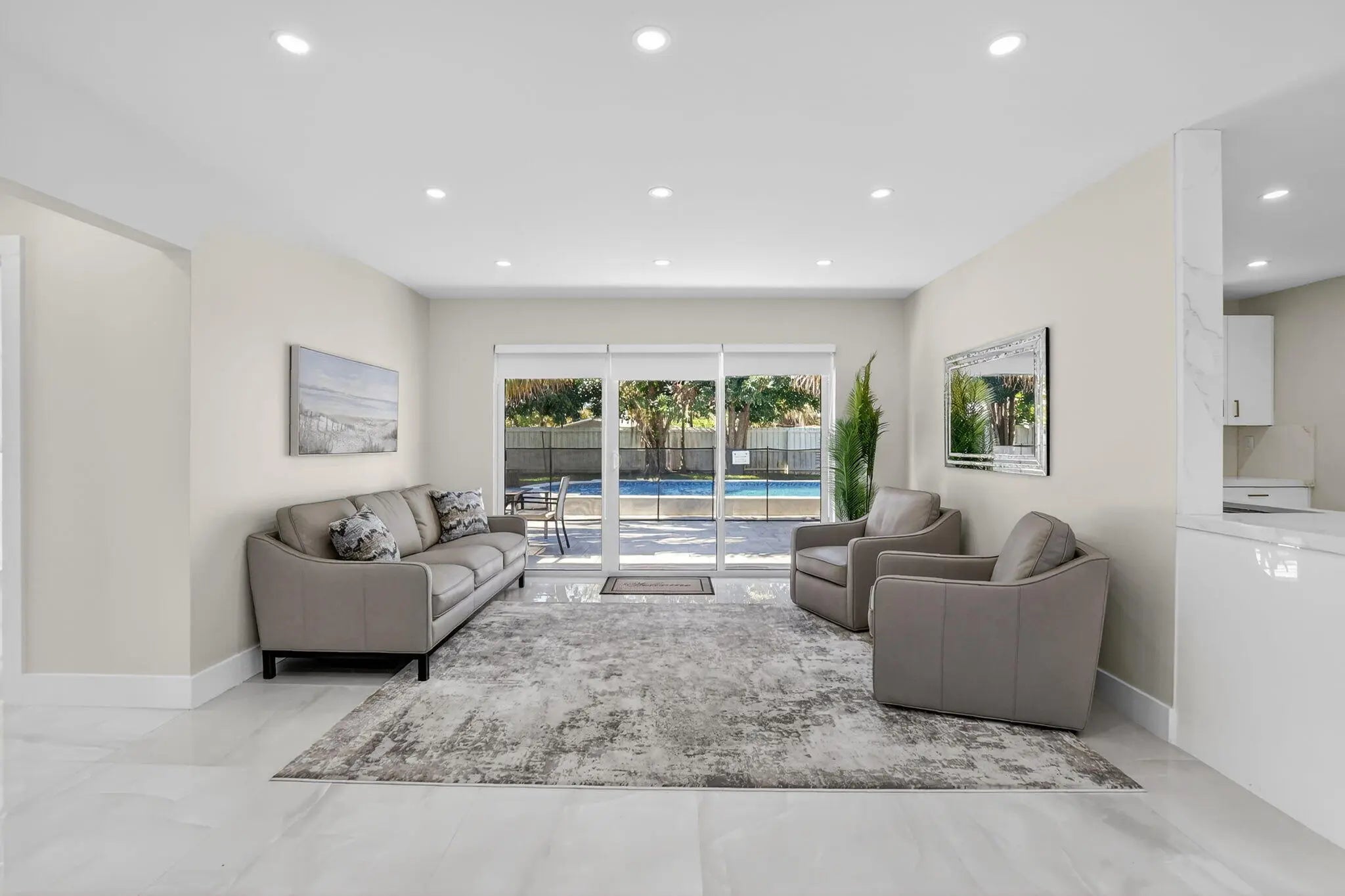 Fully renovated, sold-furnished 2-bedroom,2-full-bath luxury home in East Boca Raton.Upgrades include newer AC, water heater, impact windows/doors, designer kitchen, and marble floors. Light-filled open layout flows to a heated pool and grassy yard, perfect for entertaining. Minutes from beaches, dining, and shopping. Move-in ready with top-of-market finishes.