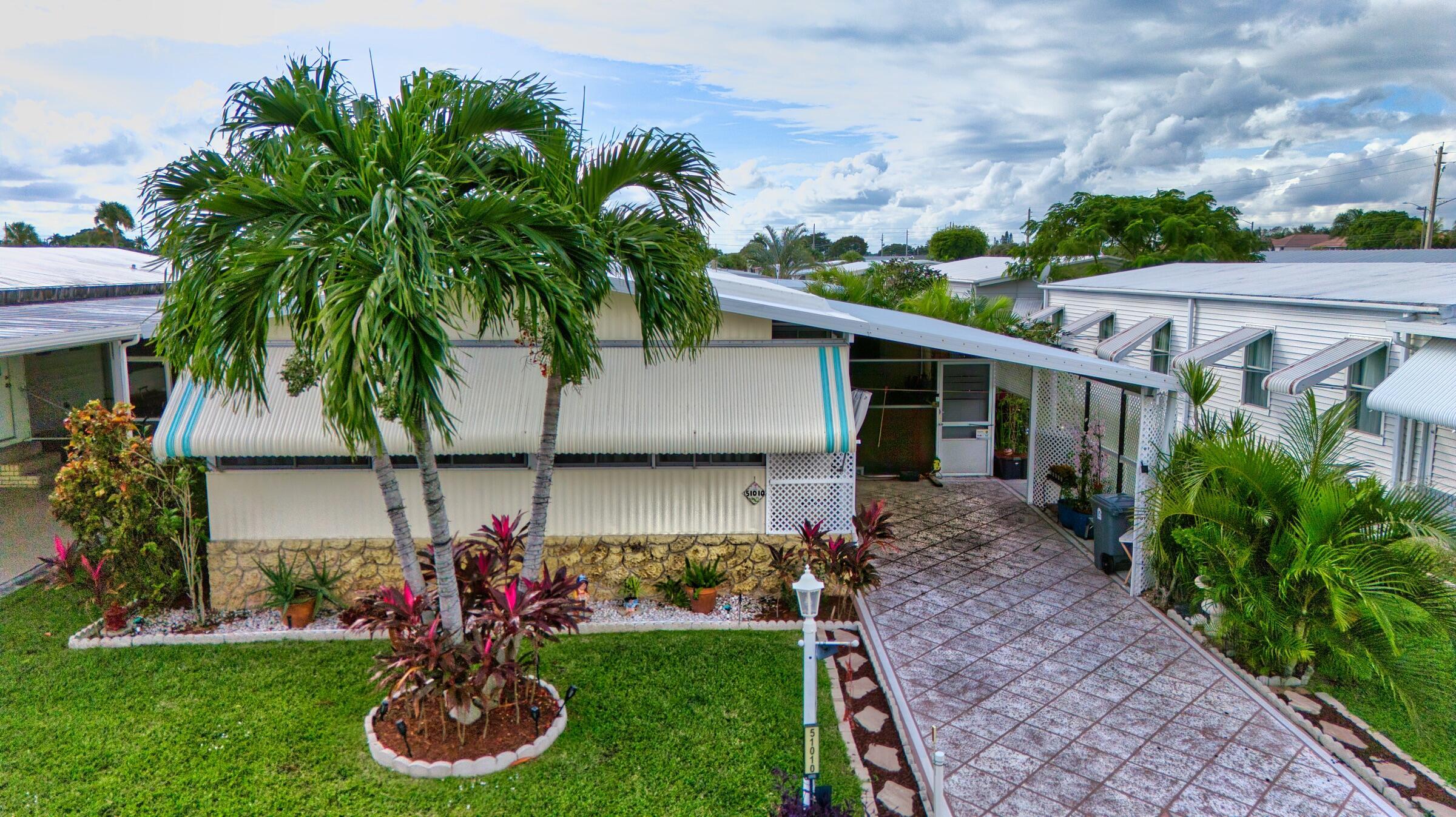 Welcome to this distinctive 2-bedroom, 2-bathroom double-wide modular home, offering rare features and thoughtful upgrades that blend comfort, style, and sustainability. Located in the vibrant 55+ gated community of Jamaica Bay in Boynton Beach, this home is perfectly situated for those seeking an active lifestyle in a friendly and secure community. The charming kitchen features a new sink with an upgraded faucet, a window over the sink, white cabinetry, and a convenient snack bar. Both spacious bedrooms offer ample storage, each equipped with a walk-in closet plus an additional closet (two closets per room).For personalized climate control, this home includes dual air conditioning systems. A central AC cools the entire space, complemented by an energy-efficient mini-spl
