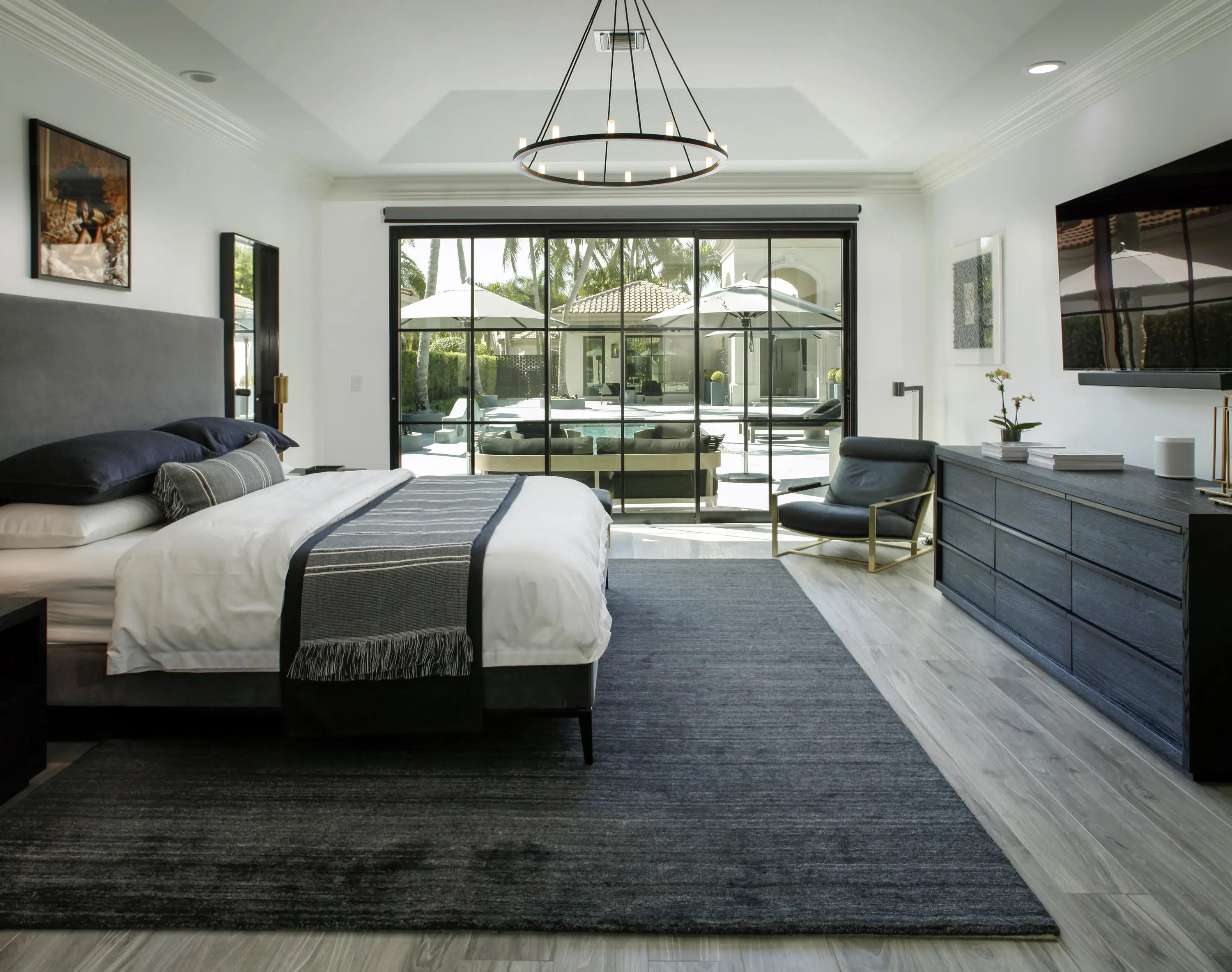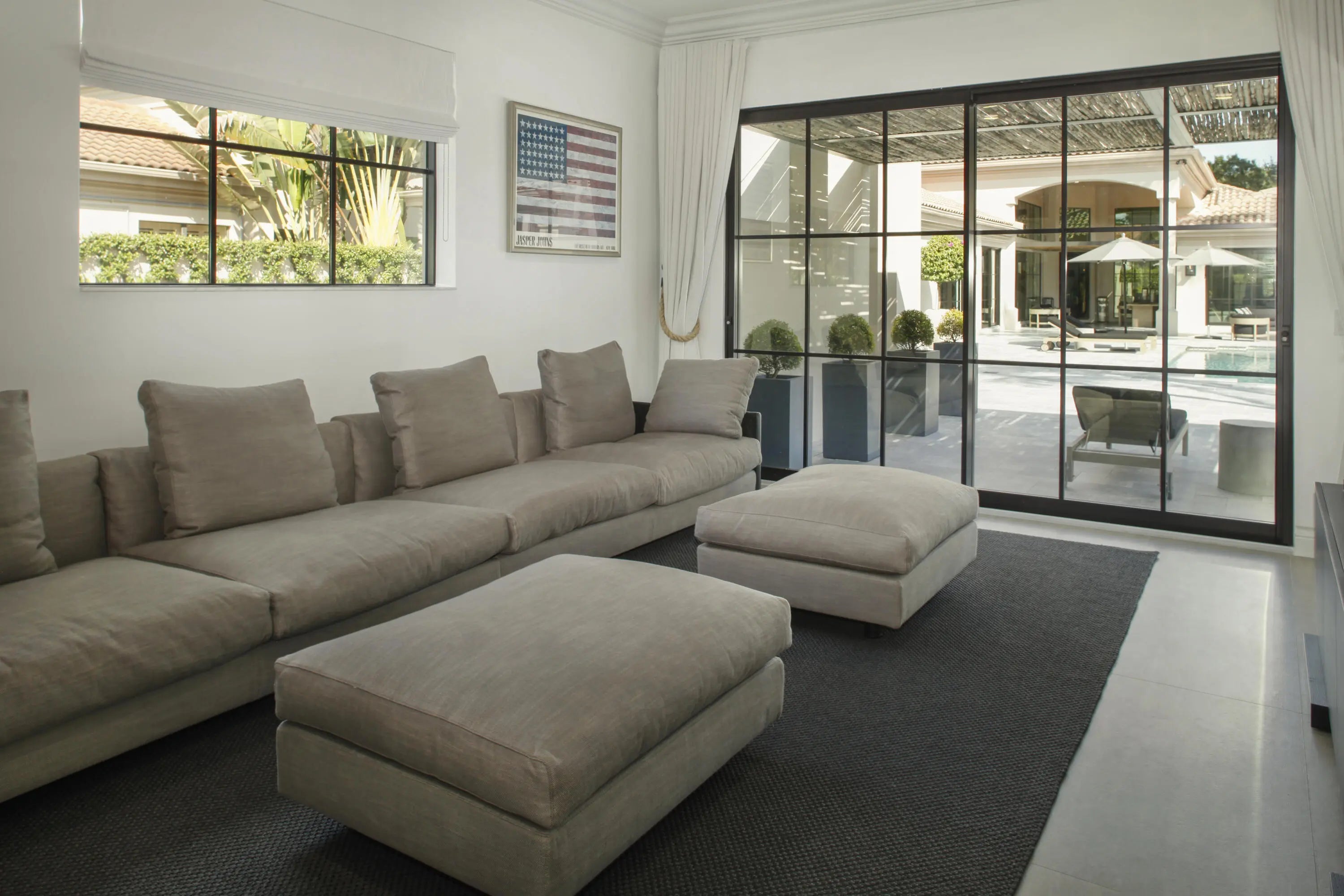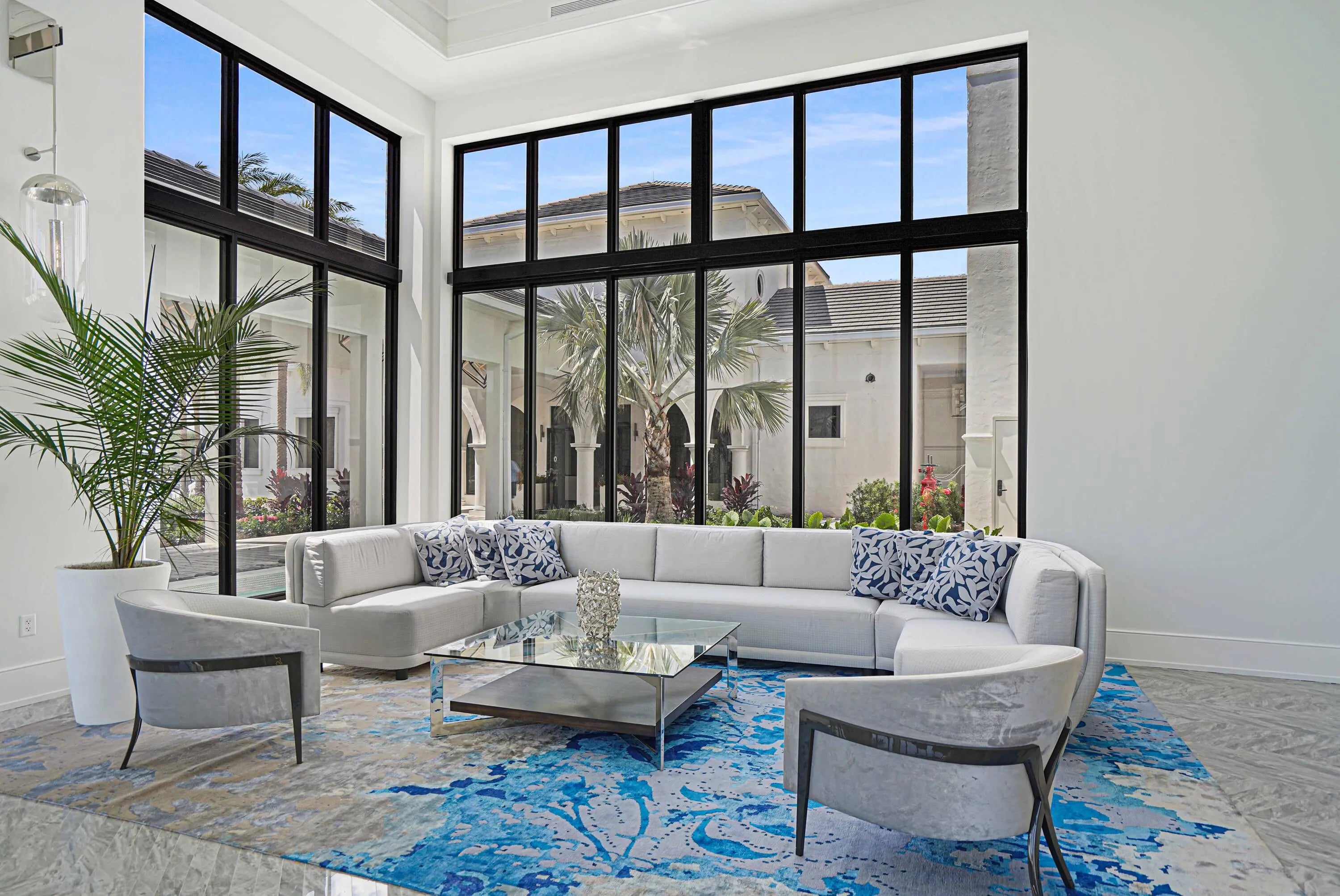 COURTYARD ESTATE- Single-Story Pool Home in Broken Sound ClubLocated in Broken Sound Club in Boca Raton, Florida, this fully renovated single-story courtyard residence offers a private pool layout within one of Boca Raton's established gated golf communities. The home is designed with open living and dining areas framed by floor-to-ceiling windows, allowing natural light and indoor-outdoor access to the courtyard terraces from the principal rooms.The updated kitchen features modern cabinetry, quartz countertops, upgraded fixtures, and integrated lighting, supporting both everyday living and entertaining. The floor plan includes four bedrooms, a flexible den, and a dedicated media room, providing adaptable space for full-time residence, seasonal living, or multi-generational use.