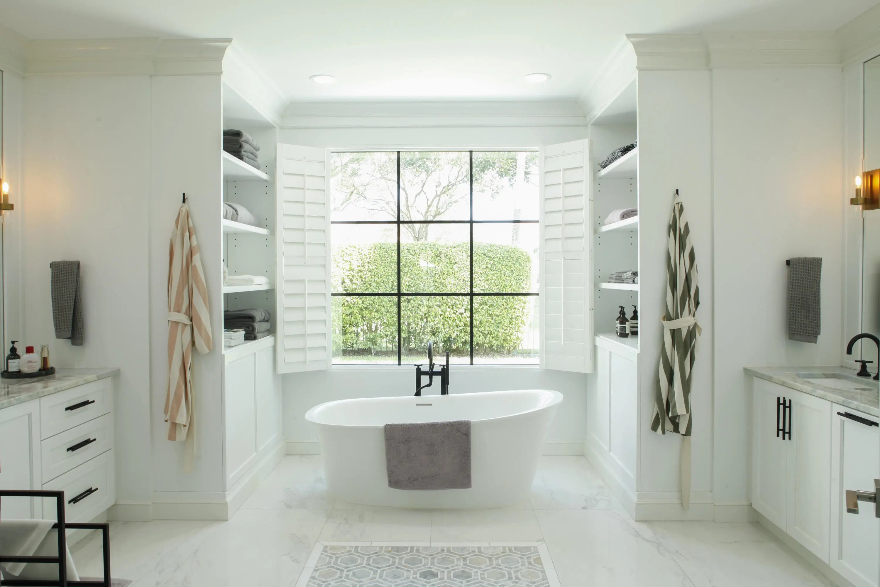 Built-in Shelves, Closet Cabinets, French Door, Roman Tub, Split Bedroom, Volume Ceiling, Walk-in Closet