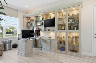 Welcome to 11698 SW Coronado Springs Drive, a meticulously maintained residence located in Valencia Cay at Riverland, one of Port St. Lucie's most desirable 55+ communities. This exceptional Vintage and Crown Collection home sits on an oversized, prime pie-shaped lot with rare southern exposure and is one of Riverland's only long-lake, southern-view pool homes, offering breathtaking sunrise-to-sunset water views and an unparalleled living experience. Designed for the ultimate Florida lifestyle, the property features additional yard space on both sides and a private backyard that serves as a true entertainer's retreat. Highlights include a heated and chilled saltwater pool with a natural boulder rock waterfall, an in-water umbrella table with seating, sealed travertine decking, an extendedlanai, a quartzite outdoor kitchen with a built-in stainless steel grill, a hurricane-rated roll-down screen enclosure, and a cozy fire pit. And of course the most BEAUTIFUL views. Inside, the bright open-concept layout is ideal for both everyday living and entertaining. The chef's kitchen is a true entertainer's dream, appointed with level-five cabinetry, premium finishes, an oversized island, high-end appliances, and bar seating for four. Smart home features provide seamless control of the pool, outdoor screens, and window treatments. A versatile den can function as a third bedroom, and the one-car garage has been converted into a gym, hardwired for air conditioning. The spacious primary suite is a peaceful retreat with stunning long-lake views, a beautifully oversized primary bathroom, and two generous walk-in closets. Natural light fills the living spaces, creating a warm and inviting atmosphere throughout the home. Located in the vibrant Riverland community, residents enjoy world-class amenities including resort-style pools, multiple restaurants, the RiverFresh Café, a state-of-the-art fitness campus, pickleball courts, an Arts and Culture Center, and an active social calendar filled with clubs and events. Set in a quiet, well-maintained neighborhood with convenient access to shopping, dining, parks, and major roadways, this home offers an exceptional blend of luxury, comfort, and lifestyle. Whether you are seeking a full-time residence or a place to enjoy the Florida lifestyle, this beautiful home presents a rare opportunity to own one of Riverland's most unique waterfront properties. Extensive upgrade list available.