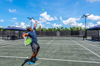 Bocce Ball, Cafe/Restaurant, Clubhouse, Exercise Room, Game Room, Indoor Pool, Manager on Site, Park, Pickleball, Pool, Spa-Hot Tub, Tennis, Ball Field, Dog Park, Fitness Trail