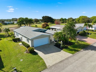 Golf front home with 2-car garage in active 55+ community of Savanna Club. Open floor plan. Two bedrooms, den-office-or third bedroom. Granite counters, SS appliances, upgraded cabinets, lovely LPV flooring. Generous size Primary Bedroom and bath (see floor plan). Enjoy the enclosed lanai with view of 13th Hole. Exterior patio for sunning and grilling. Irrigation well. Savanna Club has country club style amenities, 3 clubhouses, 3 fitness centers, 3 swimming pools, 18-hole golf, theatre for live performances, cafe, clubs, bocci, shuffleboard and many activities. New Roof and Water Heater 2025. Portable generator conveys. All measurements approximate - buyer to verify. Met stadium is in St. Lucie and a soccer stadium is planned. Close proximity to ocean. Land Lease property.