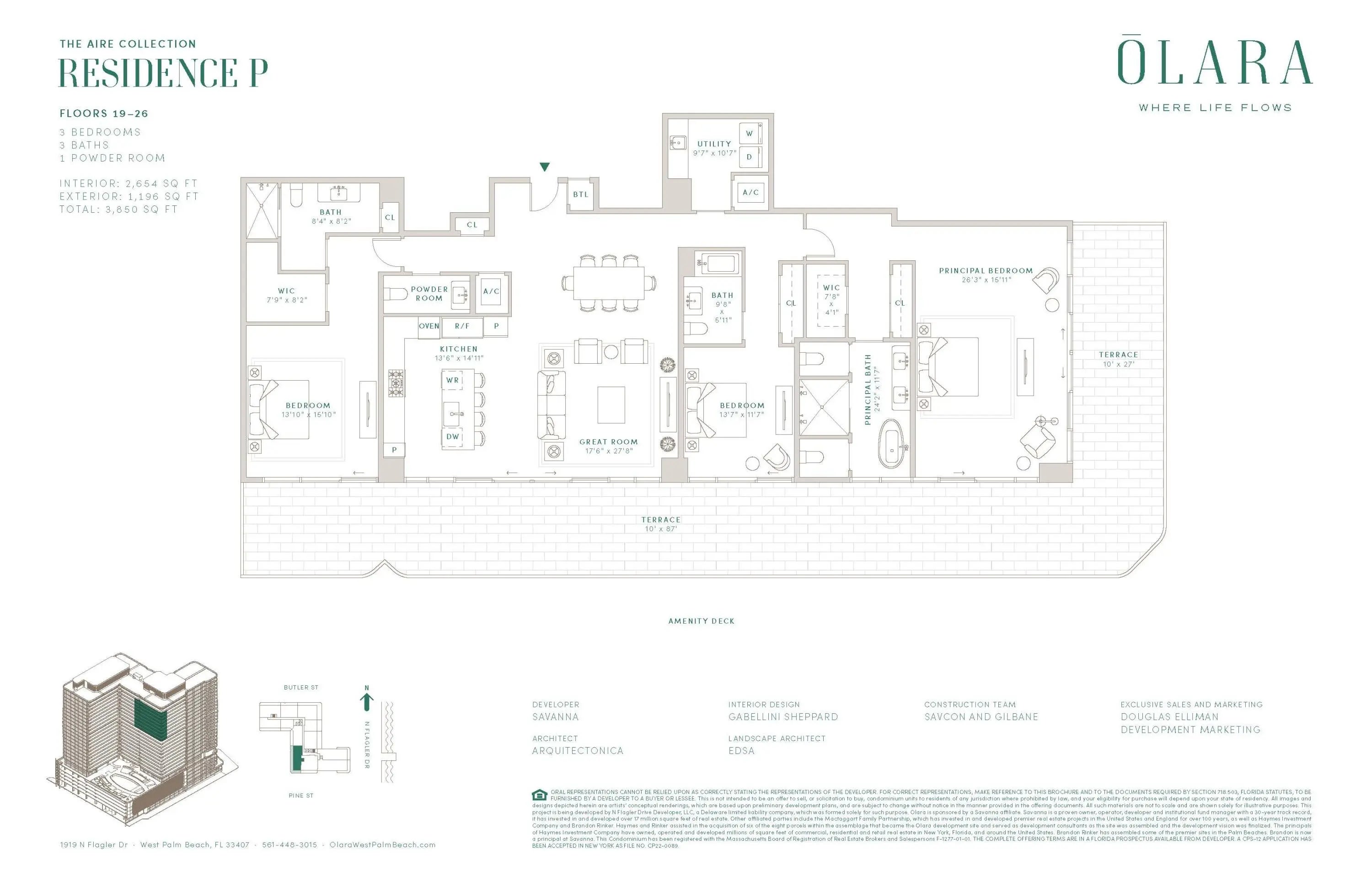 With vertical construction now well underway, Olara introduces a first-of-its-kind luxury waterfront lifestyle along North Flagler Promenade. Thoughtfully designed 2- to 4-bedroom plus den residences by Gabellini Sheppard showcase refines finished, floor-to-ceiling windows, and sweeping views of the Intracoastal and Atlantic Ocean. Centered on health, wealth, and five-star service, Olara features two acres of world-class amenities, multiple pools, daily fitness and Pilates classes, a Wright Fit training center, and dining by the world-renowned Jose Andres Group. Managed by ARCH Amenities, creators of Baccarat Residences, this 26-story resort-style sanctuary delivers full-service living one mile from Palm Beach Island with a full-building generator and low HOA fees.