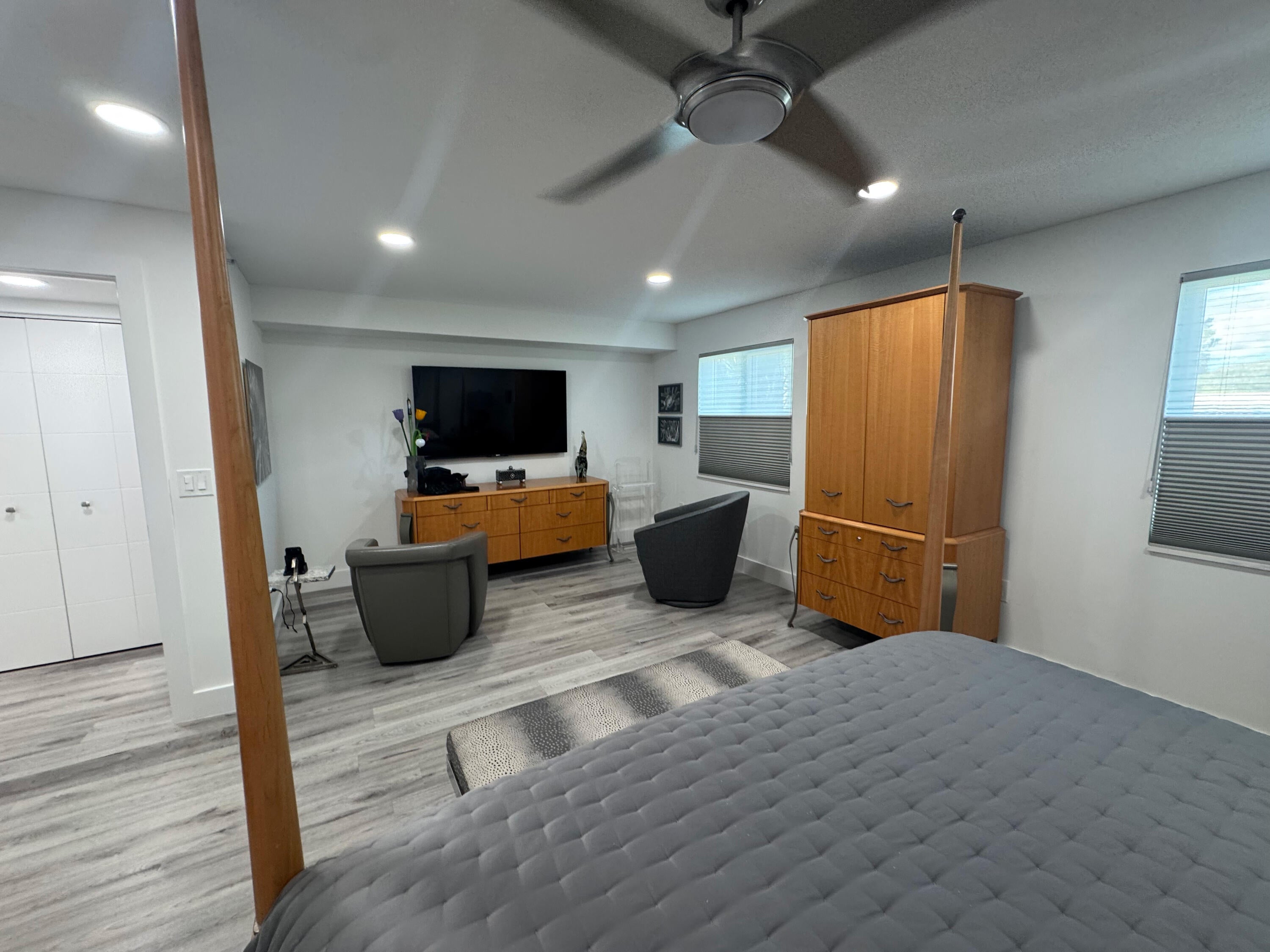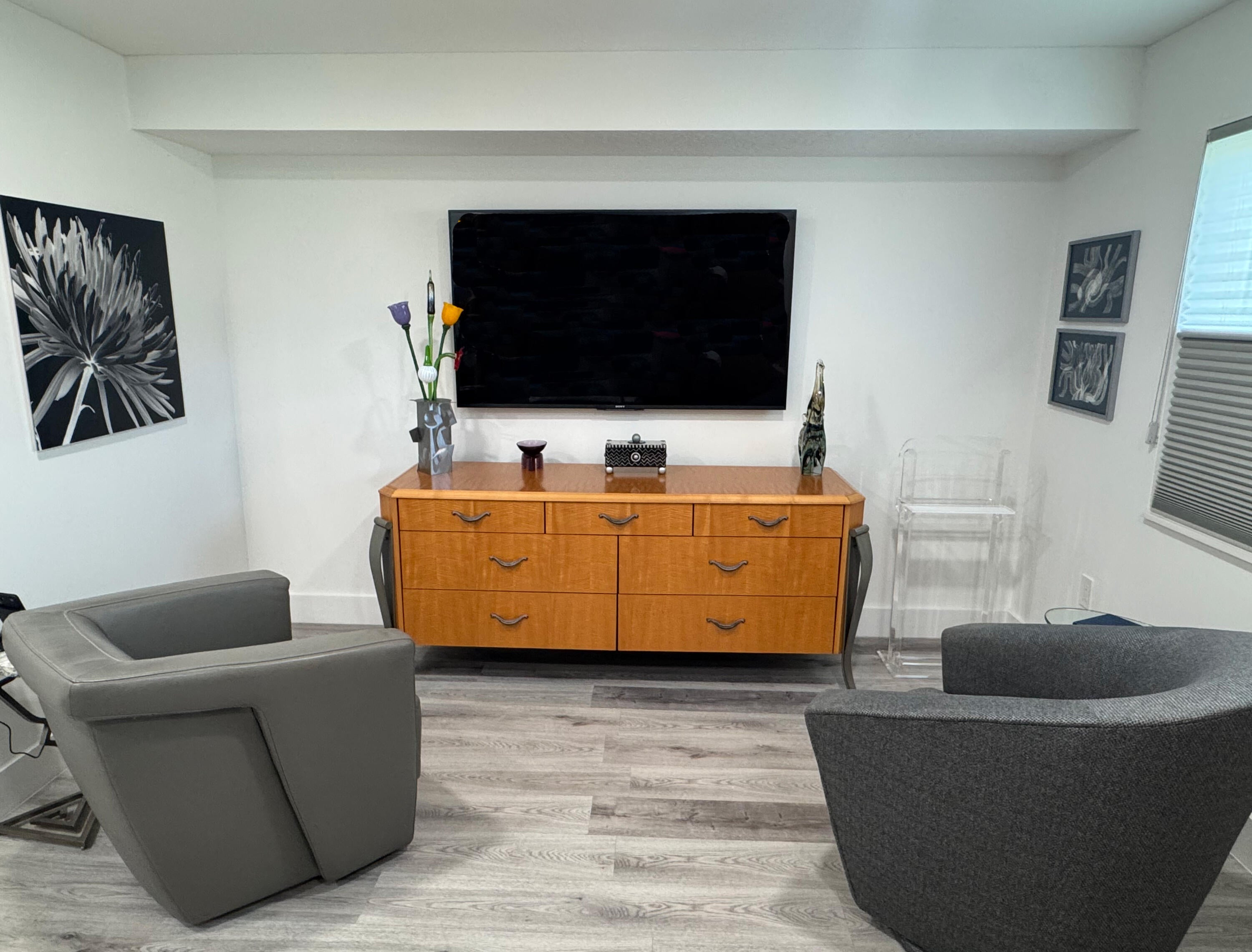 Offered totally furnished, this top-of-the-line designer decorated 2-bedroom plus den, 2-bath ground floor unit includes private carport parking. Open plan. Completely renovated in 2022: new kitchen, new appliances, water filtration, wine chiller, tankless water heater, Roman shades, new a/c, new hot water heater, new roof and gutters in 2025. World-classs amenities include tennis, pickel ball, pools, clubhouse, theatre, fitness -- everything EXCEPT golf! Active 55+ adult community. Club offers breakfast and lunch daily and dinner can be delivered right to your door with a tip.