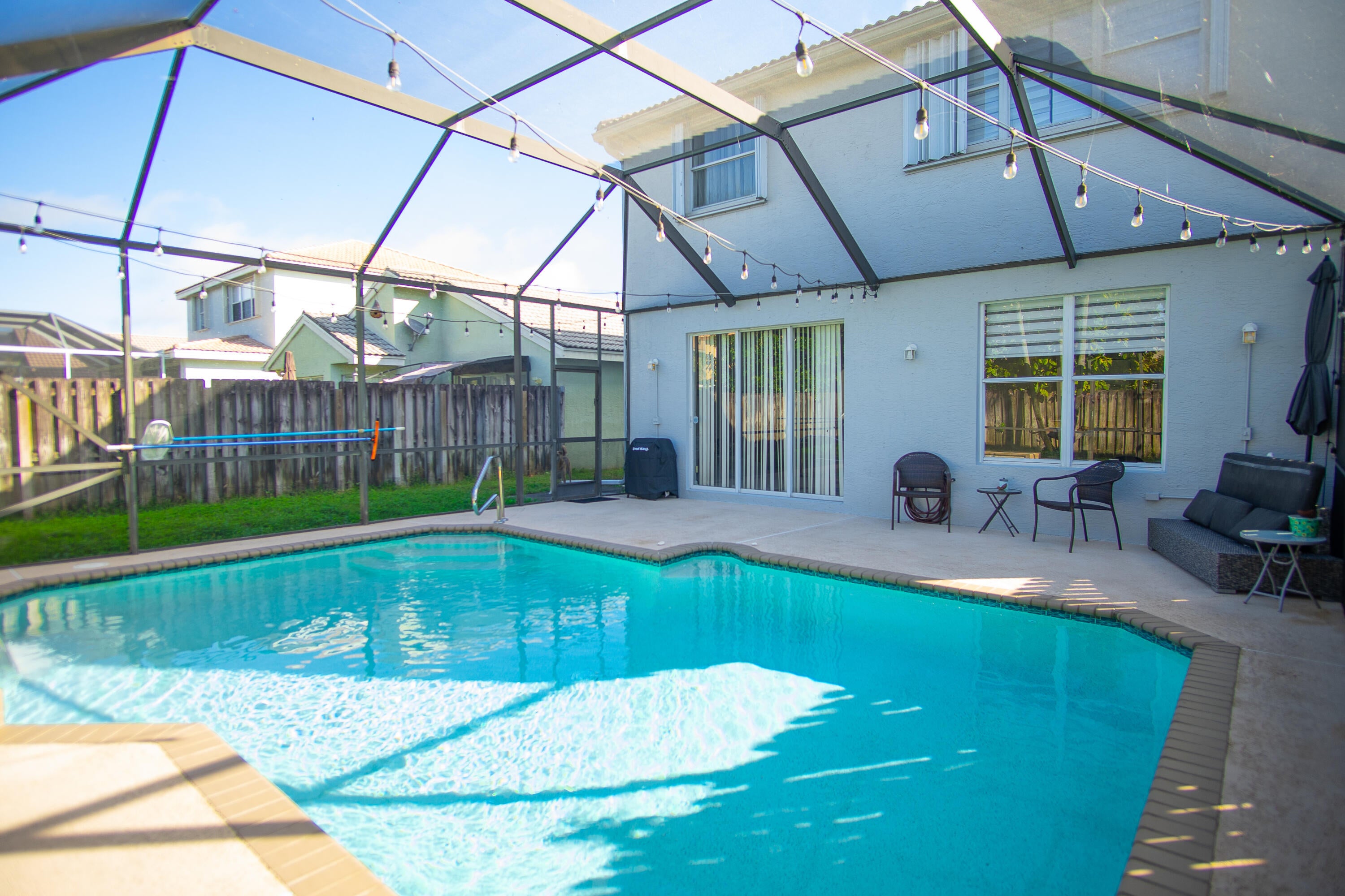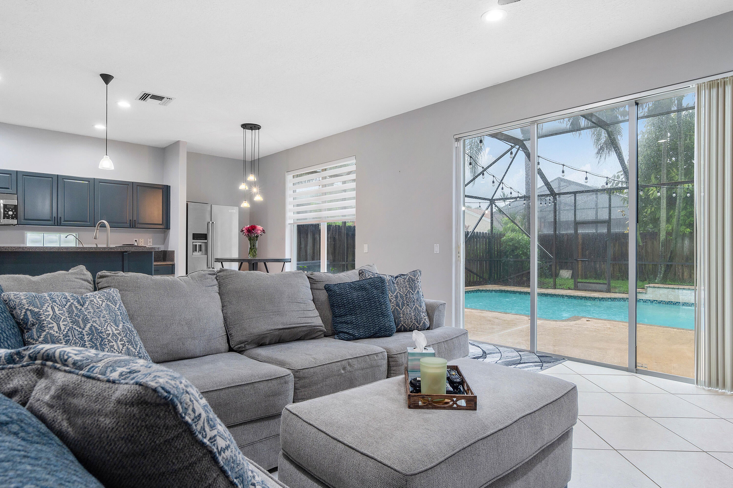 Discover elevated living in this 4 bedroom, 2.5 bathroom home for sale in Nautica Sound. The heart of this home is the gourmet kitchen, equipped with high-end stainless steel appliances, custom cabinetry, and a central island. Sliding glass doors lead to a private screened in patio, extending the living space and providing an ideal spot dining or morning coffee overlooking a sparkling pool. The master suite features a lavish bathroom with 2 vanities and a large soaking tub. This rare gem offers modern amenities, such as newly resurfaced tennis courts and basketball court, gym, beach volley ball, swimming pool, and jungle gym for the kids