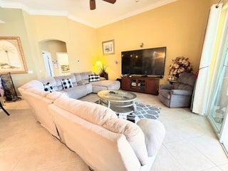 Fully furnished annual rental located in the gated community of The Vineyards in St. Lucie West. This unique 4-bedroom, 3.5-bath pool home sits on a desirable corner lot with a tranquil lake view in the rear. Designed around a private courtyard, the pool is the centerpiece of the home and features a stunning hand-painted mural, creating a true resort-style atmosphere. The spacious kitchen offers ample cabinetry and counter space, ideal for entertaining or everyday living. A separate mother-in-law studio provides flexibility for guests, extended family, or a private workspace. Enjoy privacy, charm, and character in a beautifully appointed home available for annual lease at $6,000/month.