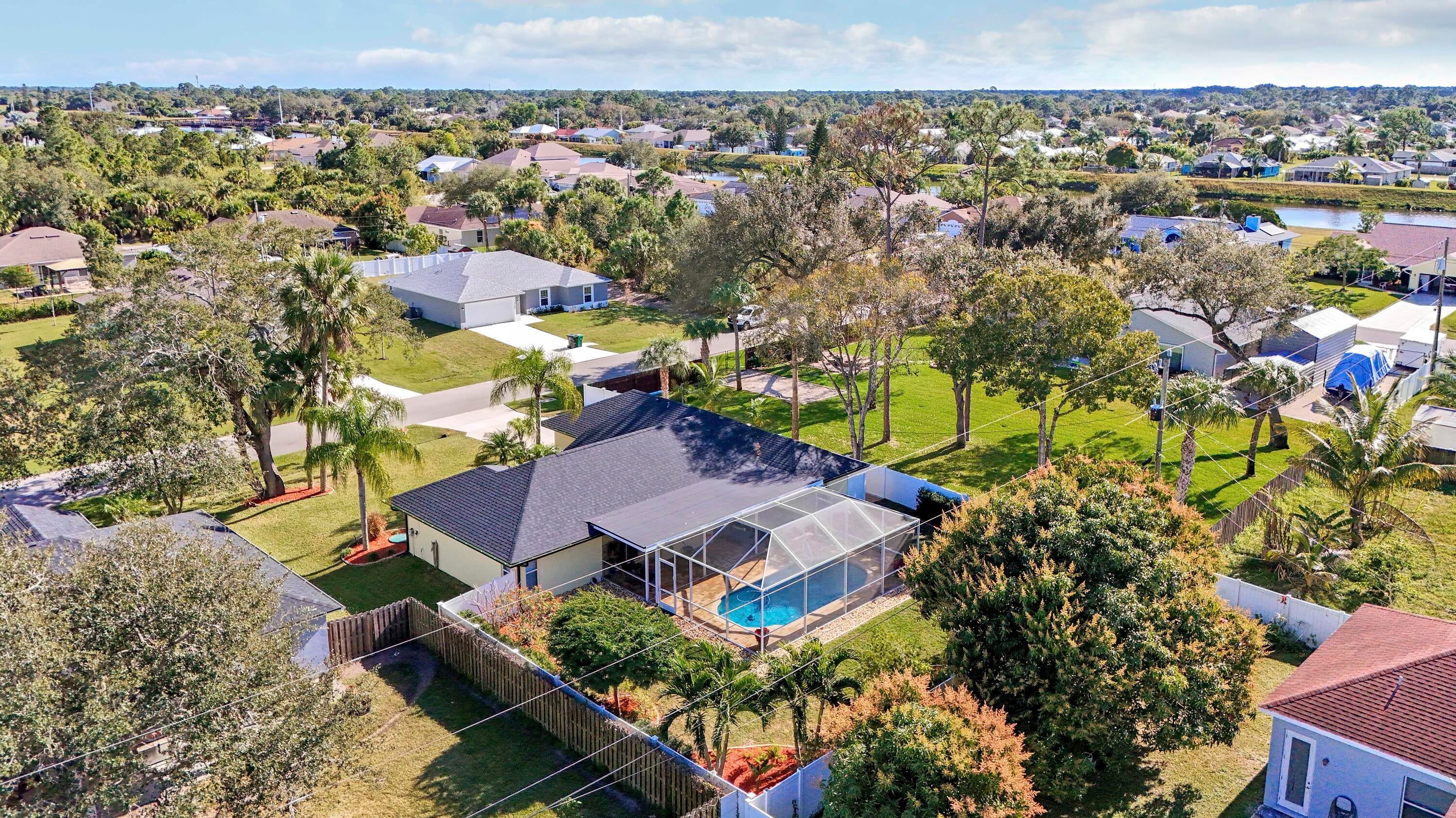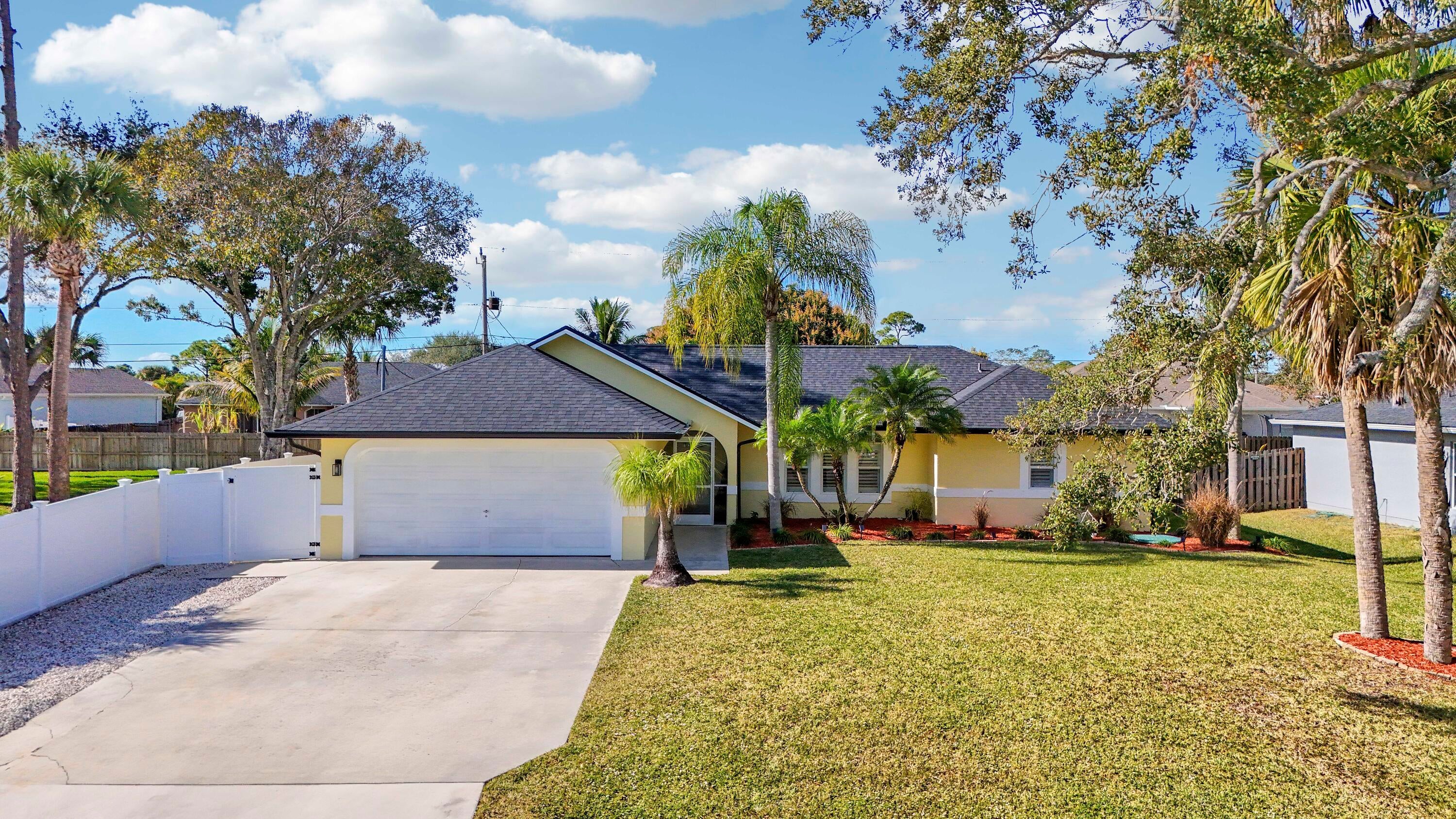Must see to Believe!! Upgraded 3/2/2 with screened in pool, new roof, freshly painted, mature landscaping, vinyl fence around rear and side yards, 10x10 shed. Interior with vaulted ceilings, central vac, custom master closet, updated bathrooms, oak hard woods in bedrooms, porcelain tile throughout main areas and baths, 6'' baseboards. Granite countertops, LG and Bosch appliances and much more. Newer Trane A/C and tankless water heater. Close to dining, shopping, Tradition and I95, Don't wait, call today for an appointment.