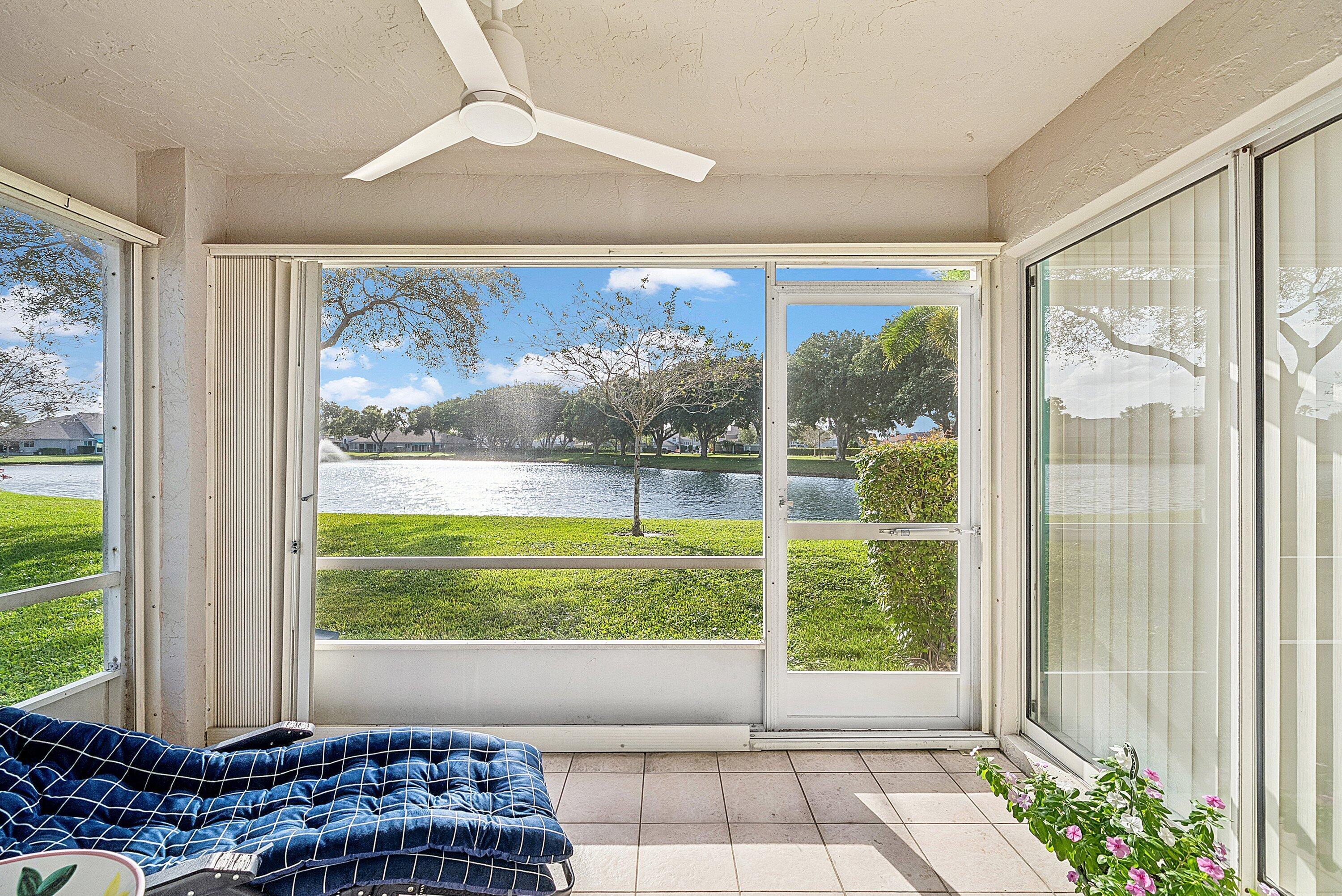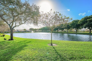 Location, location, location! Welcome to Boca Gardens, where comfort, privacy, and serene lakefront living meet. This beautifully maintained 2-bedroom, 2-bath corner-unit villa offers 1,339 sq ft of bright, one-story living with soaring ceilings and an open, flowing layout. Abundant natural light fills the living, dining, and kitchen areas, enhanced by stunning wide lake views. The split-bedroom floor plan provides privacy, with a spacious primary suite featuring two closets and patio access. Enjoy a private screened patio overlooking the lake, plus a newer roof, 1-car garage, and the added privacy of an end unit.Boca Gardens is a family-friendly, resort-style community offering multiple pools, tennis and pickleball courts, racquetball, a fitness room, playgrounds, and scenic lakeside walking paths. Conveniently located near shopping, dining, top-rated schools, and the Turnpike, this home offers the perfect balance of tranquility and convenience. Don't miss this exceptional lakefront opportunity. This is more than a home, it's a lifestyle.