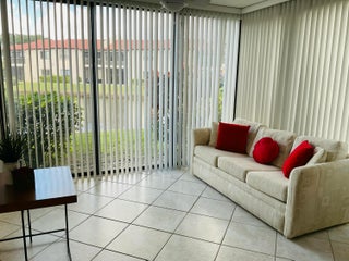 Fantastic opportunity to live in Boca in this spacious 2/2 in a golf course community with no mandatory membership. Huge master suite with 4 large closets. No carpets--all tile. End unit with a private patio. Water view! Patio has been enclosed for a den/office. Eat in kitchen. Separate outdoor storage closet. Nice neighbors. This is a great home that you don't want to miss!!