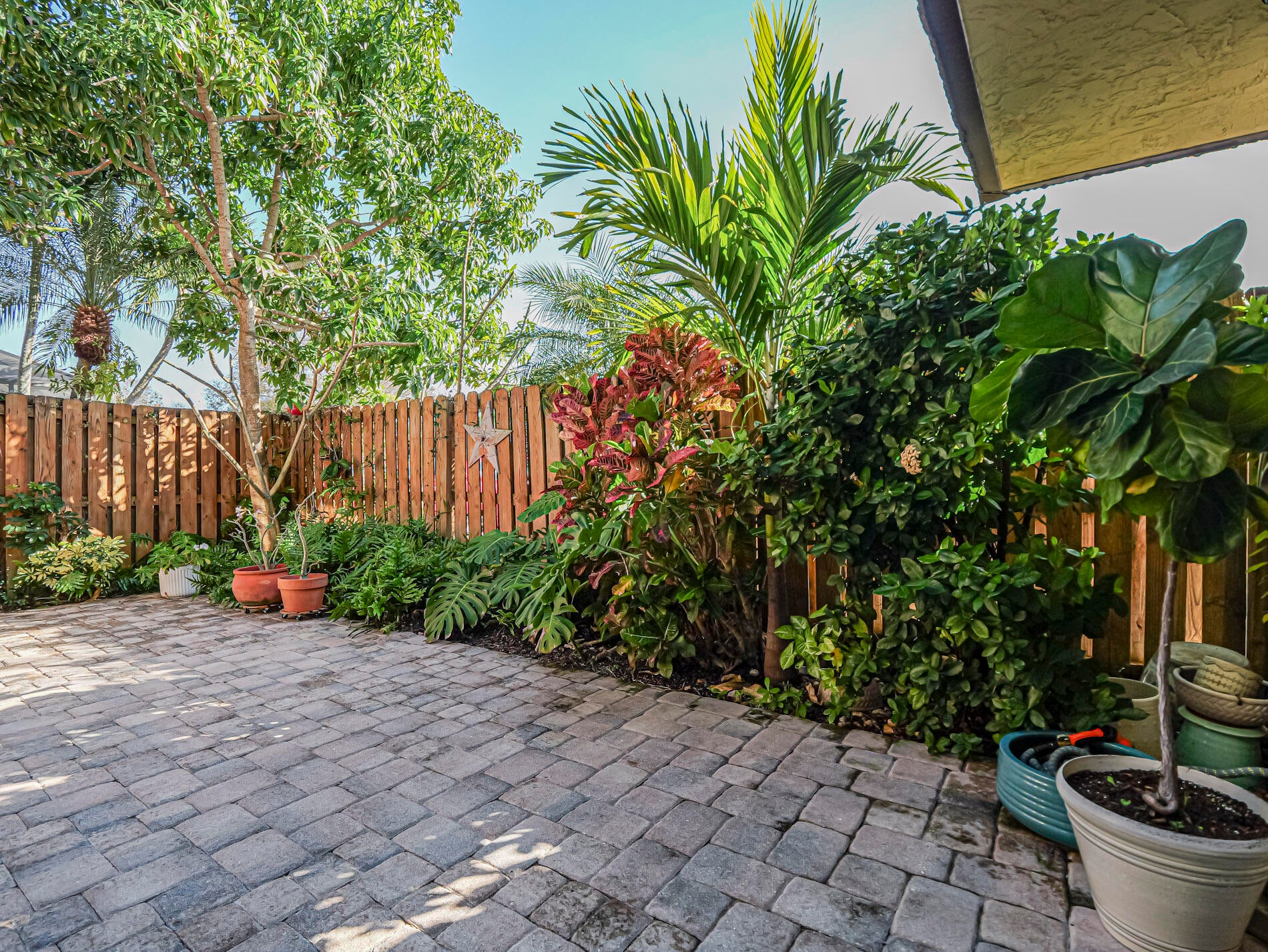 Coastal delight with paver patio, tropical plantings, and inside, tiled floors, updated kitchen and baths, and ready to move in to. Tropic Grove Villas is just 2 miles to beaches, and this Villa provides nearly 1200 sq ft of living space on 2 levels. First floor powder room has full sized washer and dryer included in sale. Lower association dues include outside maintenance. Central air is 6 years old. Home has accordion storm shutters in place. No age restrictions and pets are allowed.