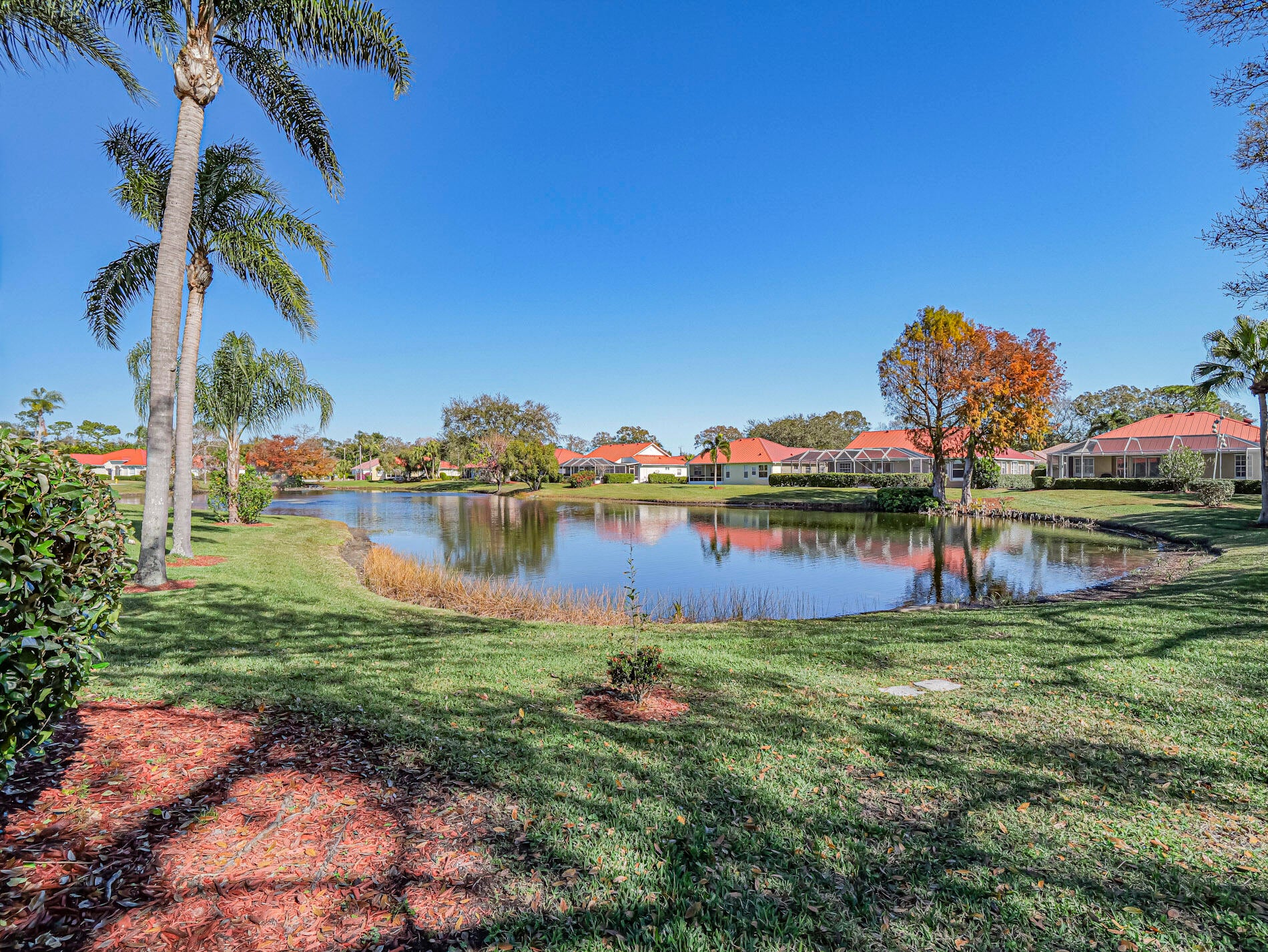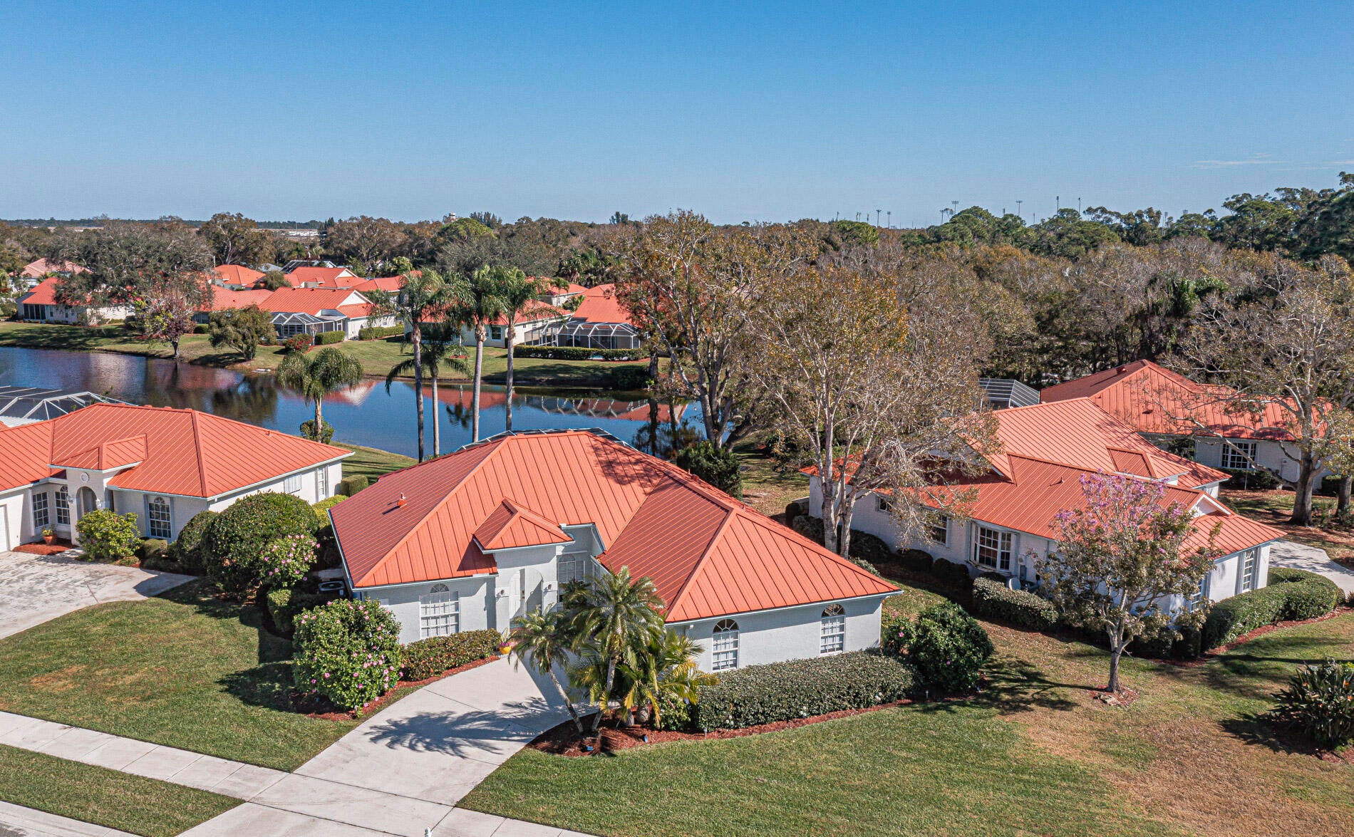 Show-stopping waterfront living in established Vero Beach's Walker's Glen! Updated 3/2/2 home sits on oversized corner lot shaded by majestic oaks. Outside oasis features an inviting lakefront screened-in saltwater pool (newer heater, salt cell, filter) + spacious lanai. Sleek granite kitchen + big-ticket upgrades afford peace of mind: 2022 standing-seam metal roof, 2024 A/C + 2019 water heater. Crown molding, new front coach lights, kick plates around the pool, updated electrical plates, Google cameras, smart door lock, hurricane-rated garage door + fresh paint. Stylish, smart + move-in ready