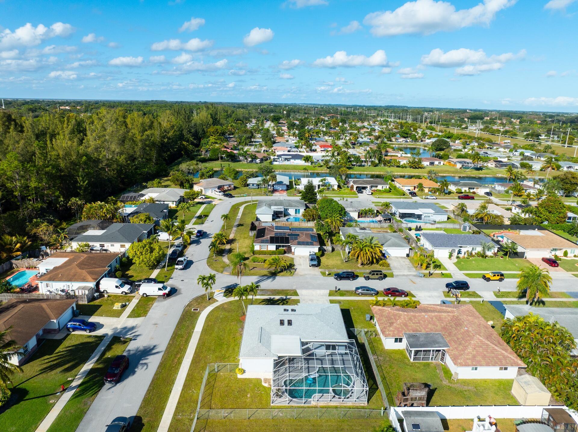 Beautiful and inviting 3-bedroom, 2-bath home with a 2-car garage, located in desirable Palmetto Pines of Boca Raton. Situated on an oversized corner lot, this home features a large screened-in heated pool & spa, perfect for year-round outdoor living. Complete hurricane-impact windows and a new roof, both completed in 2024. The primary suite boasts a walk-in closet and a beautifully renovated bathroom with direct access to the pool area. Luxury vinyl flooring throughout the home while custom lighting and skylights enhance the living spaces with abundant natural light. The spacious eat-in kitchen includes a breakfast area ideal for casual dining & entertaining. A-rated school district and just minutes from Boca's premier shopping, dining, & amenities. Low HOA of only $41.67 p/month.