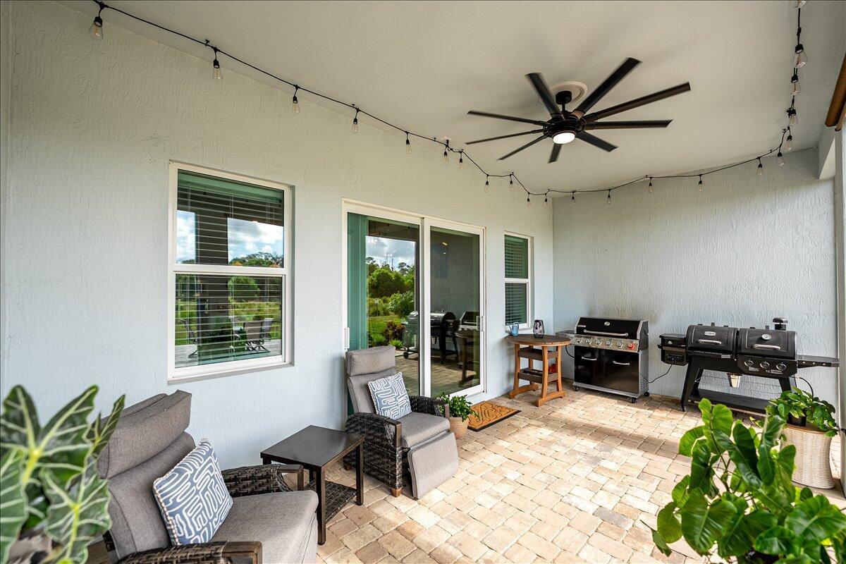 This exceptional 4-bedroom, 3-bath estate home offers extensive upgrades and rare privacy on a premium lot.The home features a rare 4-foot extended 3-car garage with stunning epoxy floors, creating a seamless extension of the home's interior. Inside, all walls, baseboards, trim, and doors have been freshly repainted with high-quality, low-maintenance Sherwin-Williams paint.Enjoy Florida living with a screened-in patio plus an additional private paver patio. The upgraded tropical landscape overlooks a private conservation area filled with native trees and plants--no rear neighbors.The kitchen showcases upgraded built-in KitchenAid appliances, along with numerous builder upgrades and additional enhancements.This is a true 4-bedroom home, with each bedroom offering generous closet space. The oversized front bedroom is ideal for teenage privacy or could easily serve as an in-law suite, with a full bath conveniently located nearby. Residents enjoy access to a luxury resort-style clubhouse featuring pool cabanas, an outdoor bar, tennis courts, pickleball, dog park, fitness center, playground, and more. Ideally located with easy access to I-95 and the Turnpike, and just minutes from aqua-blue beaches. This move-in-ready home offers rare privacy, exceptional value, and sits on a premium estate lot. includes: " Front and back lawn care " AT&T Fiber 1G Internet " Gated entry " Clubhouse and all resort amenities. ***Owner is willing to consider rent to own possibility.