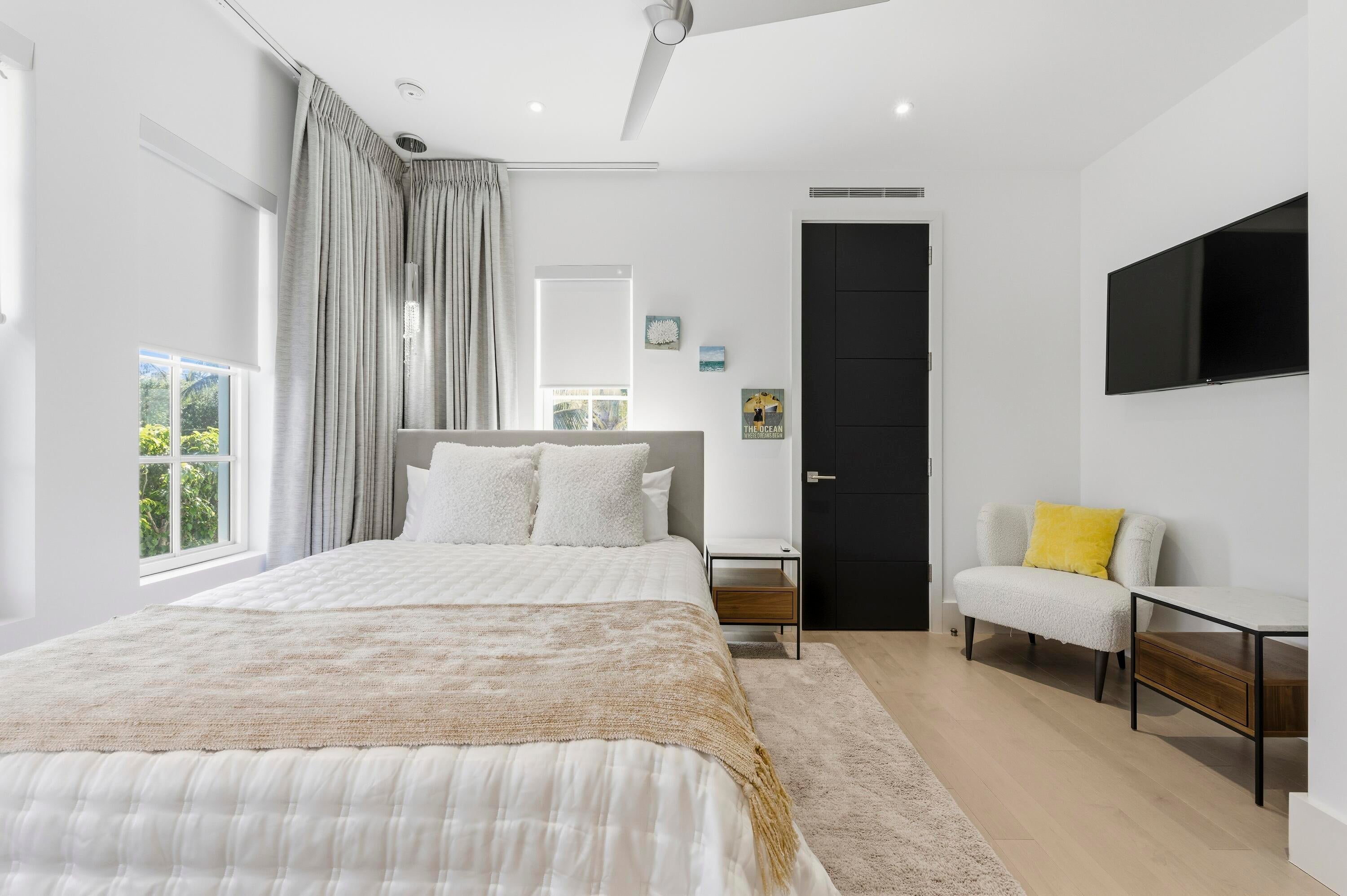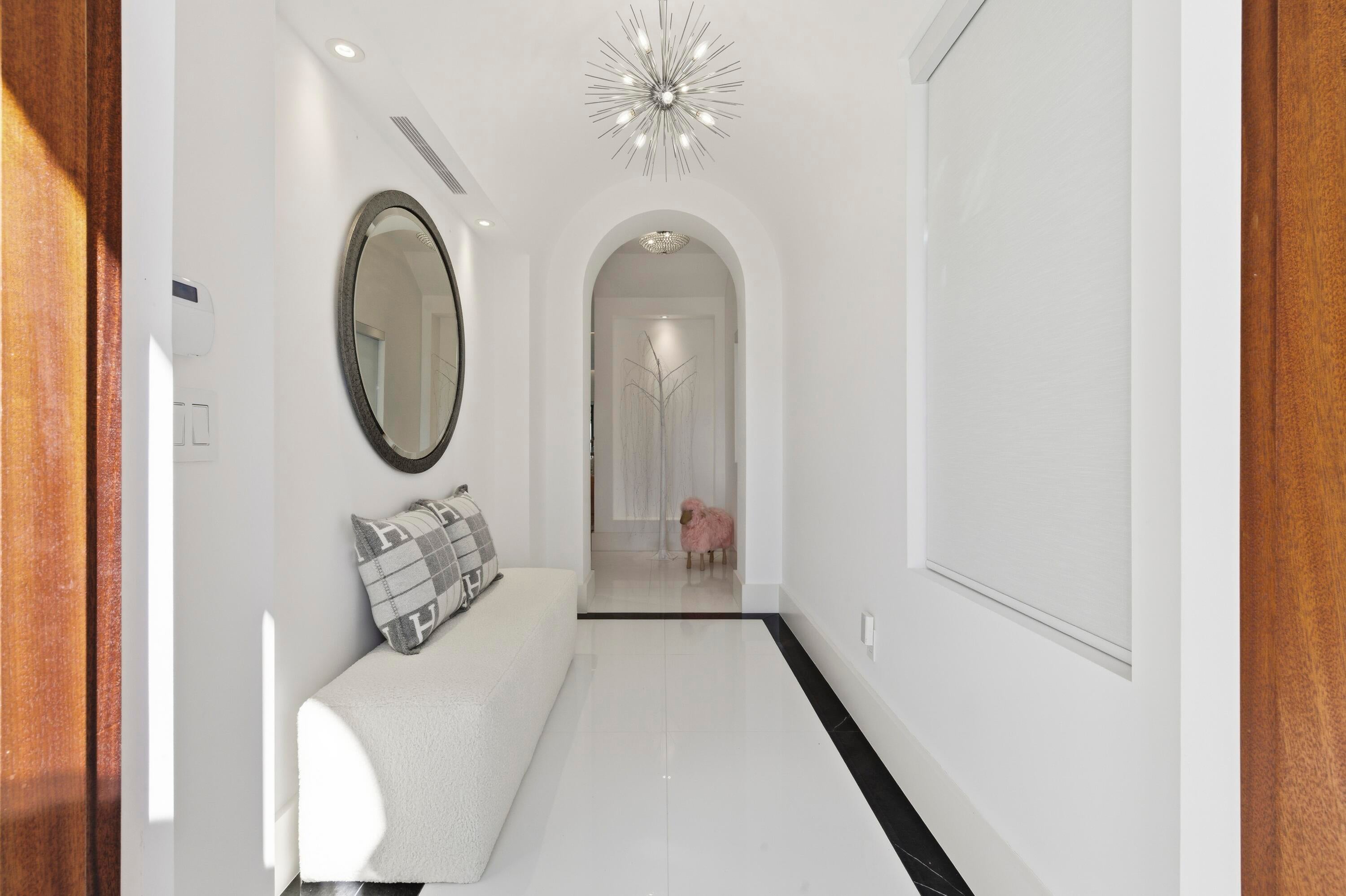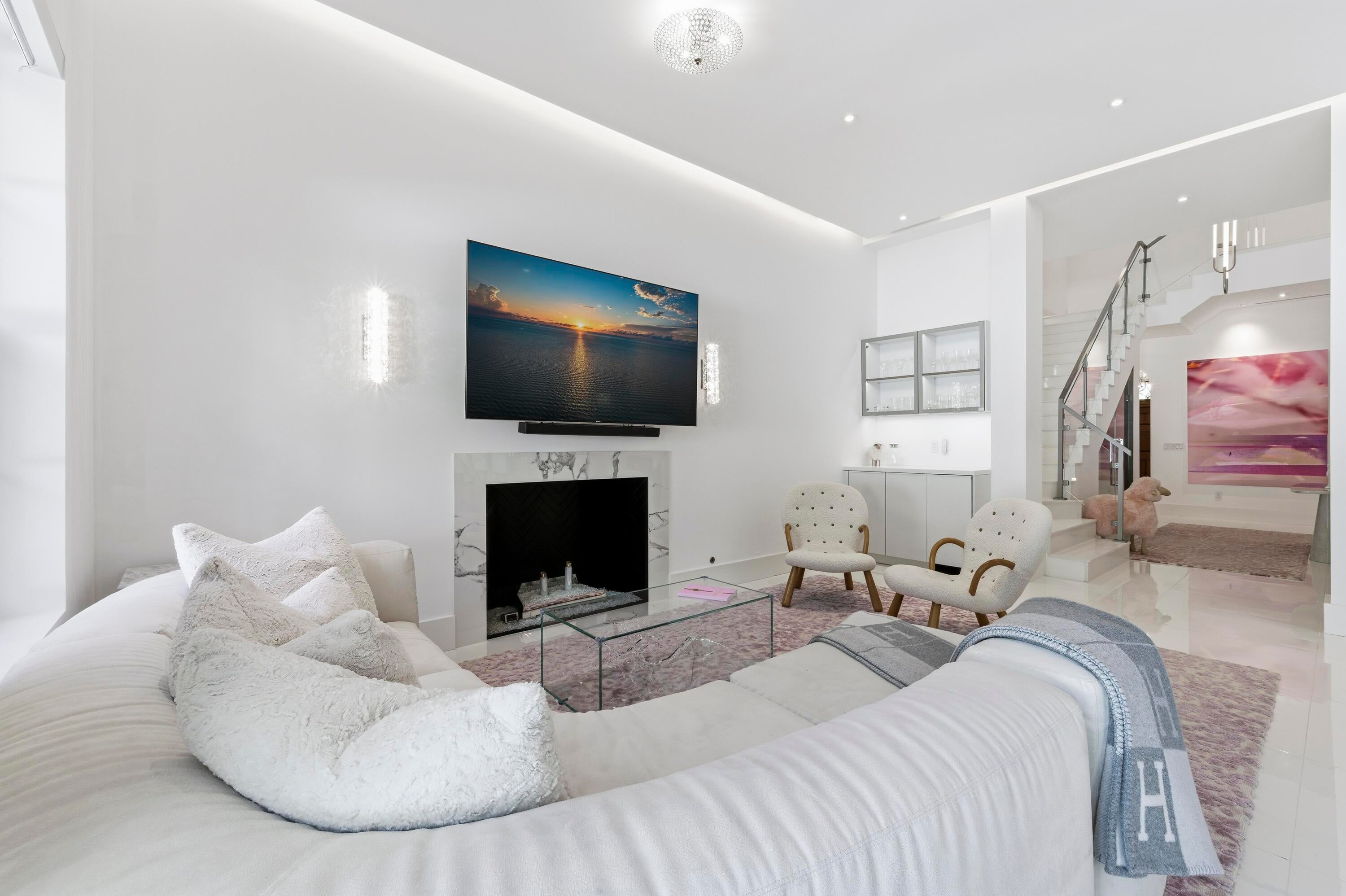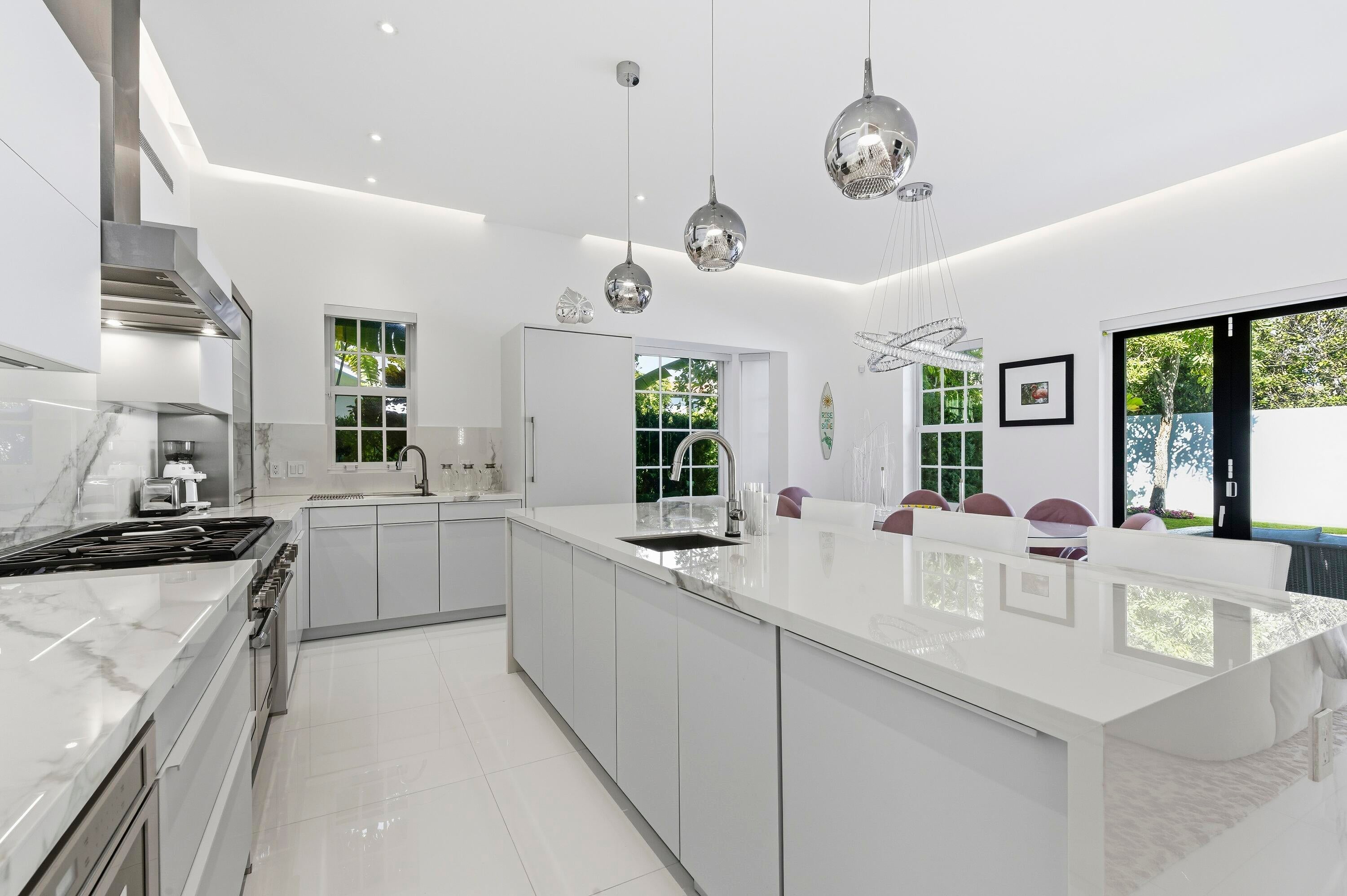 Built in 2020, this chic in-town home on the ocean block of Peruvian Avenue delivers modern luxury just steps from the beach, Worth Avenue, and world-class dining. Soaring ceilings, polished tile and wood floors, and an open-concept design fill the home with natural light, making it ideal for both everyday living and entertaining. The main level offers a custom chef's kitchen, glass-enclosed under stair wine storage, gas fireplace, laundry room, elevator, and a versatile first-floor bedroom and bath or office. Upstairs, the expansive primary suite features dual spa-inspired baths with two walk-in closets, along with two additional en-suite bedrooms. Outdoors, enjoy a private patio & oversized heated pool. Other highlights include a 2 car air-conditioned garage and full house generator.