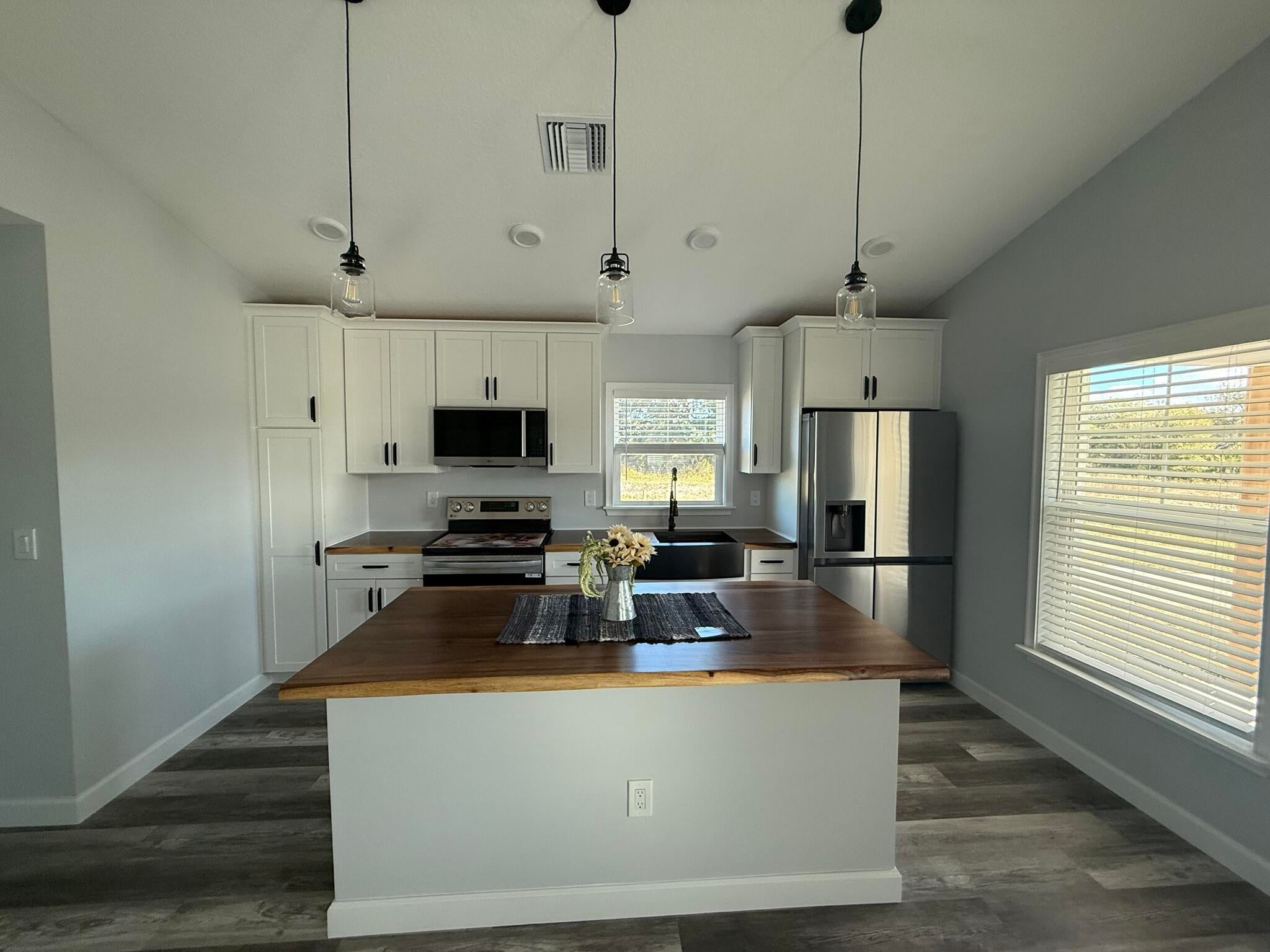 Welcome to this brand-new 3-bedroom, 2.5-bath custom home situated on 1.25 acres in scenic Okeechobee County. A unique courtyard-style home, it features a private, covered central courtyard that connects the main living area to the guest bedroom wing, blending indoor comfort with outdoor living. The main house offers an open-concept living and dining area that flows seamlessly into a modern kitchen with stainless steel appliances and wood countertops. Also located in the main house are a half bath and a spacious master suite, complete with double sinks, dual shower heads, and a large walk-in closet. All rooms in the main house provide direct access to the courtyard, creating a seamless indoor-outdoor experience. Across the courtyard are two additional bedrooms and a full bathroom, each with its own access to the courtyardideal for guests, family members, or a private home office setup. Additional highlights include barn doors, a covered front porch, washer and dryer included, and a fully fenced yard with gate for added privacy and security. Located on NW 288th Street, this home offers peaceful country living while remaining conveniently close to shopping, schools, and US-441. More pics coming soon!
