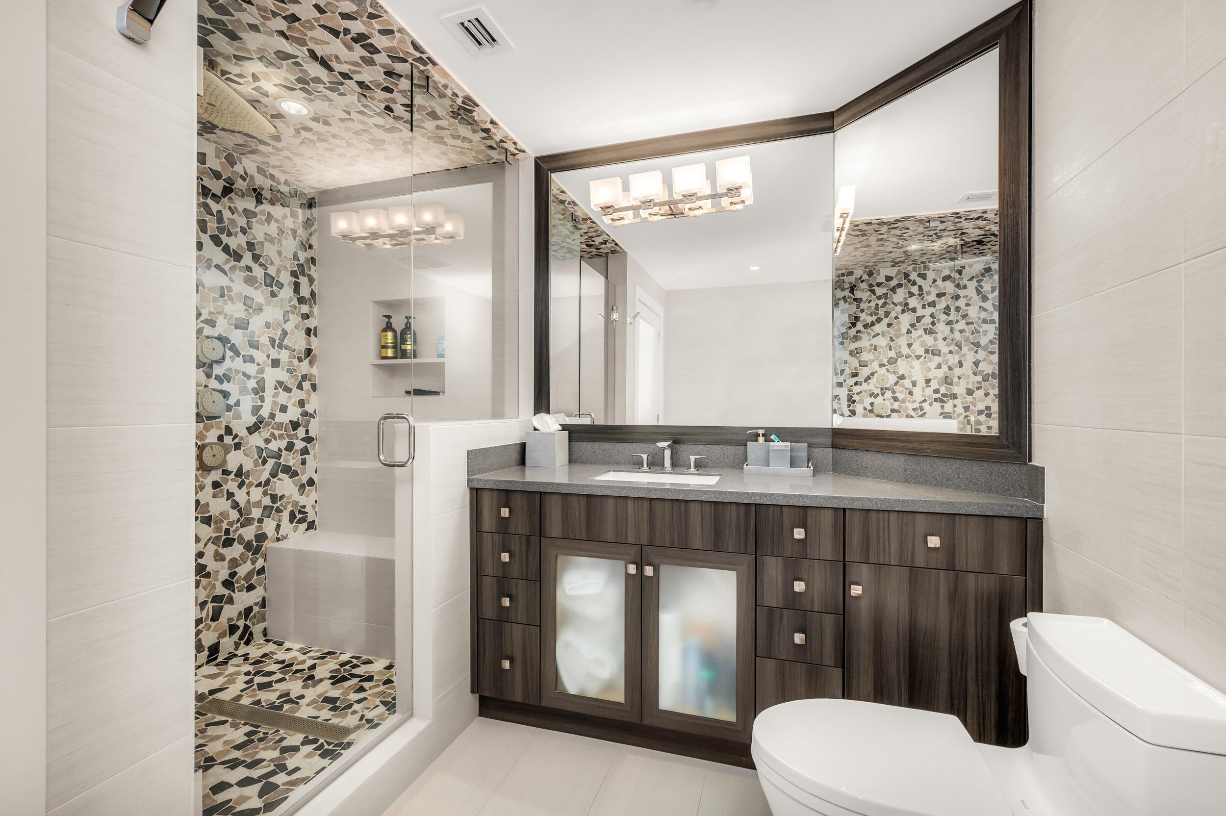 Enjoy the East (Ocean), West (Sunset) views of this Mizner TOWER PENTHOUSE with soaring 22-foot ceilings, an exceptional blend of luxury, privacy, and the coveted waterfront lifestyle on the grounds of The Boca Raton. This 3-bedroom, 4.5-bath residence offers 2,545 livable square feet designed to maximize comfort, light, and seamless entertaining.A corner residence flooded with natural light, it features NEW full impact hurricane windows and doors, newer 2 Zone HVAC, a gourmet kitchen, and an expansive wraparound balcony where you can start your mornings with sunrise ocean breezes and unwind with sweeping Lake Boca, Ocean, Intracoastal, golf course, and city views. Impeccably maintained after a high-quality designer renovation, the home offers timeless modern elegance the moment you eDesigner furnishings negotiable for a truly turnkey experience. The split-bedroom layout provides privacy for you and your guests, with a serene primary suite offering double walk-in closets and luxurious His and Her baths, your personal retreat after a day at the beach, golf, boating, or enjoying the resort amenities just outside your door. Located within the private, gated grounds of The Boca Raton Resort & Club, you'll enjoy unmatched walkability to world-class dining, the beach, shopping, and downtown attractions, making everyday living feel like a 5-star vacation. (Resort membership not included.) Mizner Tower is a pet-friendly, full-service building offering valet, concierge, security, pool w/towel service, fitness center, tennis, lounge with lite snacks and marina access, everything you need to live the effortless, resort-style East Boca lifestyle you've been searching for. THE ONLY RENOVATED RESIDENCE CURRENTLY AVAILABLE in Mizner Tower.
