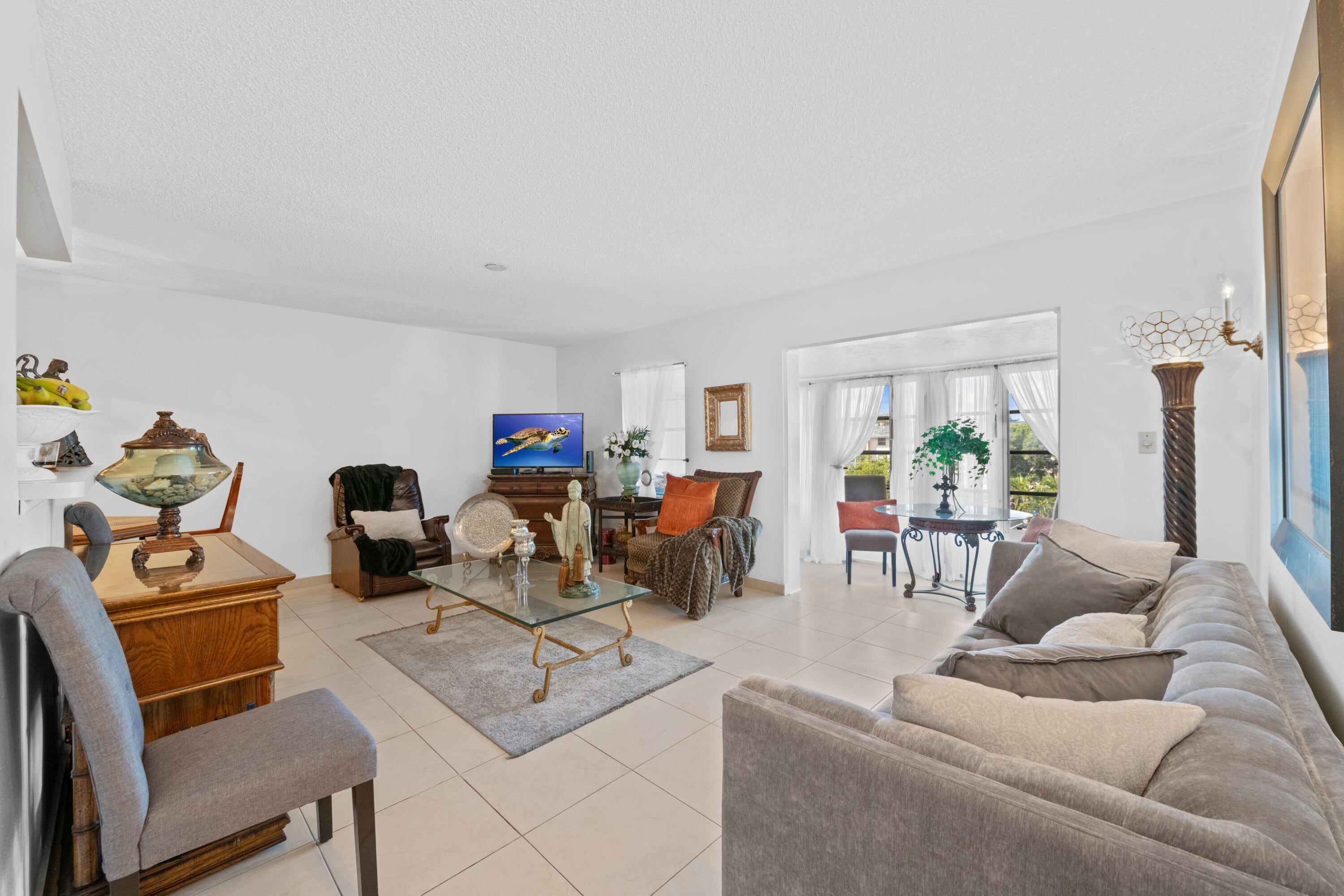 Bright & Airy 2/2 condo located at Sabal Palm Village in Tamarac, 55+ Community. This cozy spacious unit is located on the 3rd floor - Featuring an open white kitchen & open-concept layout designed for effortless living & entertaining. This living & dining area flows seamlessly together, filled with natural light. Large M/bedroom has walk-in & side closets, and combo tub/shower. 2nd bedroom has mirrored sliding-door closet, offering both style & functional storage. Spacious screened patio w/ wroll-ups - Can be used as a Den/ Storage. Laundry room on premises located on same floor, unit comes with extra storage room. The association offers a clubhouse w/ library, fitness room, heated pool, BBQ area & tennis courts. Secured Lobby. Priced to sell! No minimum income required! Mins to turnpike