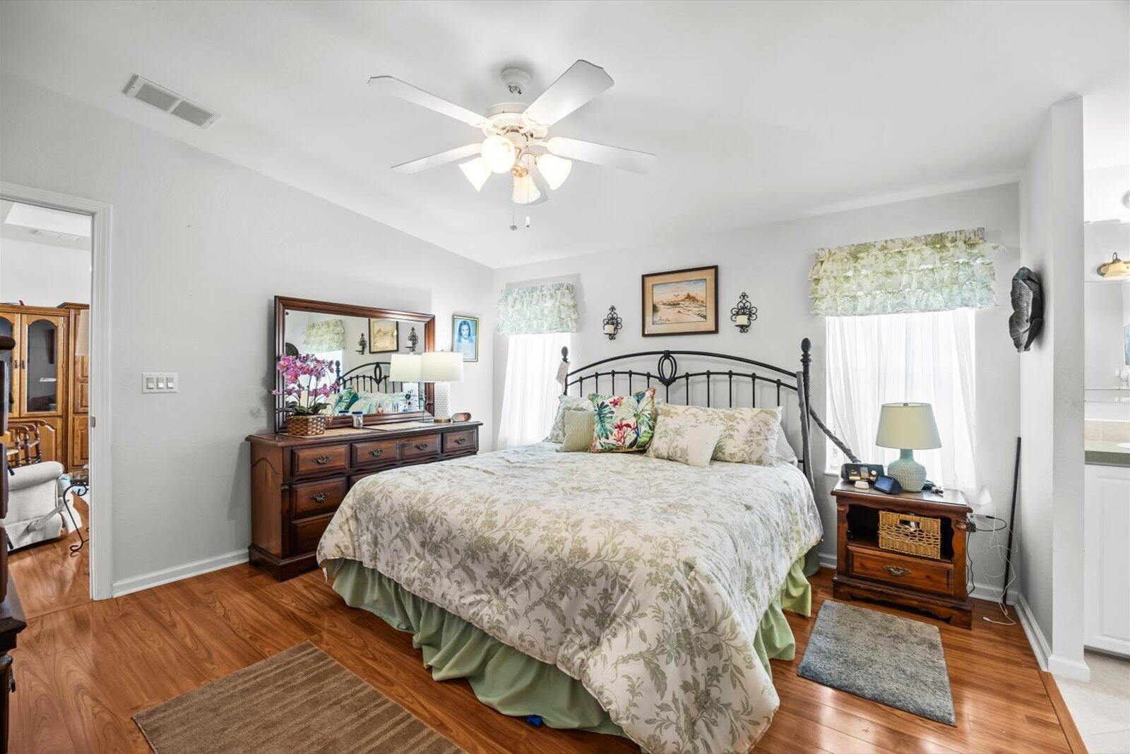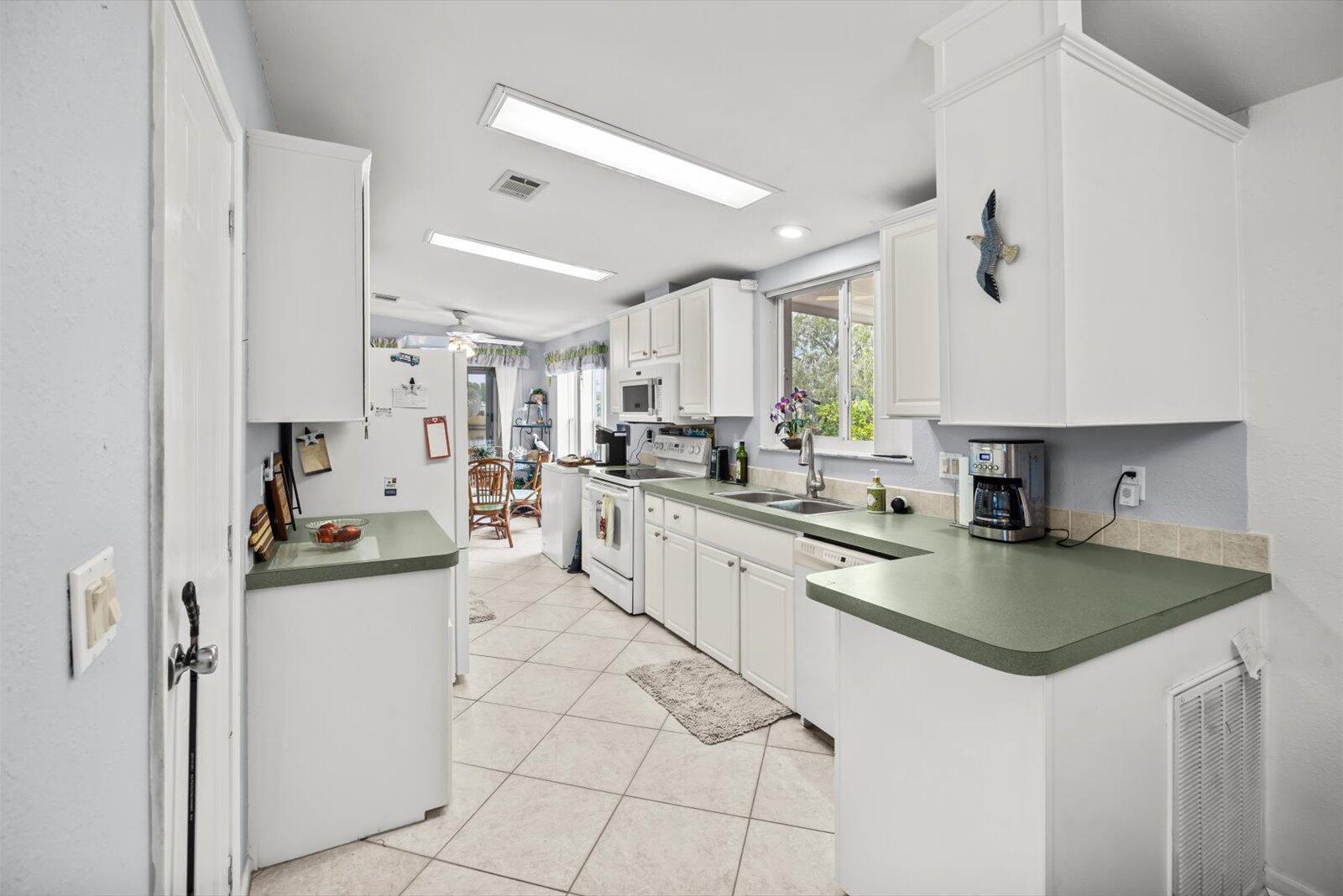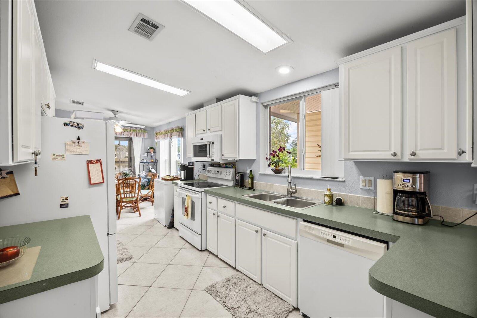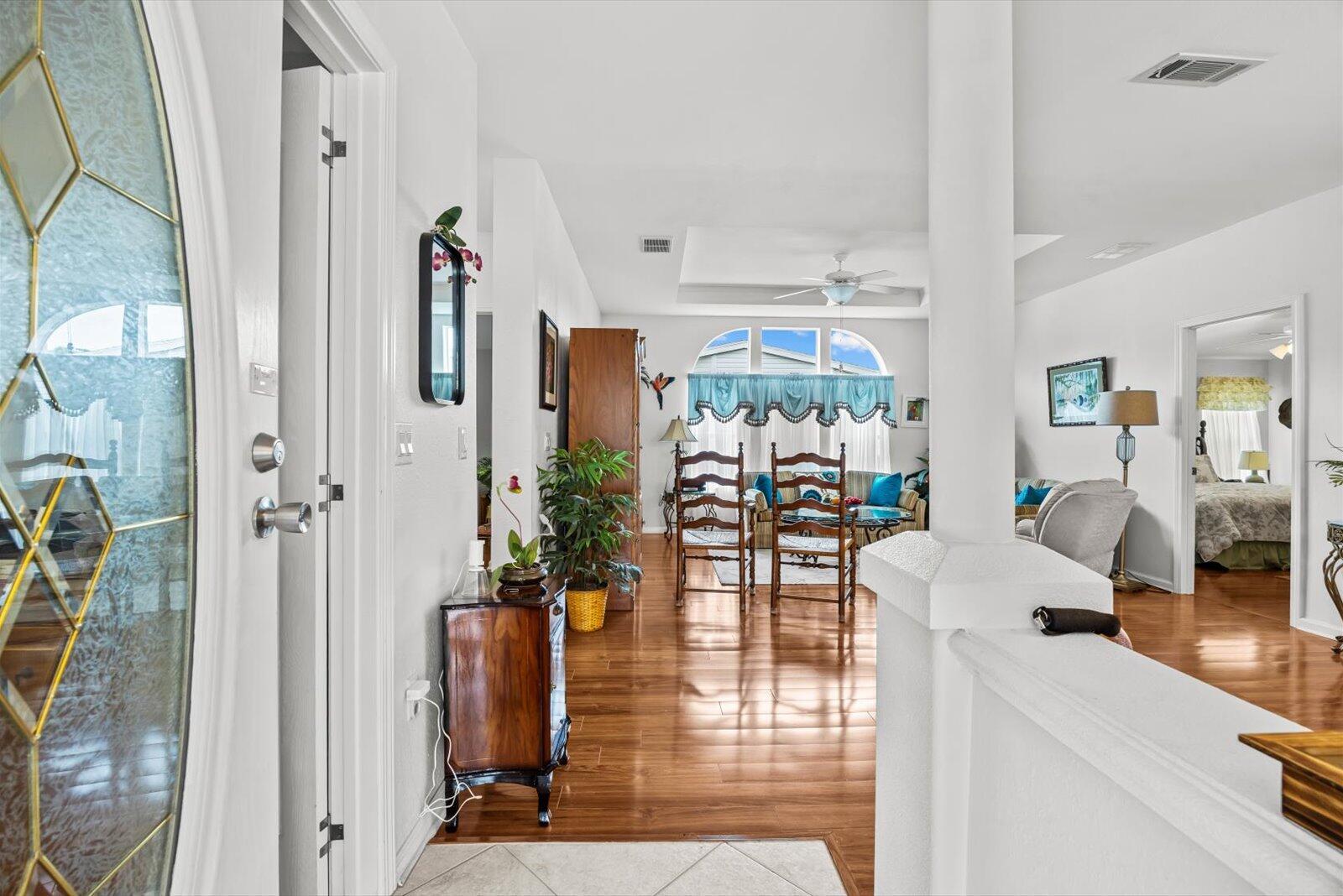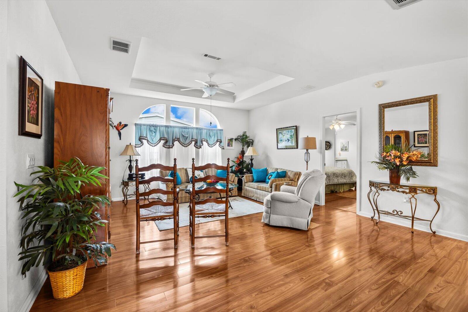Welcome to Savanna Club, a sought-after 55+ amenity-packed community where resort-style living meets everyday comfort. This popular Coral Reef floor plan offers 2 BR's, 2 BA's, plus a versatile den perfect for an office, hobby room, or guests. Enjoy serene lake views from the 27' enclosed glass porch with its own mini-split A/C, ideal for year-round relaxation. The home is fully furnished turnkey--just bring your suitcase. Features include acc. shutters, 2015 roof, 2023 A/C, cost-saving irrigation well, and laminate and tile flooring thru-out. Start your mornings on the open patio with sunrise views and coffee in hand or take a short walk to Savanna Club's pools, clubhouse, fitness center, golf, activities, restaurant and more! Land Lease Property