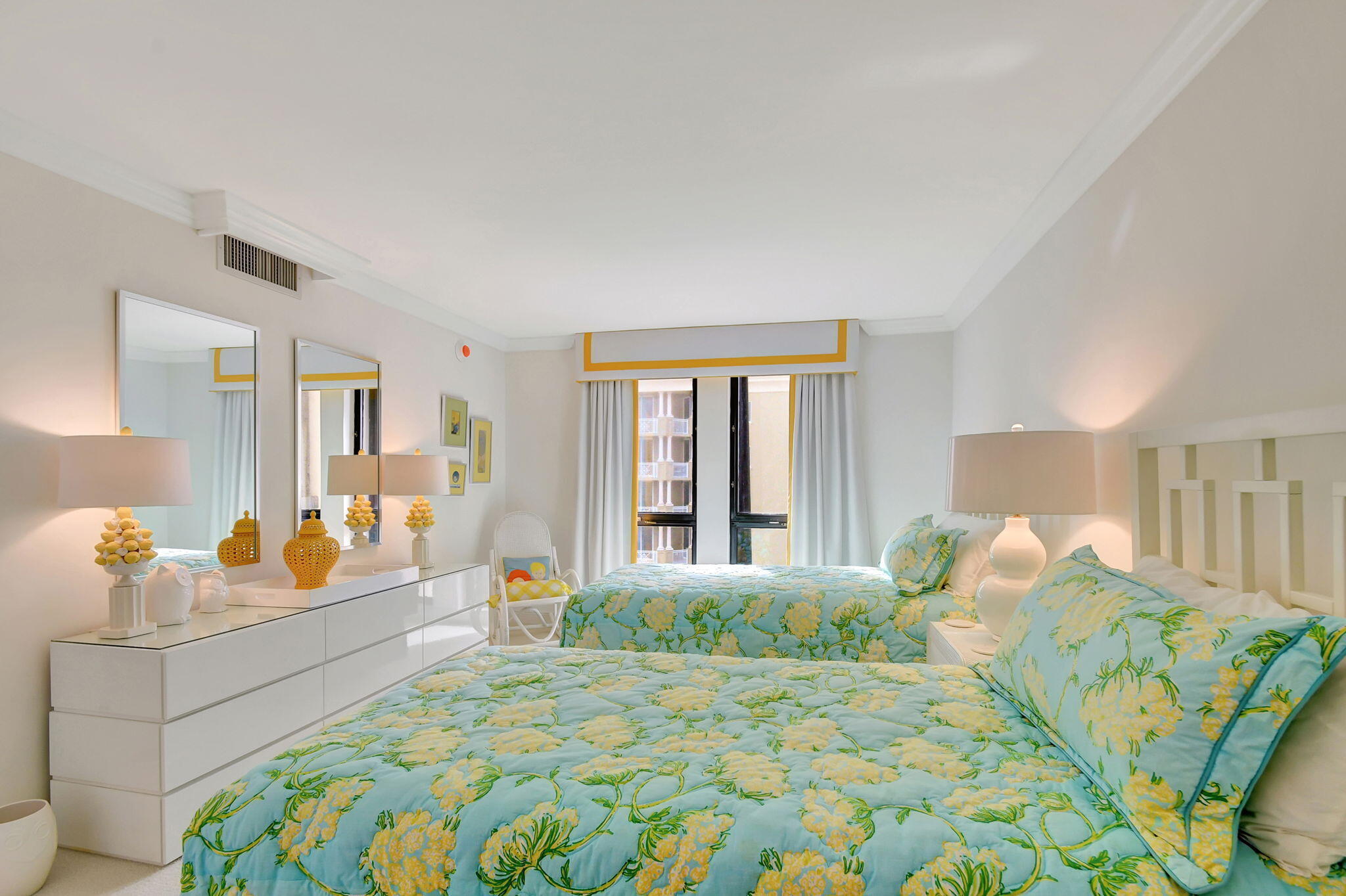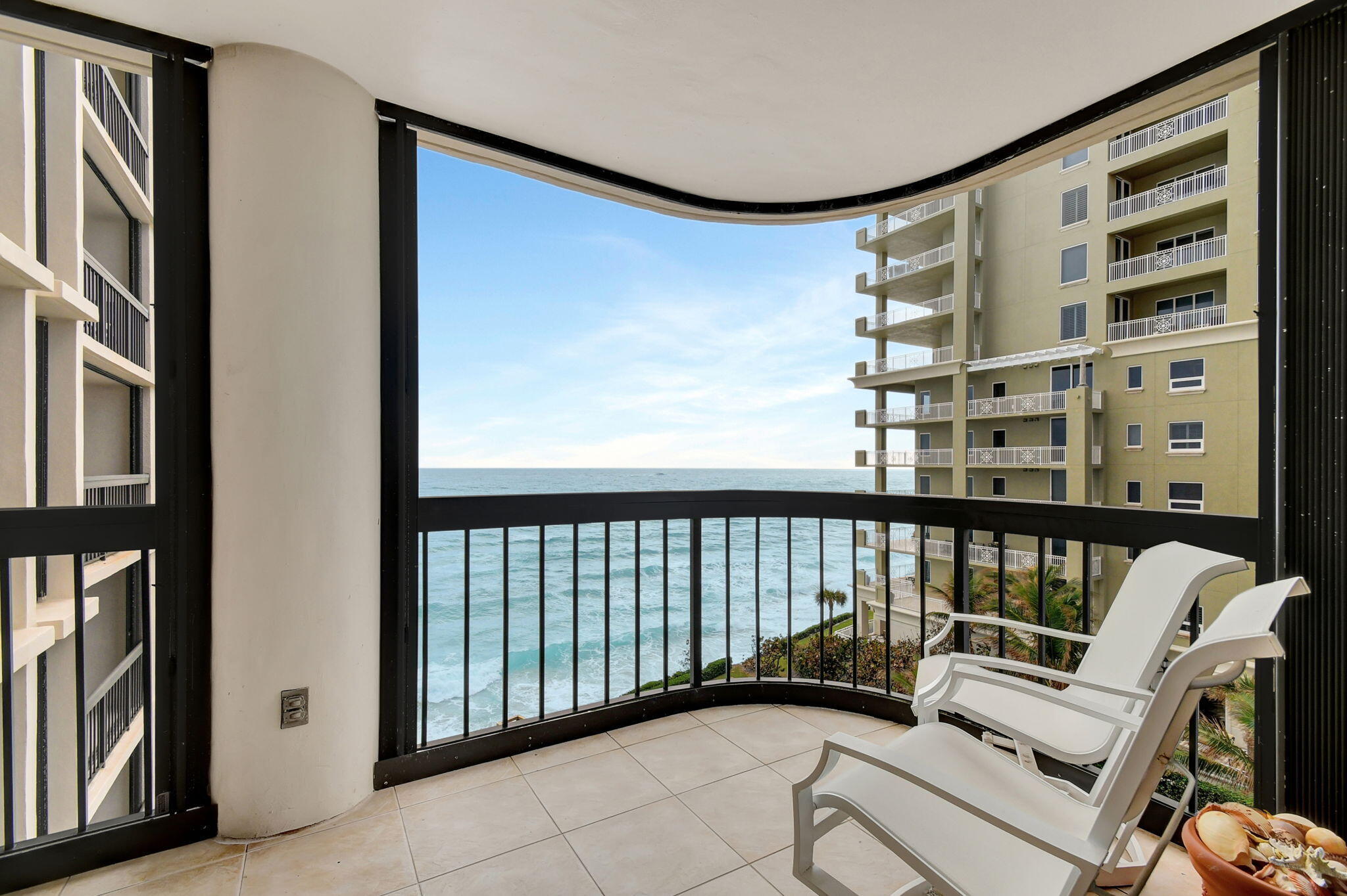 :Make this your home away from home, direct Ocean and Intracoastal view two large bedrooms and baths. Large living room and dining room, kitchen with white cabinets, large window over the sink with ocean and intracoastal views. The large balcony can accommodate a dining area plus seating to watch the ocean waves. Enjoy the heated beachside pool with Jacuzzi, new stainless-steel barbecue area with dune walks, state-of-the-art fitness center with his/her saunas, relaxing billiard room with library, ocean lounge with full kitchen and bar, a secluded beach with private access, a twenty-four-hour manned guard gate, full time concierge.