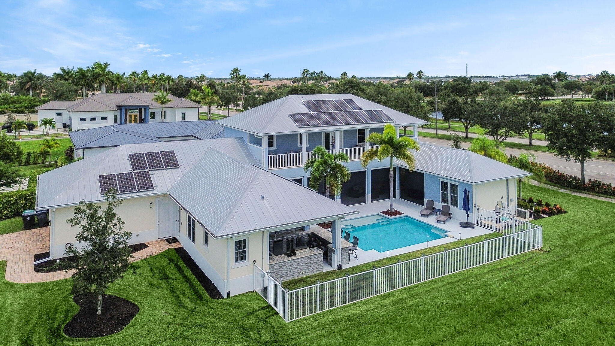 Unique 4 bedroom 3.5 bathroom CBS POOL home with an in-law suite and a newer metal roof in the boutique luxury new construction community of Westcliffe Estates at Tradition! This house has so many features including: Impact windows and doors throughout, solar panels (owned outright), a 2021 whole house 22KW generator, a 2023 water filtration system. At the heart of the home is the gourmet kitchen, featuring premium stainless steel appliances, custom cabinetry, sleek quartz countertops, and an oversized island. This space is perfect for hosting family gatherings or enjoying quiet nights at home.The fully equipped summer kitchen is perfect for hosting, complete with a built-in grill, refrigerator, sink, and plenty of counter space for meal preparation. Whether you're dining al fresco underthe covered patio, lounging by the pool, or gathering around the cozy fire pit on cool evenings, the backyard provides endless opportunities for relaxation and enjoyment. Located in the coveted Westcliffe Estates at Tradition, this home is close to top-rated schools, premier shopping, dining, and recreational opportunities. The community offers a peaceful and family-friendly atmosphere, with beautifully manicured streets and easy access to all the amenities that make this area so desirable.