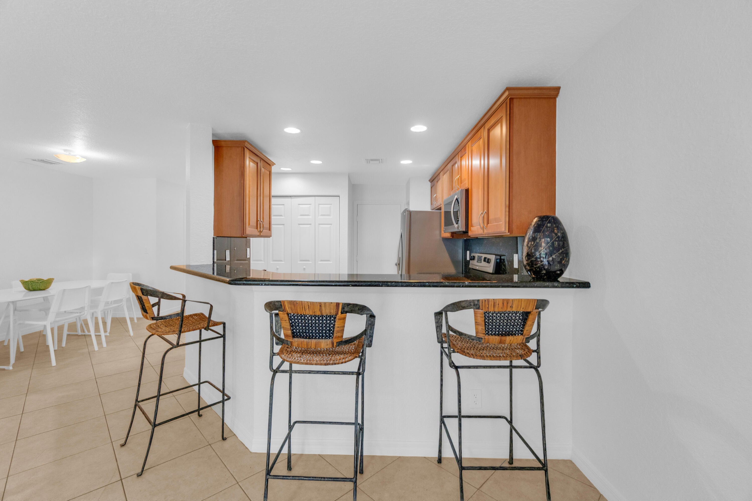 Absolutely stunning 3-bedroom, 2.5-bathroom home in the heart of West Boca! This freshly painted beauty boasts a modern interior and exterior, with durable wide plank laminate flooring throughout all bedrooms. Enjoy the convenience of a gated community with excellent schools, shopping, and places of worship just moments away. The spacious layout features a newer refrigerator, a laundry room downstairs, complete with a washer and dryer. Relax on your private patio, and enjoy a luxurious master suite with double sinks, a separate shower and tub, and his & her closets. The second bathroom includes a tub for added comfort. Don't miss this opportunity to live just a short walk from Veterans Park, with options for furnished or unfurnished rental.